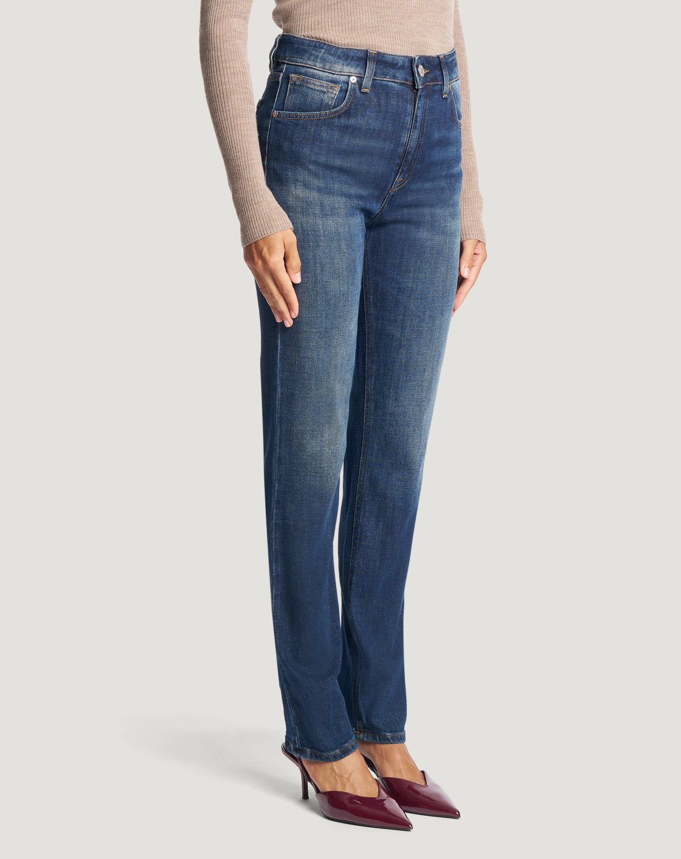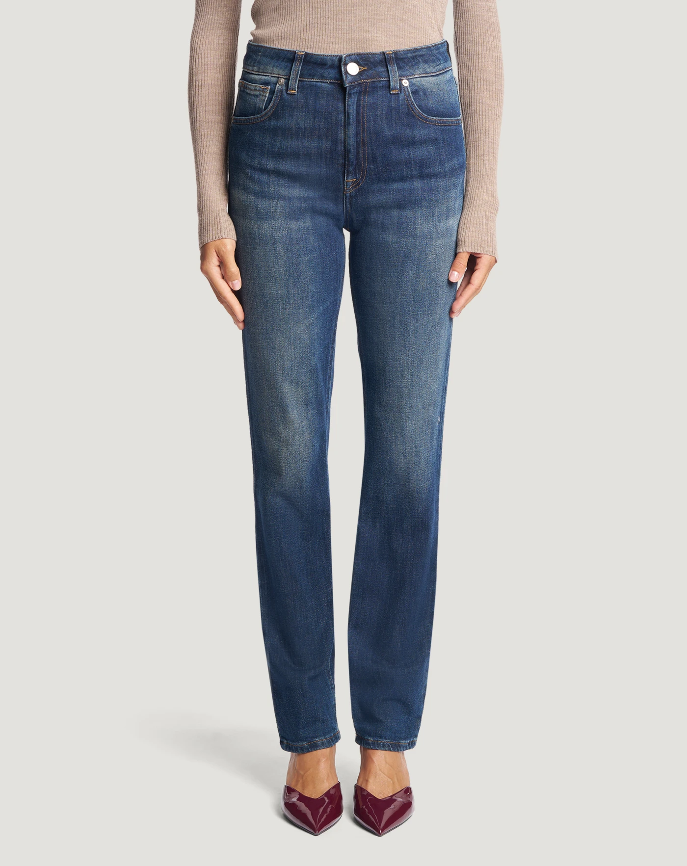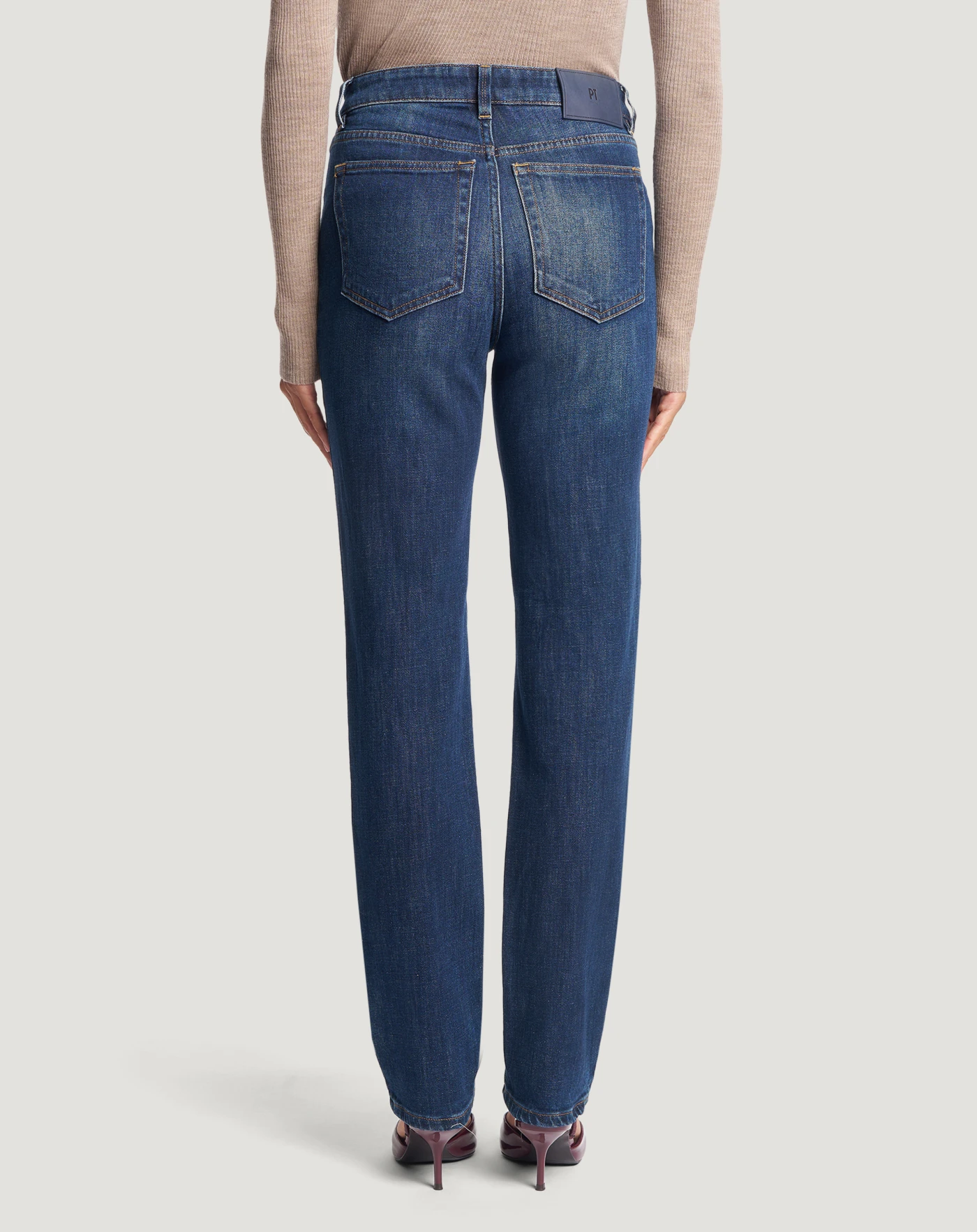 Jeans in denim stretch dalla tela morbida, confortevole e resistente (12 once), con lavaggio caratterizzato da schiariture nei dettagli. Con vita alta e linea slim, sono la base perfetta per completare con stile i look casual e del tempo libero.