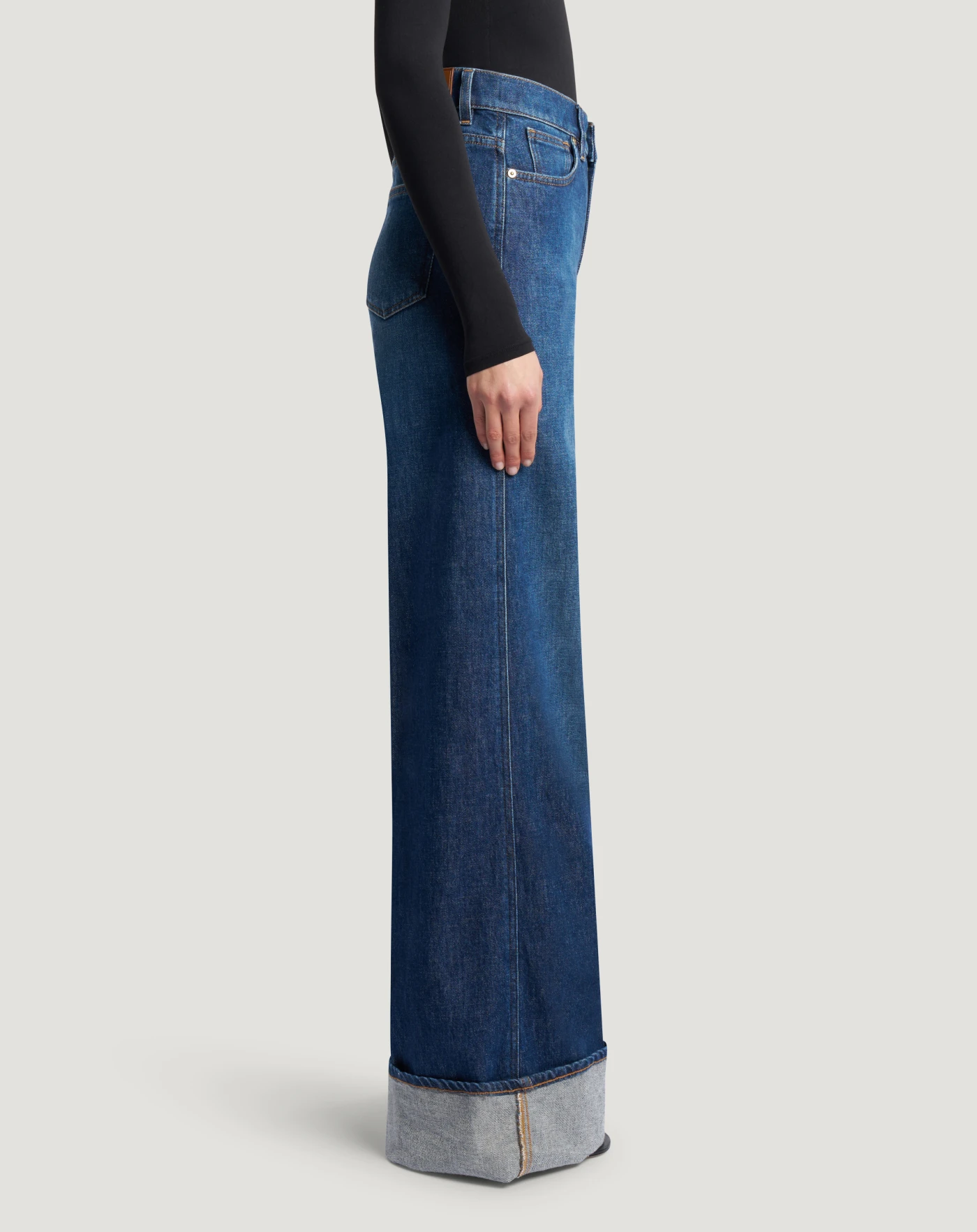 Jeans in denim di cotone stretch responsabile una tela di peso medio (11,5 once) dotata di elasticità che offre comfort senza rinunciare alla struttura tipica del denim. Caratterizzati da maxi risvolto al fondo e linea ampia, saranno il modello cult di look che lasciano il segno.