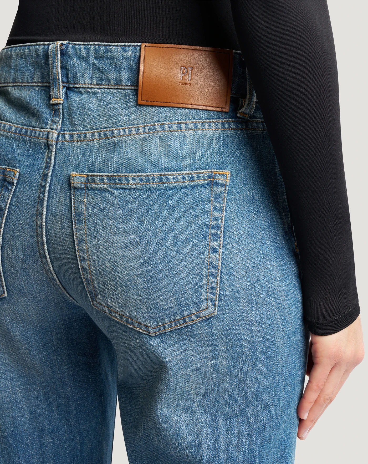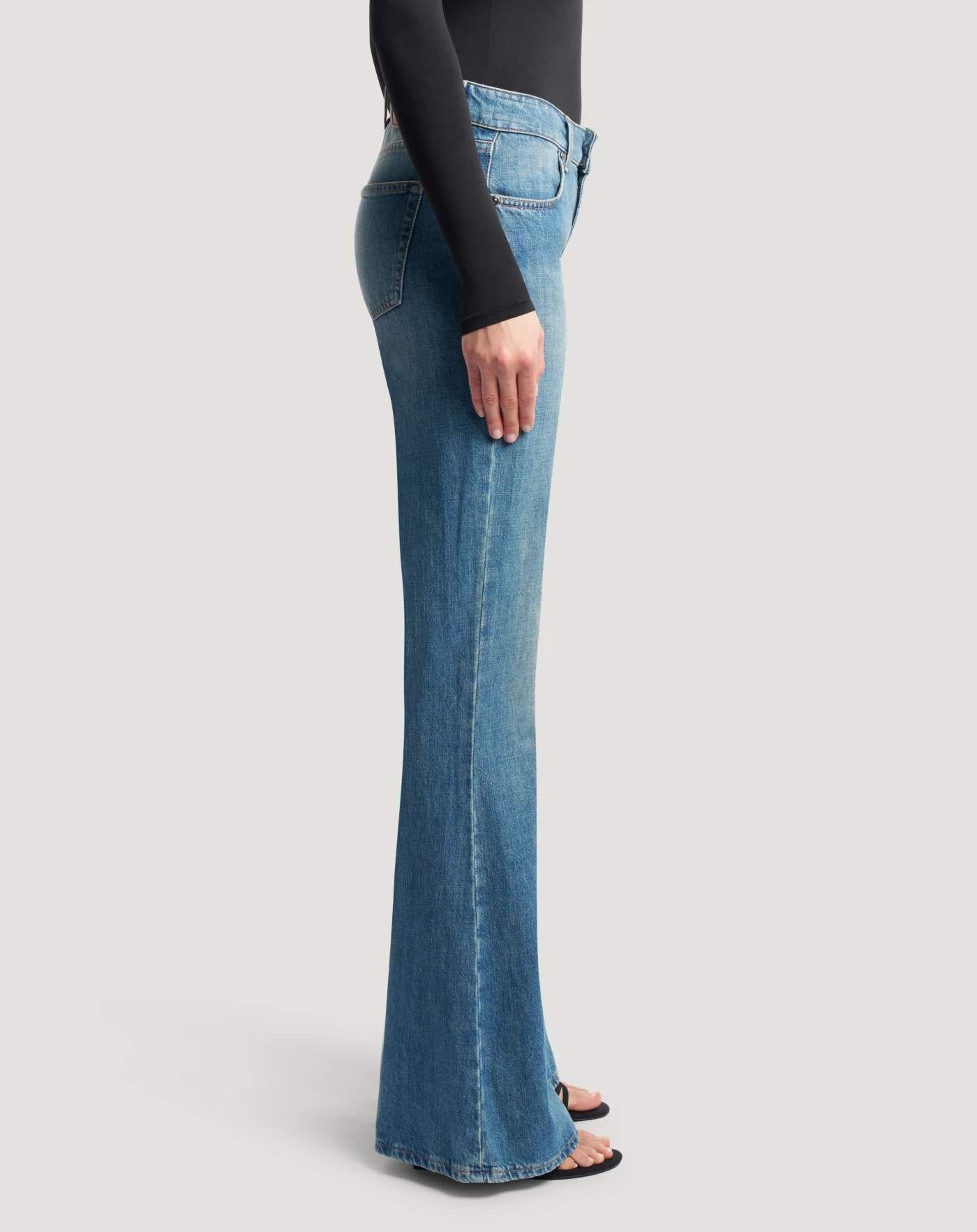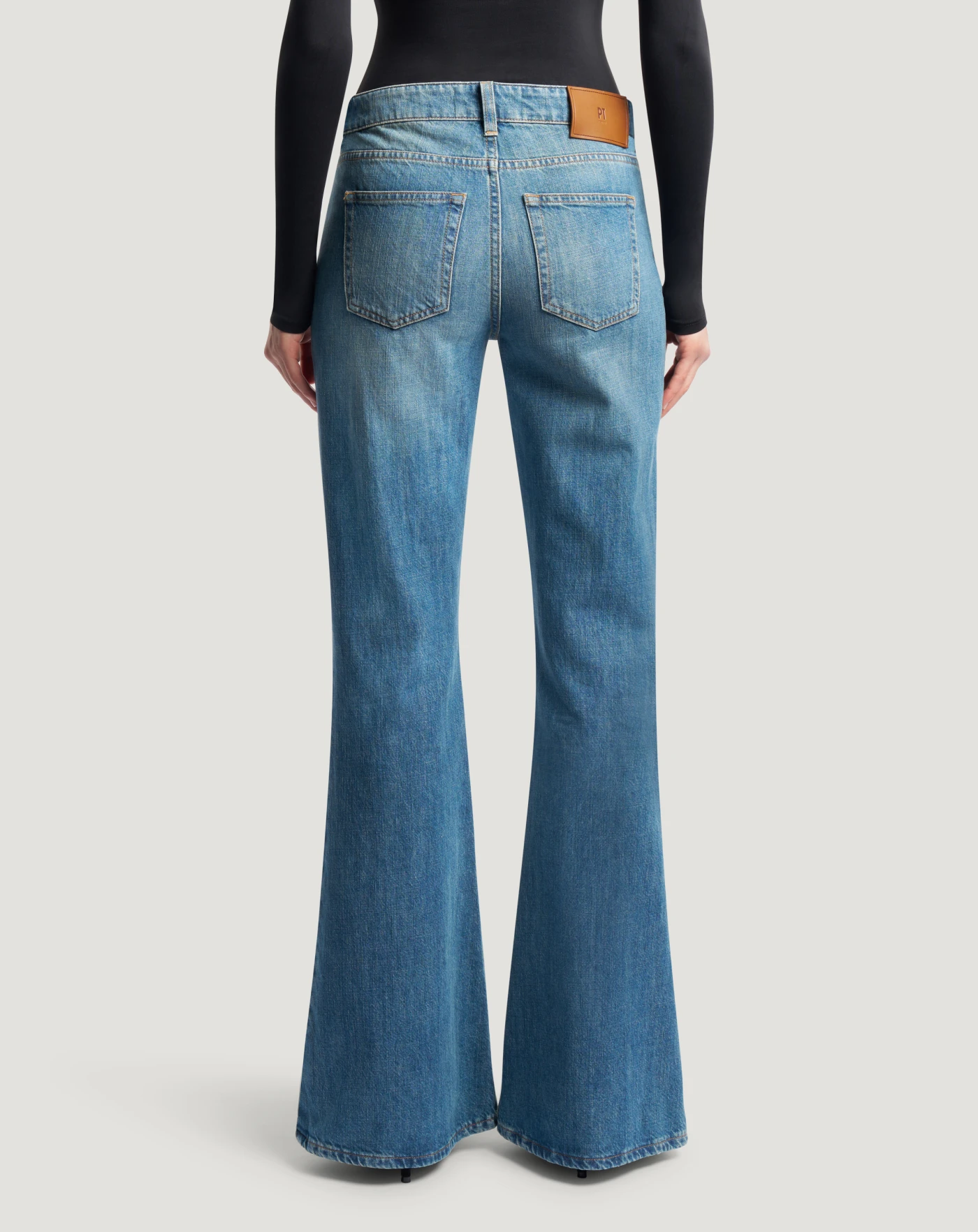 Jeans in denim di cotone responsabile, una tela ferma dal peso medio (11 once), per un capo adatto a tutte le stagioni. Con linea flare e lavaggio caratterizzato da schiariture evidenti, daranno un twist al tuo stile.