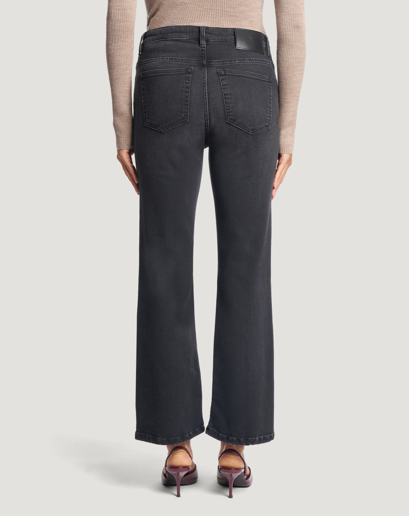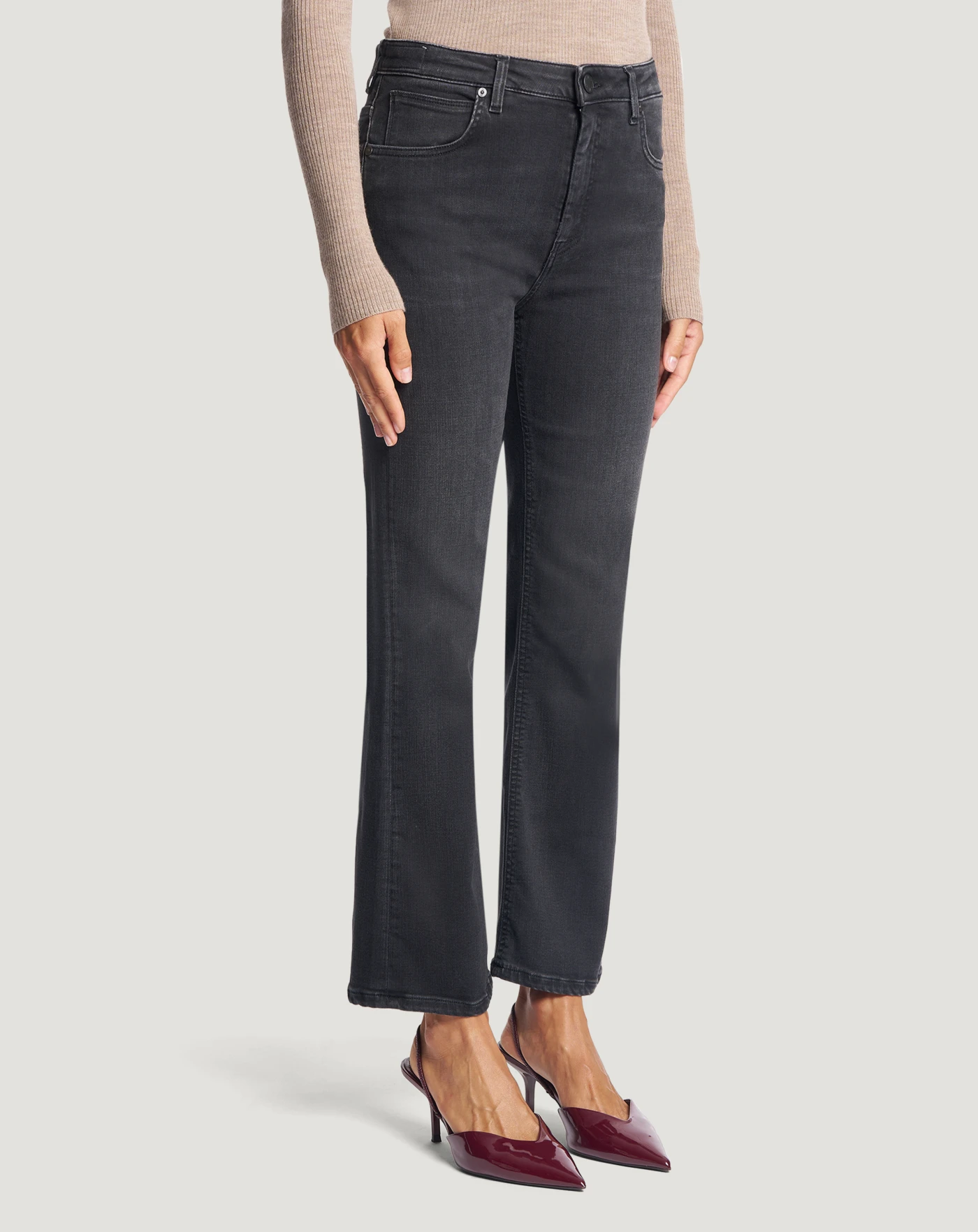 Jeans in black travel denim dalla tela morbida, confortevole e resistente (10 once), con lavaggio scuro caratterizzato da leggere sfumature. Con vita regular e linea flare cropped, hanno un design che non passerà inosservato nei tuoi look daily.