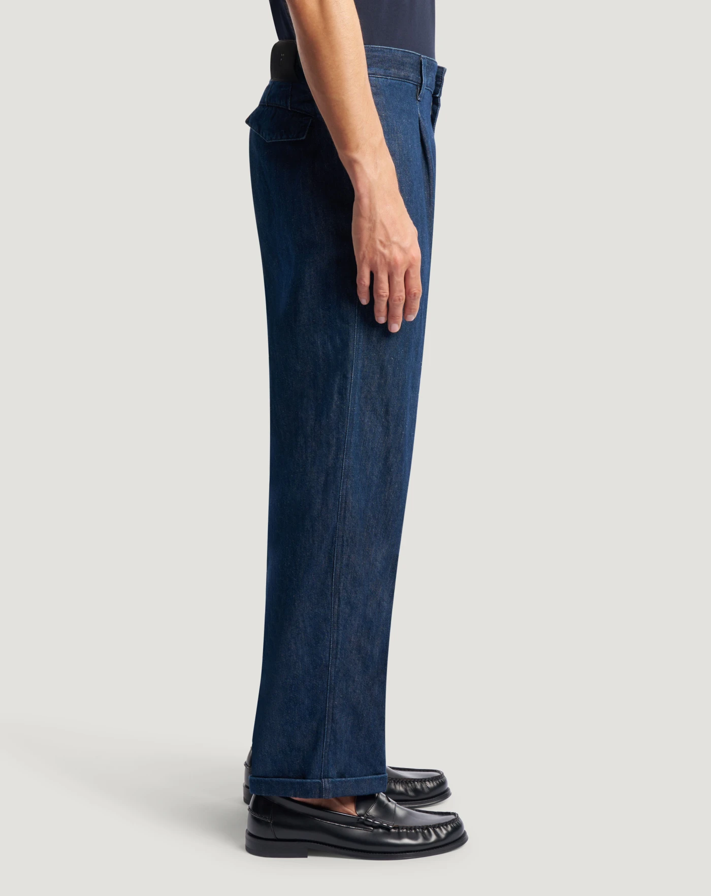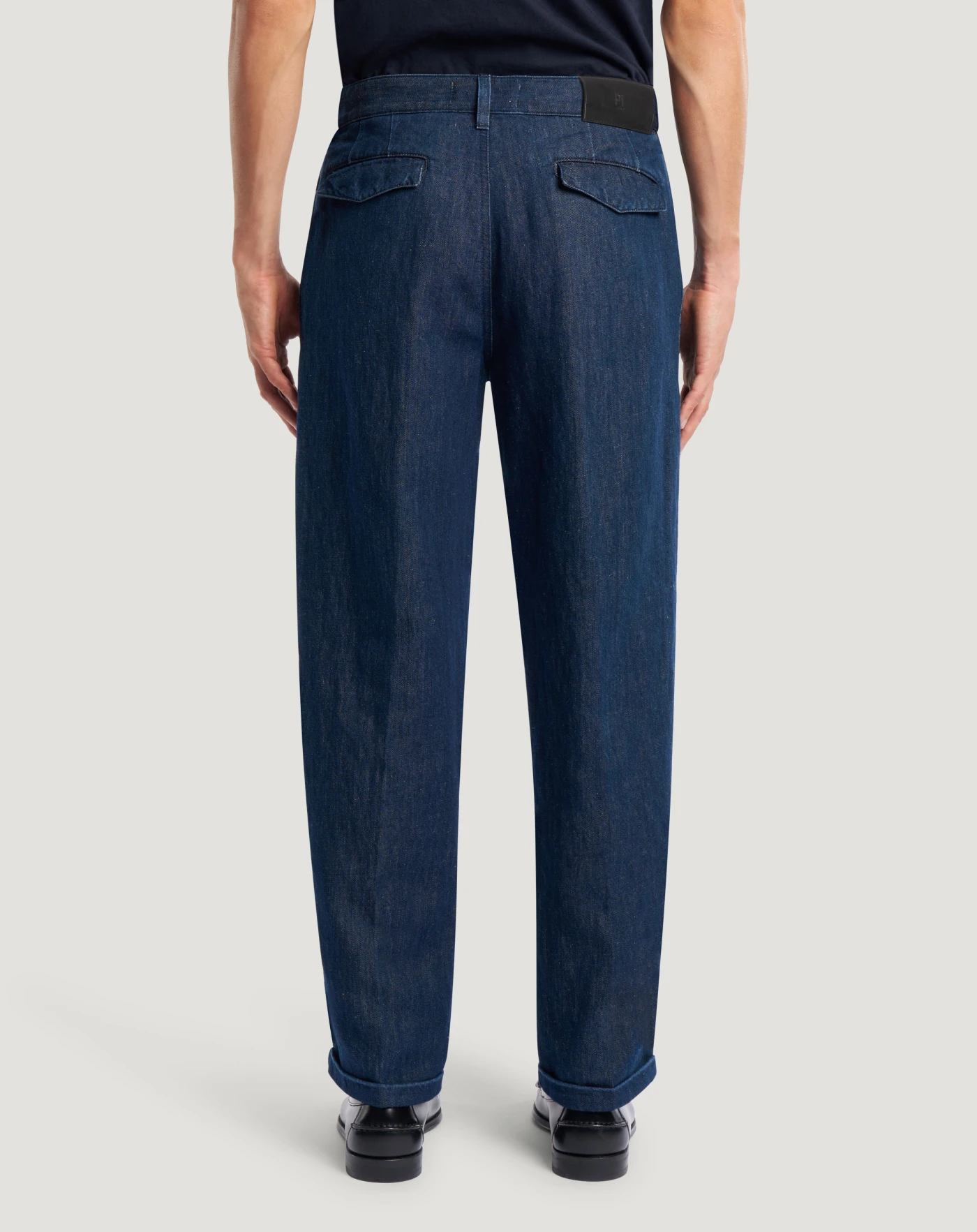 Jeans in denim leggero realizzato con una miscela di cotone e lino, che conferisce al tessuto un aspetto naturale, una mano fresca e una traspirabilità superiore rispetto al denim tradizionale. Con linea regular e fit chino, hanno una texture materica che caratterizza lo stile.