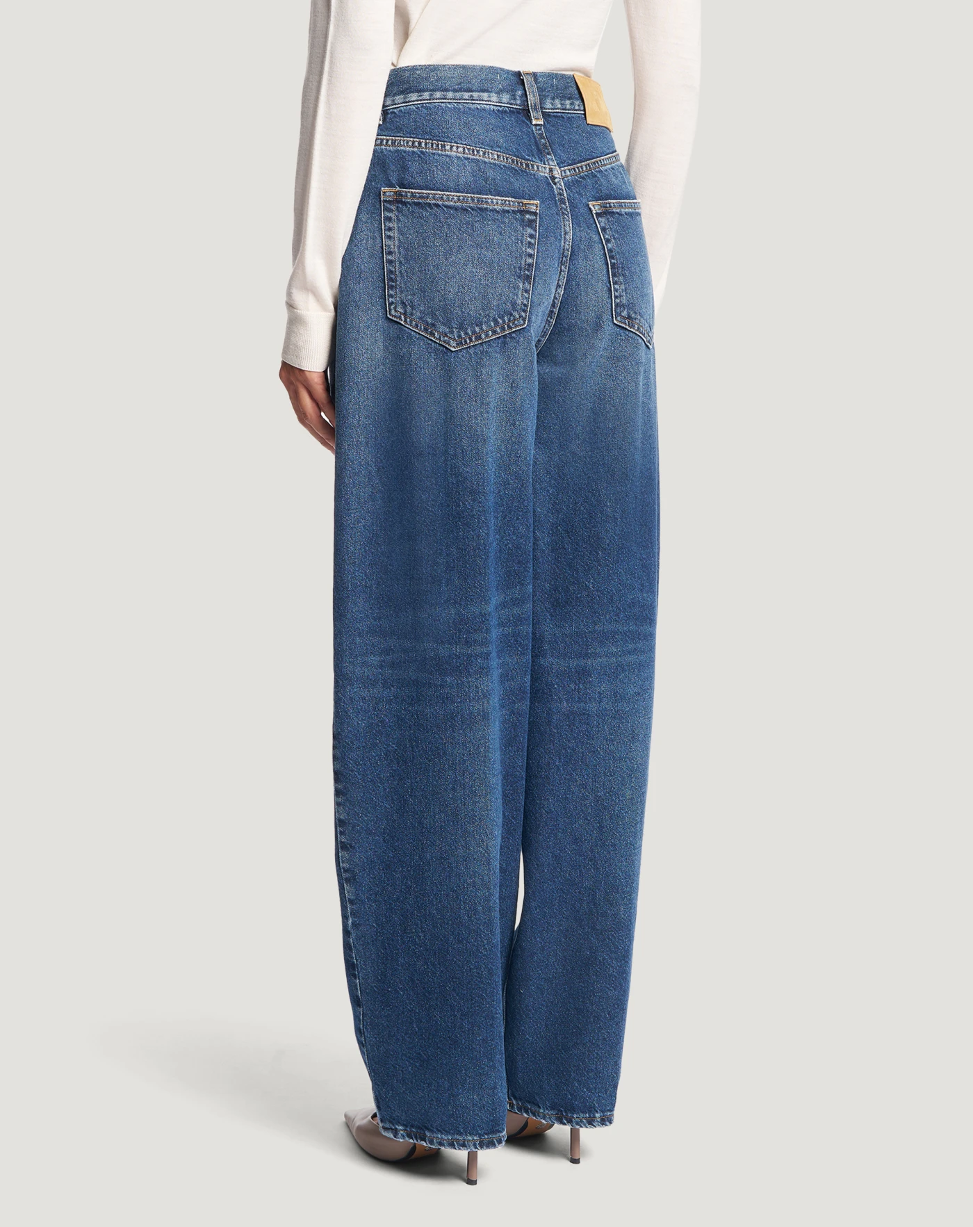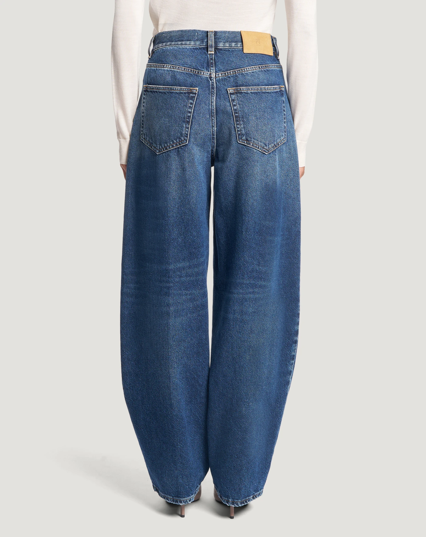 Jeans in denim di cotone una tela ferma caratterizzata da un lavaggio con evidenti baffi e schiariture. Con vita alta e linea carrot aggiungeranno carattere in un attimo a tutti i tuoi outfit cittadini.