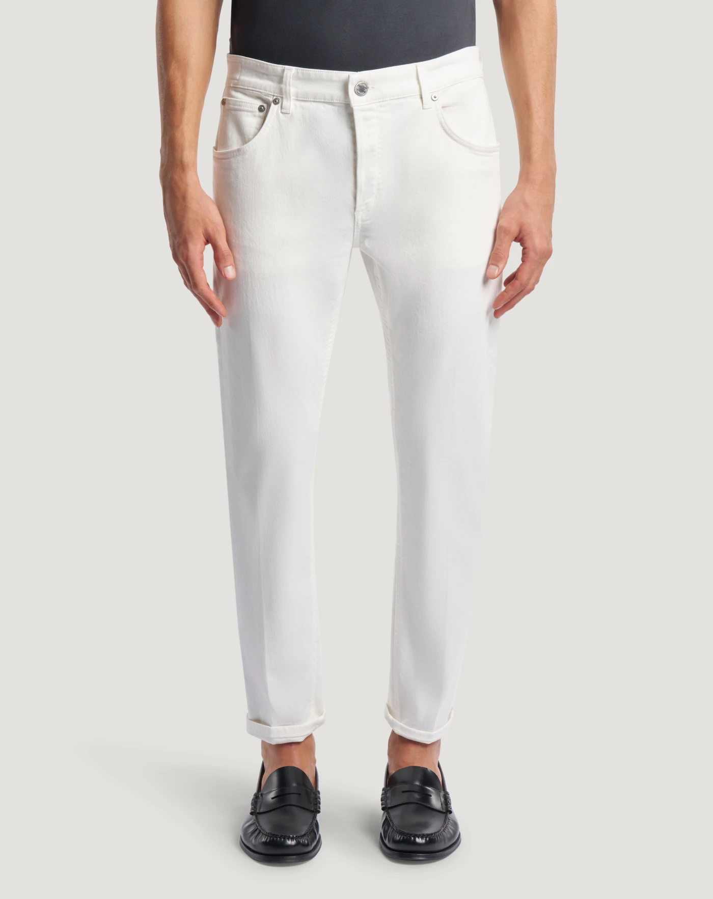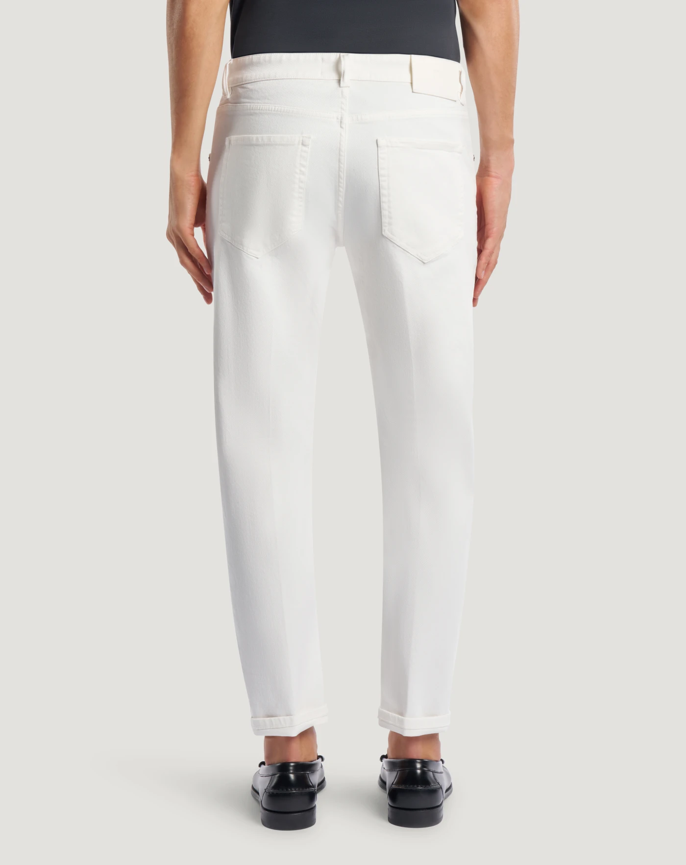 Jeans in bull stretch di cotone un tessuto compatto e resistente, perfetto per lo stile quotidiano. L'attitudine urbana si unisce al design sartoriale con piega stirata, per un modello da indossare in look 24hours.
