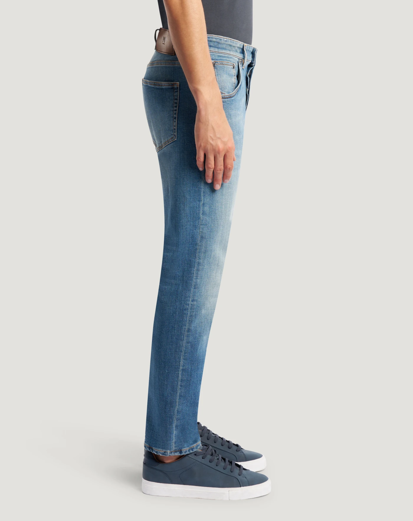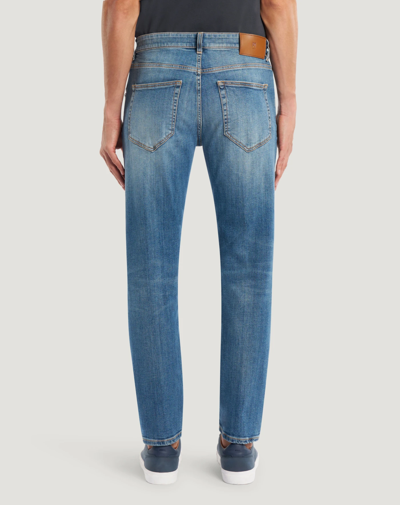 Jeans in denim stretch di cotone una tela morbida e confortevole, con lavaggio caratterizzato da evidenti schiariture davanti. Con linea tapered, risvolto al fondo e cimosa, donano un tocco di carattere al look.