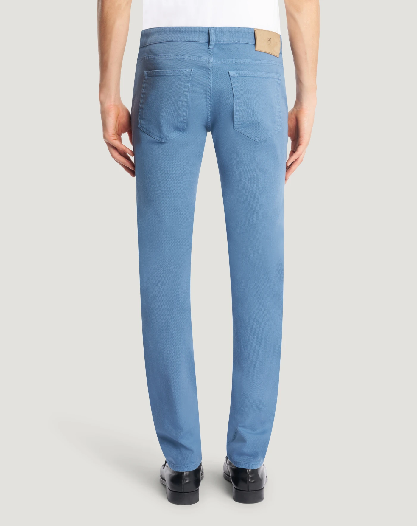 Jeans in bull stretch di cotone un tessuto compatto e resistente. Vita regular e superslim elevano in un attimo lo stile quotidiano. L'attitudine urbana si unisce al design elegante per un modello da indossare in look 24hours.