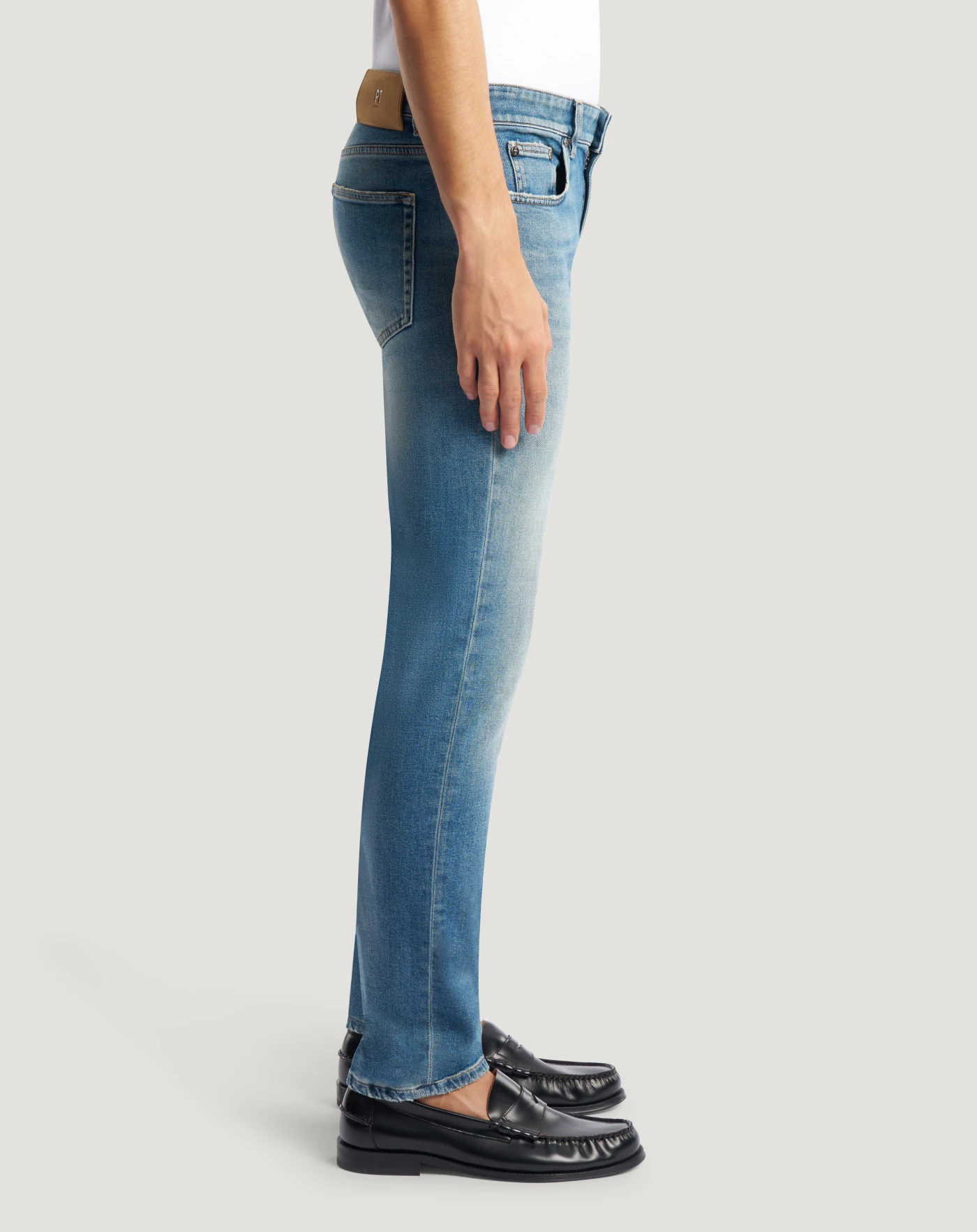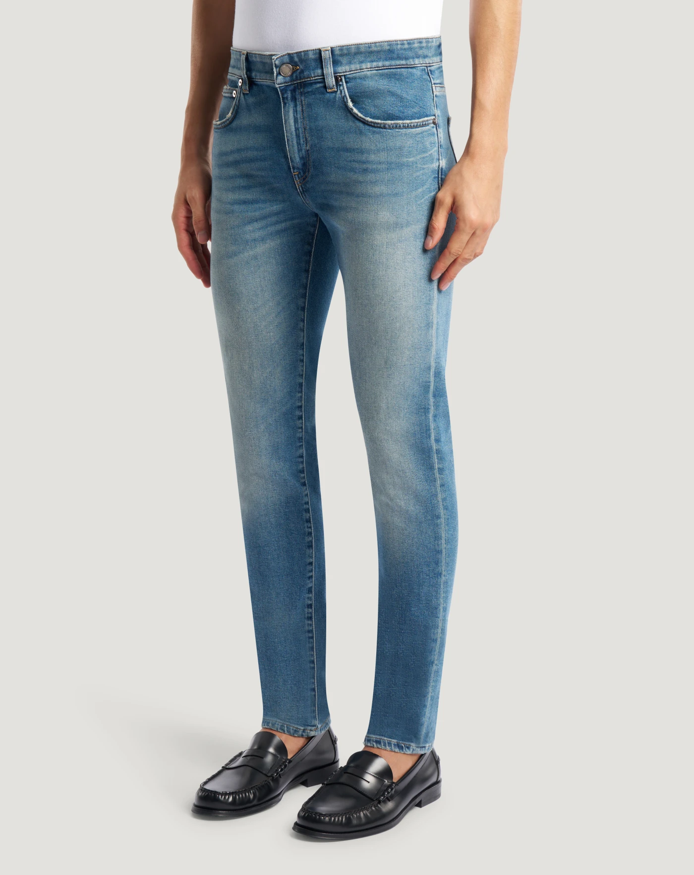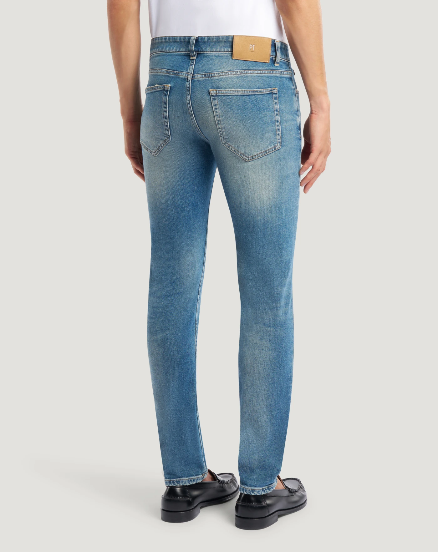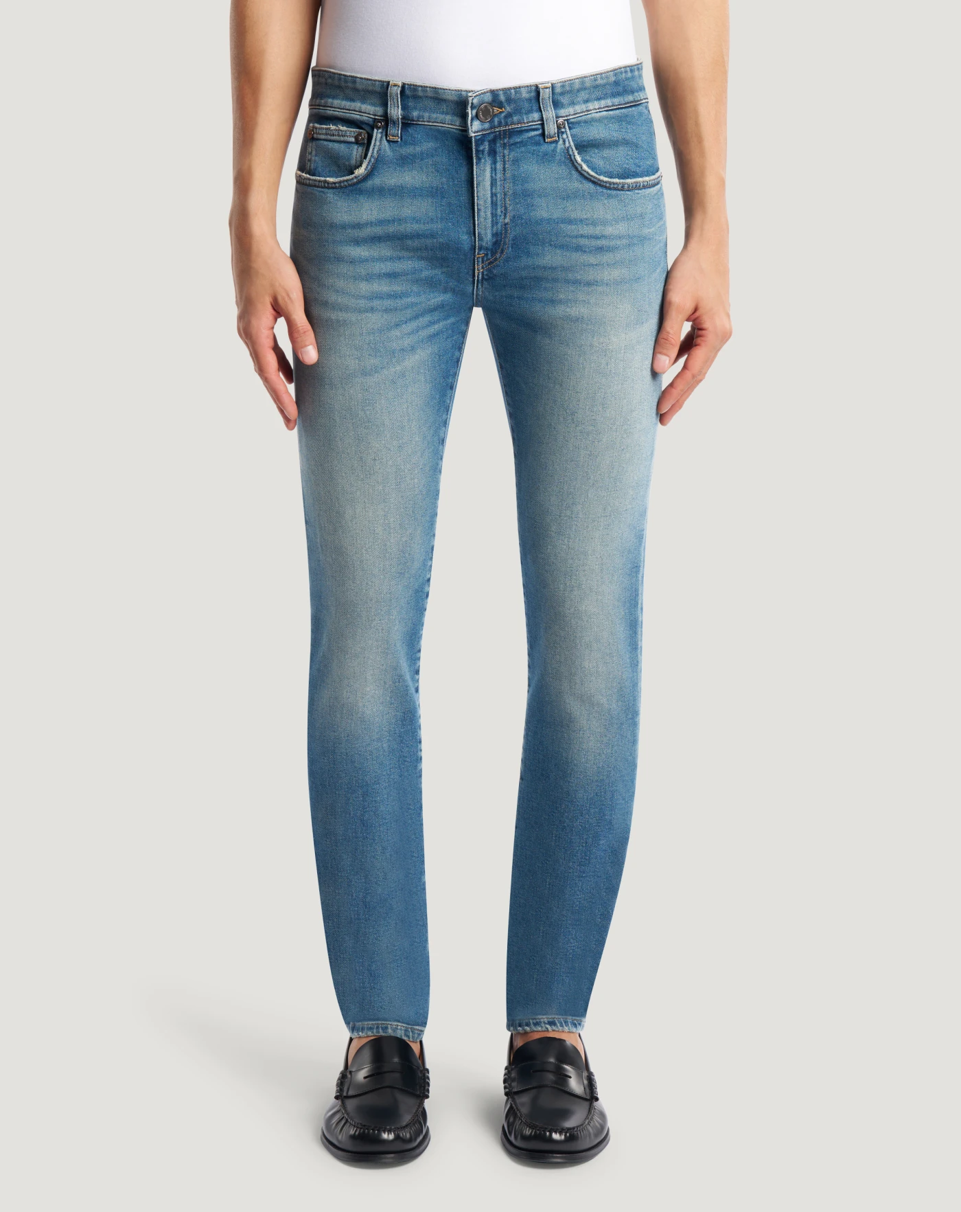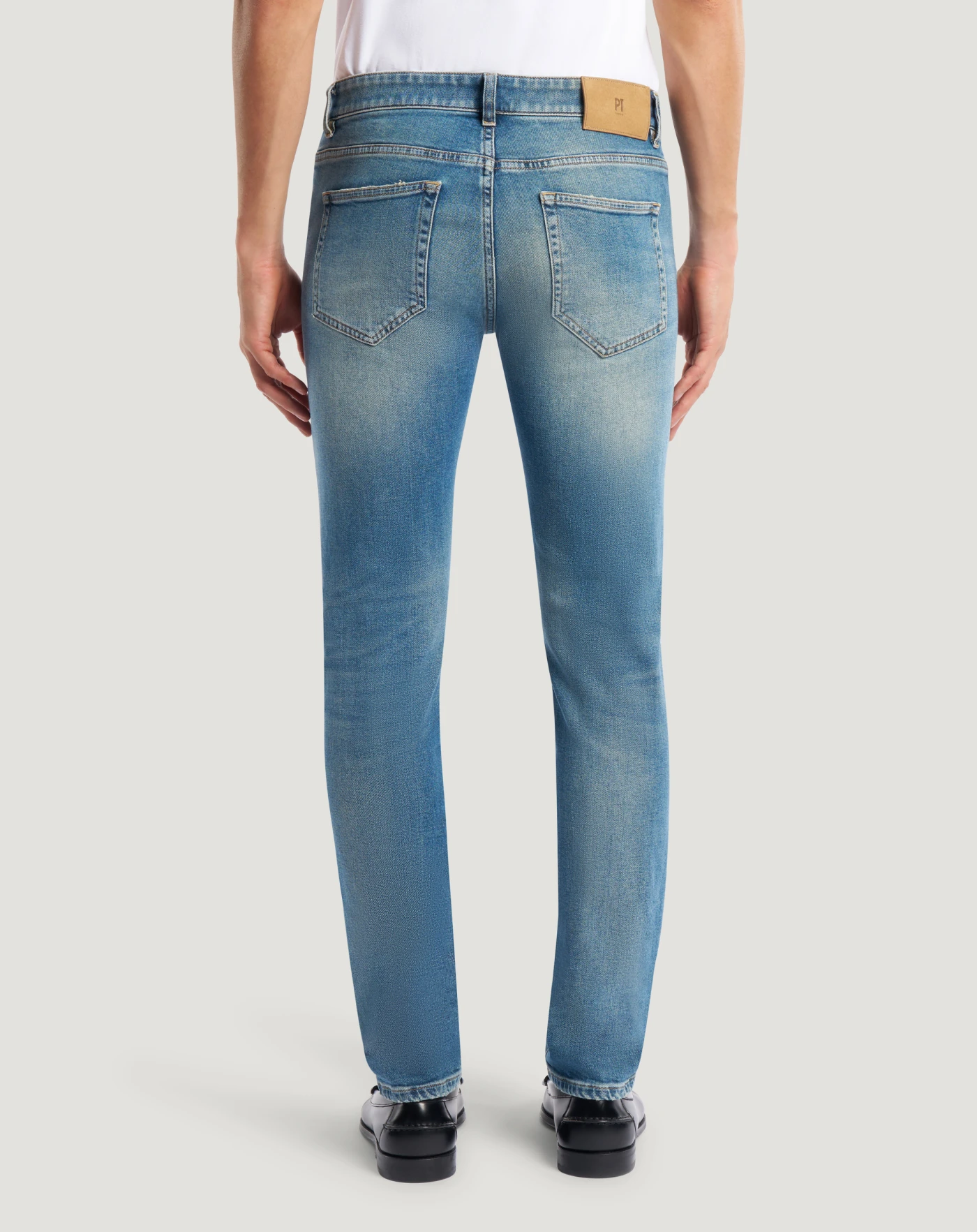 Jeans in denim leggero (9,5 once) con una particolare tonalità blu oceano, caratterizzato da una mano morbida e da un’elasticità integrata che garantisce comfort e libertà di movimento. Con vita regular e linea super slim, doneranno personalità ai tuoi look casual.