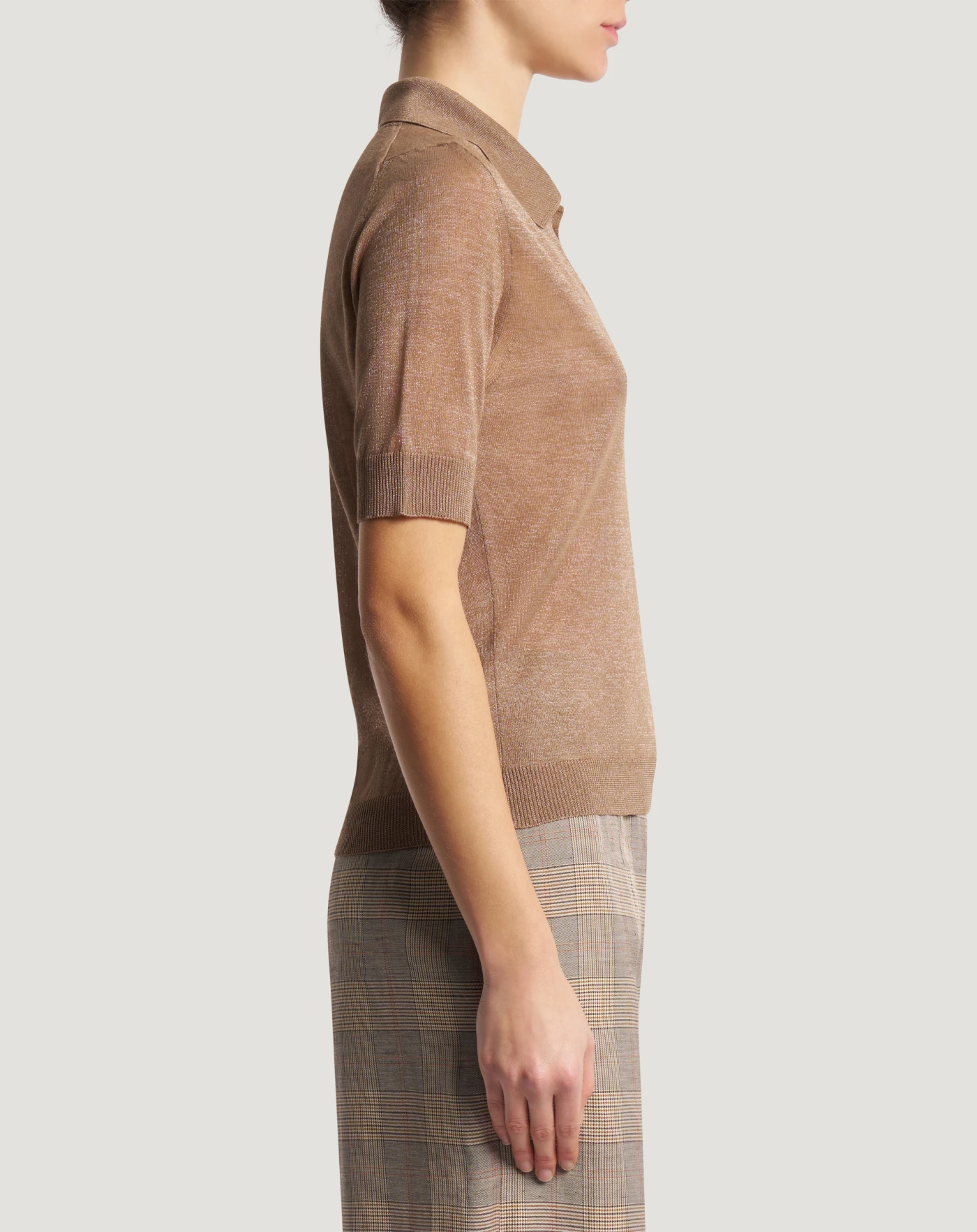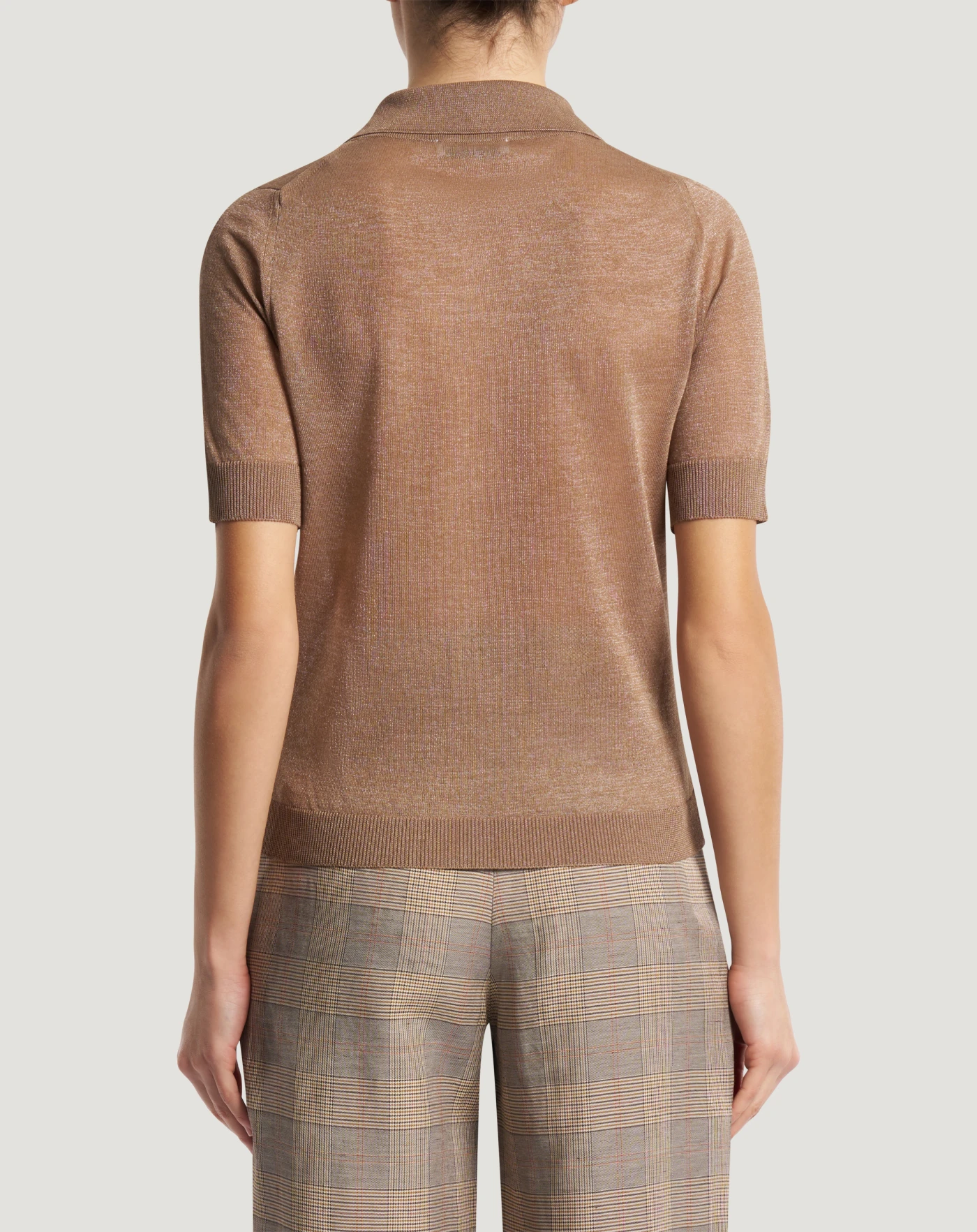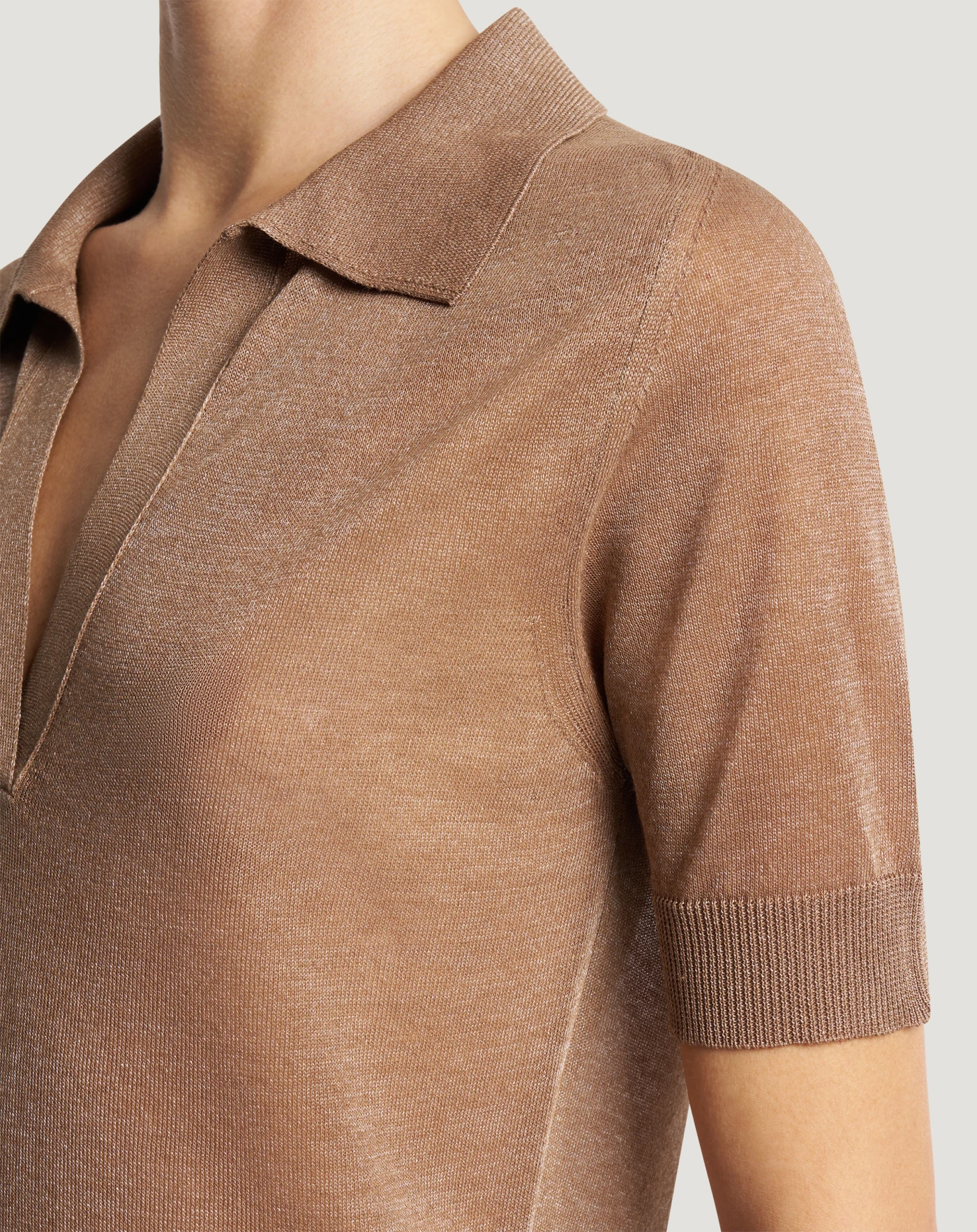 Maglia in filato di viscosa dalla superficie liscia e uniforme, caratterizzato da una mano molto morbida e da una leggera luminosità che dona un aspetto raffinato e contemporaneo. Colletto e apertura a polo per un modello di tendenza che non passerà inosservato.