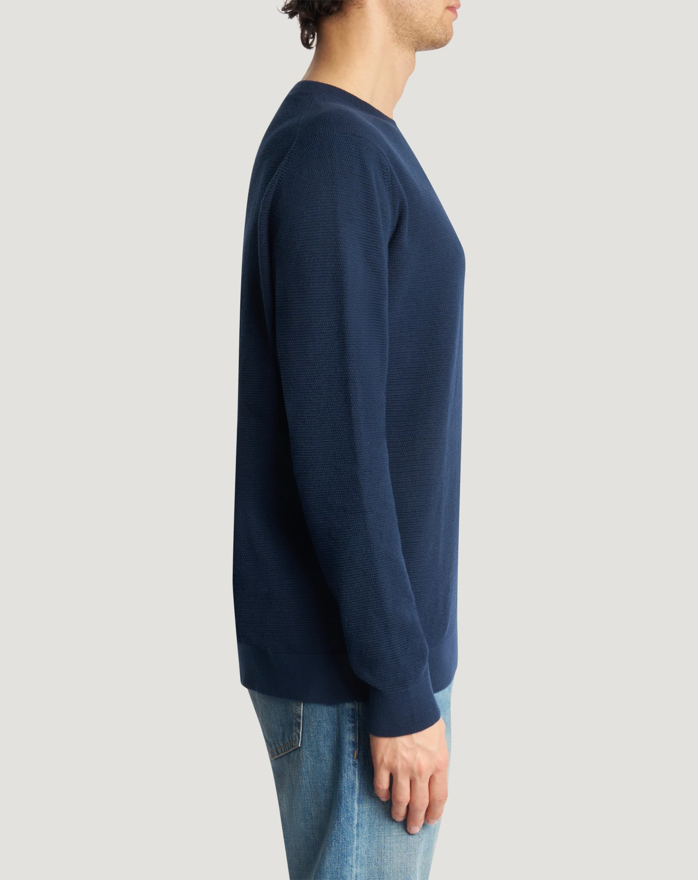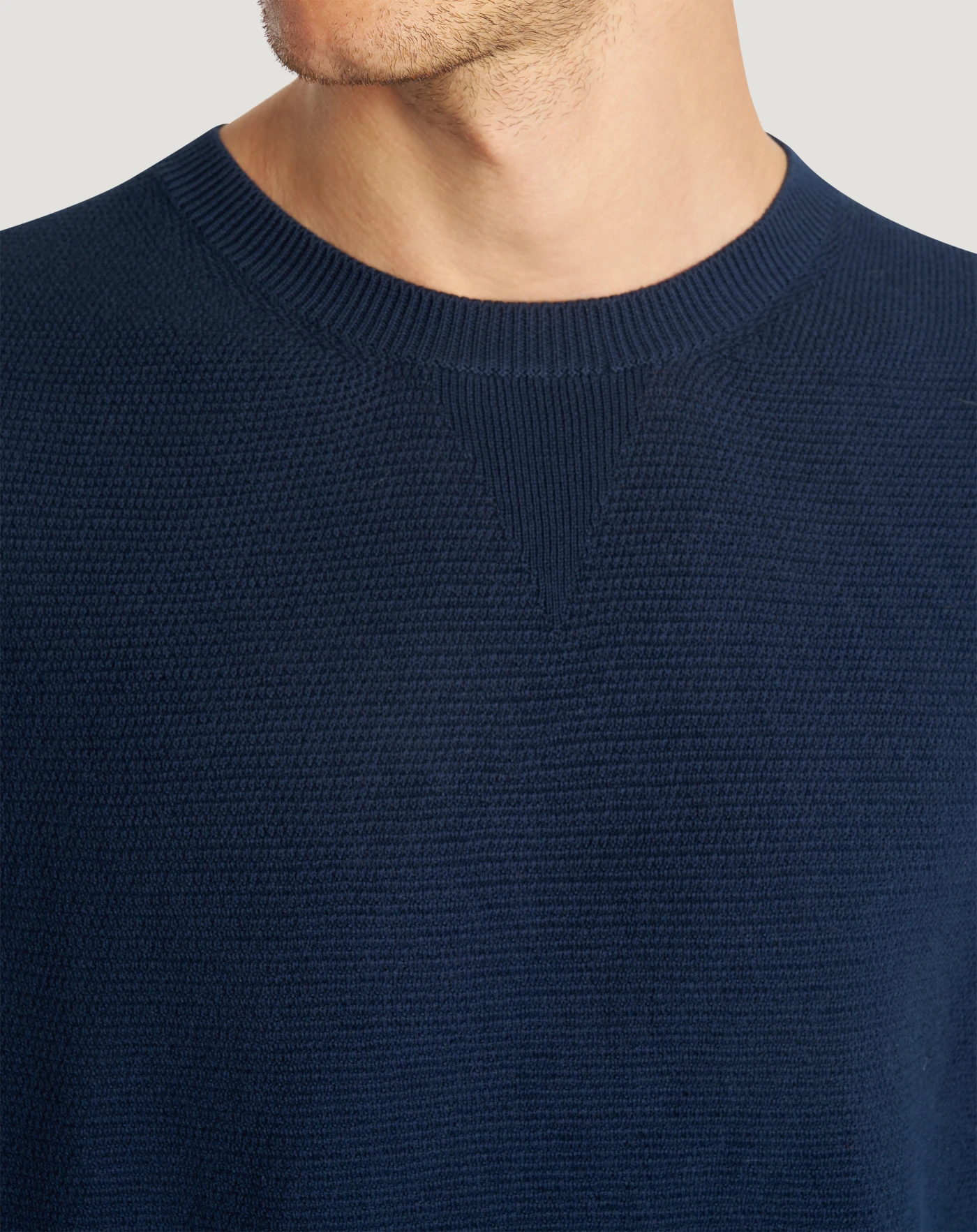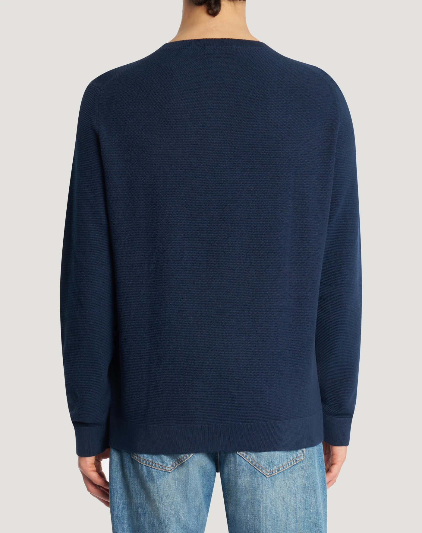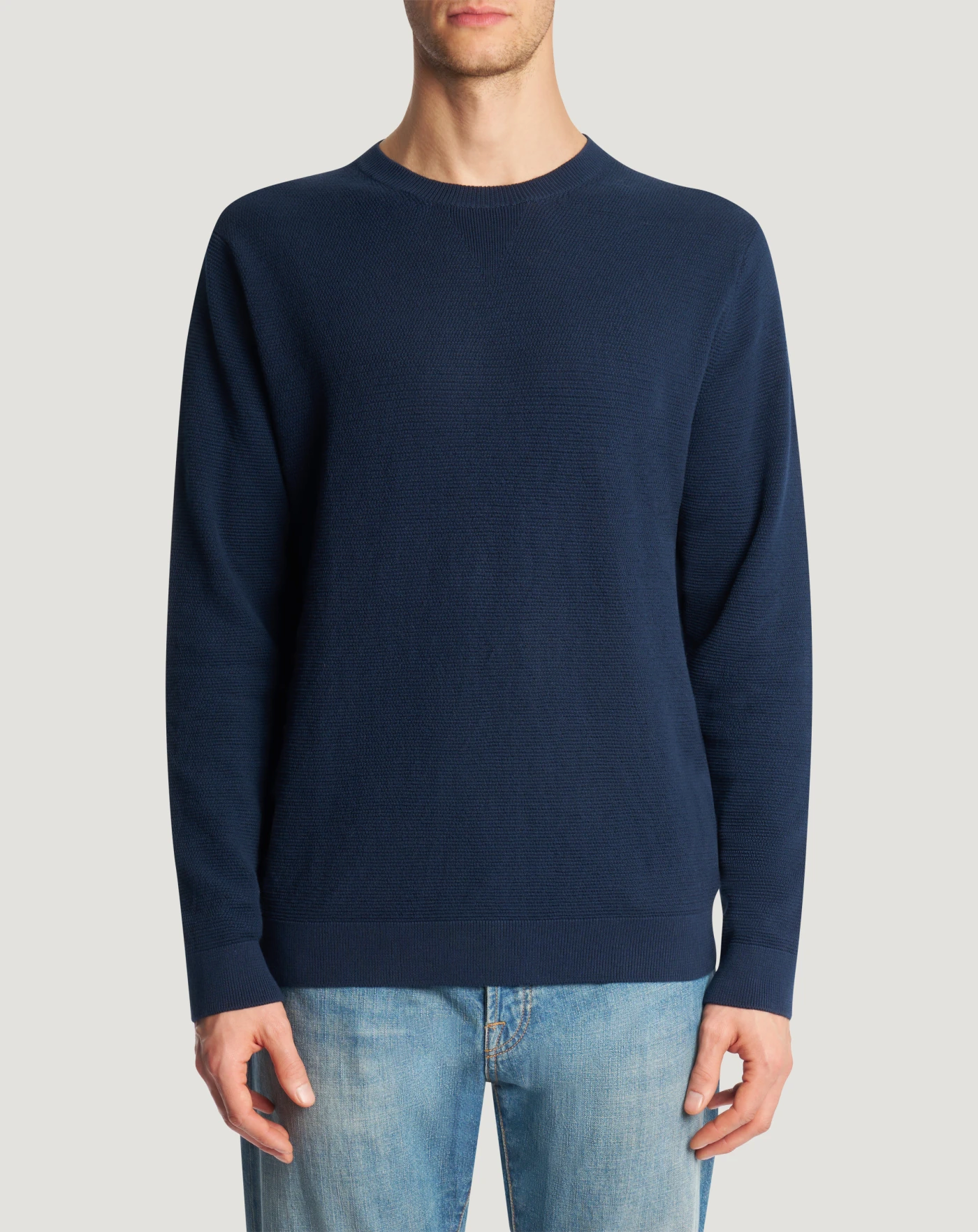 Maglia in puro cotone con lavorazione a nido d'ape, dall'aspetto artigianale e strutturato. Linea regular e girocollo per un capo ricercato da abbinare con facilità.