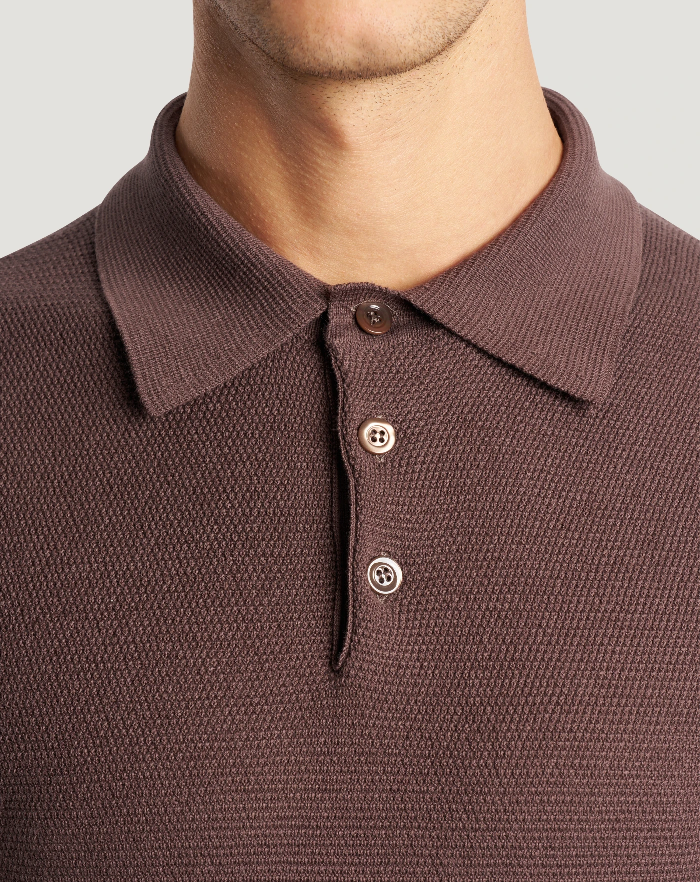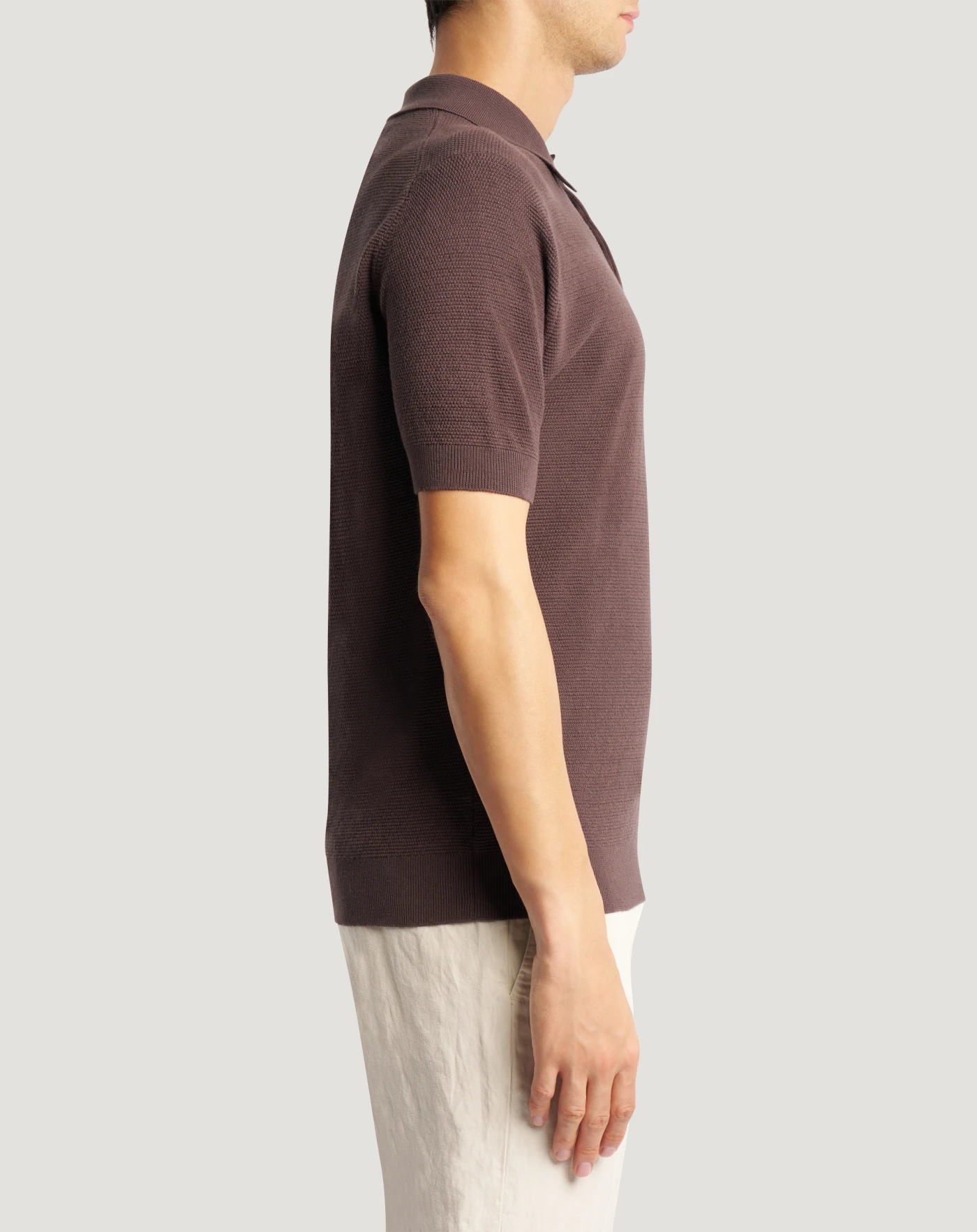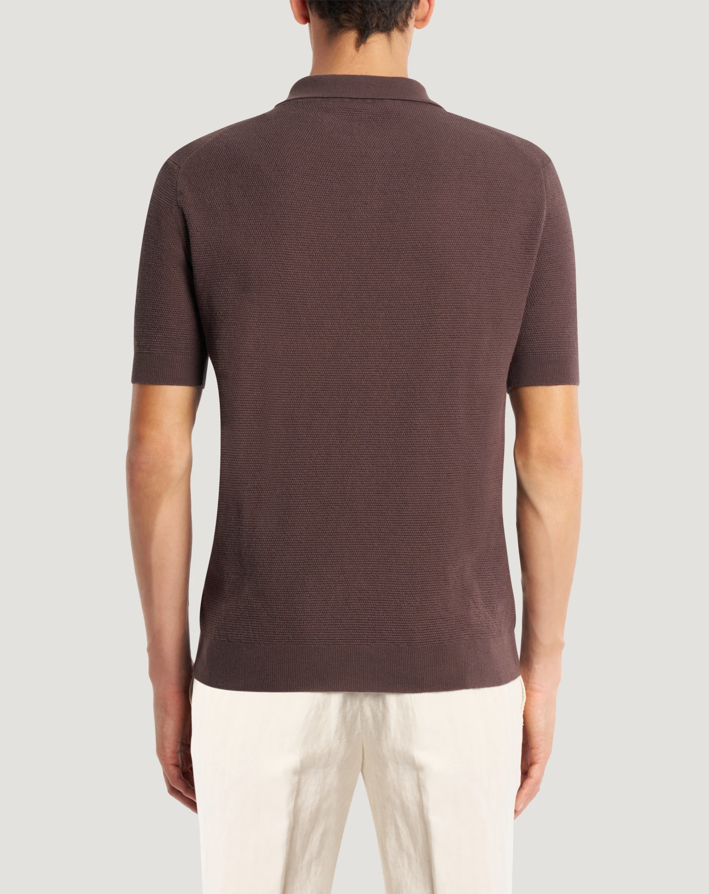 Maglia in puro cotone con lavorazione a nido d'ape, dall'aspetto artigianale e strutturato. Linea regular e apertura a polo per un'eleganza rilassata e perfetta per la stagione.