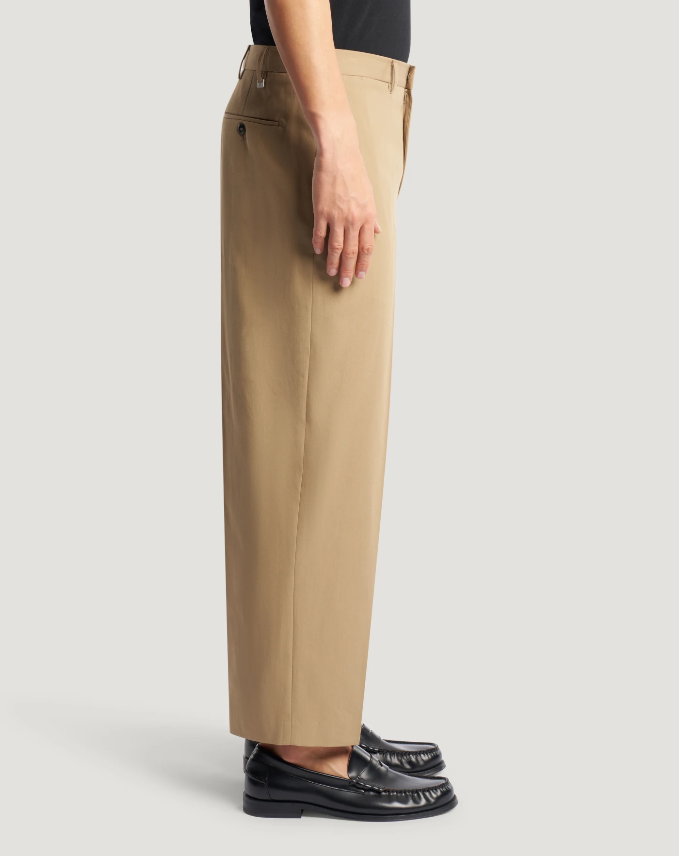 Pantaloni in cotone deluxe un tessuto di alta qualità, pensato per un’estetica formale e contemporanea, che unisce eleganza sartoriale e performance moderne. Con linea dritta e vita regular, hanno un fascino versatile e sartoriale. In beige sono la base neutra perfetta di una miriade di look.