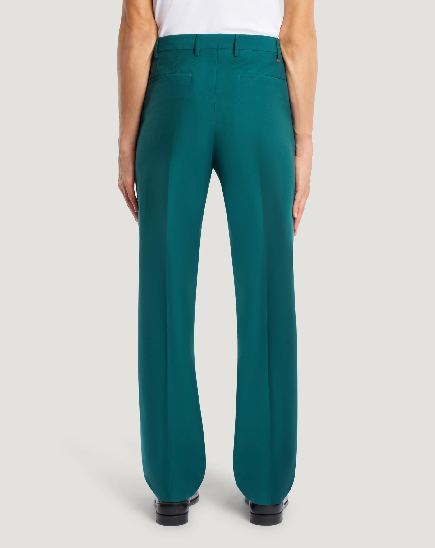 Pantaloni in tela di lana e cotone un tessuto caratterizzato da un aspetto pulito, una mano equilibrata e un comfort naturale. Hanno una linea dritta con piega al bacino, perfetta per completare i tuoi look formali e casual.
