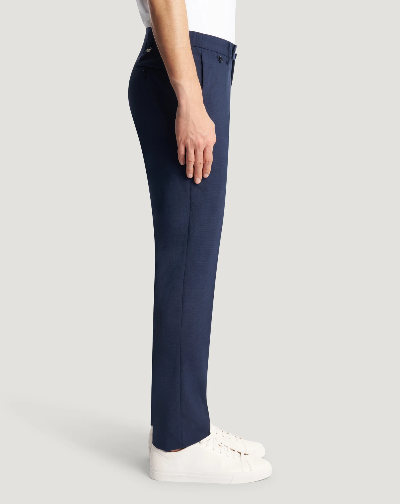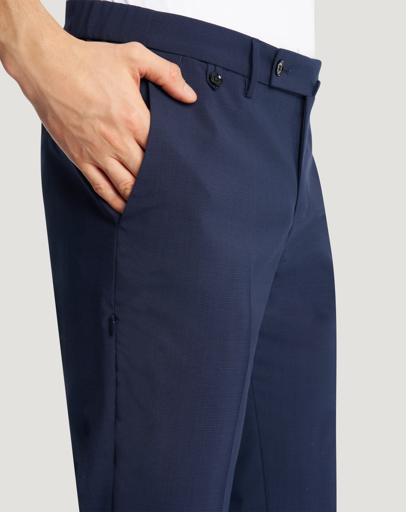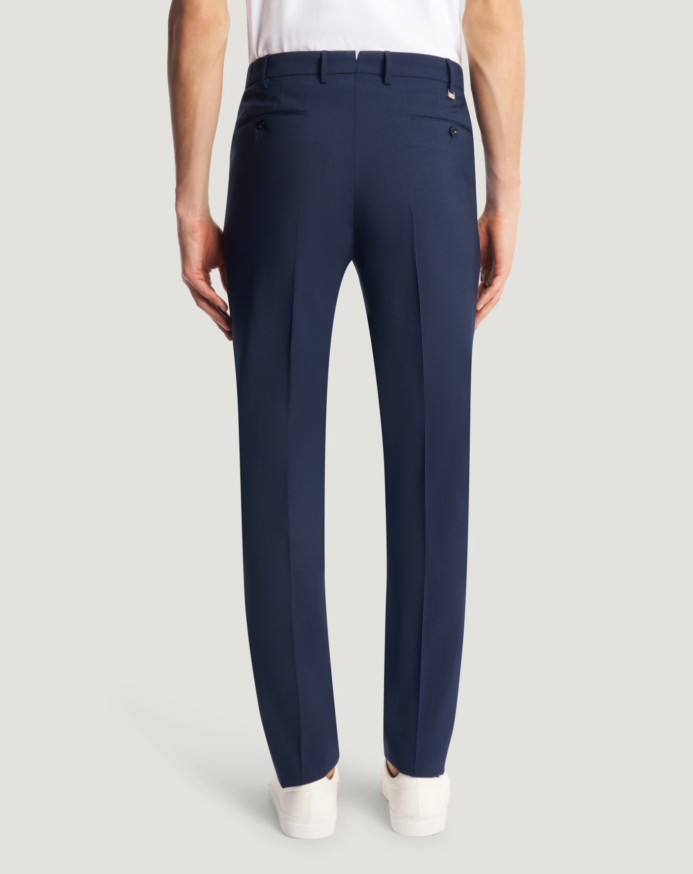 Pantaloni in misto lana caratterizzato da una costruzione in armatura tela arricchita da elevate performance di comfort e lavabilità. Il modello viene consegnato sfilato, da rifinire con un semplice intervento di sartoria su misura, per adattarlo alle tue esigenze di lunghezza e stile. Attitudine metropolitana che in variante blu donerà un tocco raffinato allo stile.