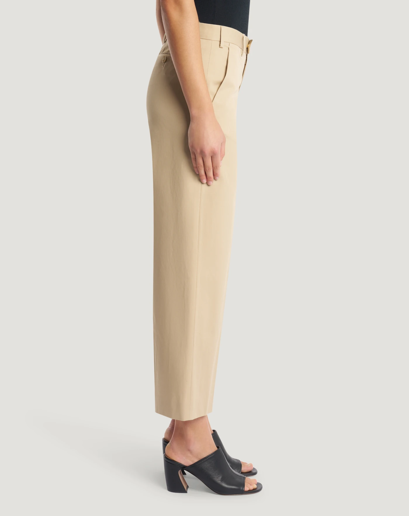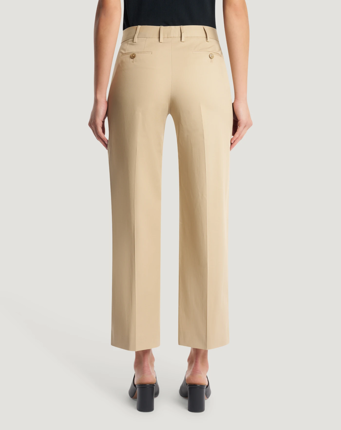 Pantaloni in gabardina di cotone stretch un tessuto perfetto per look versatili dall'aspetto pulito e contemporaneo. Con linea diritta e piega stirata hanno un fascino sartoriale che in beige completa con stile il tuo look.