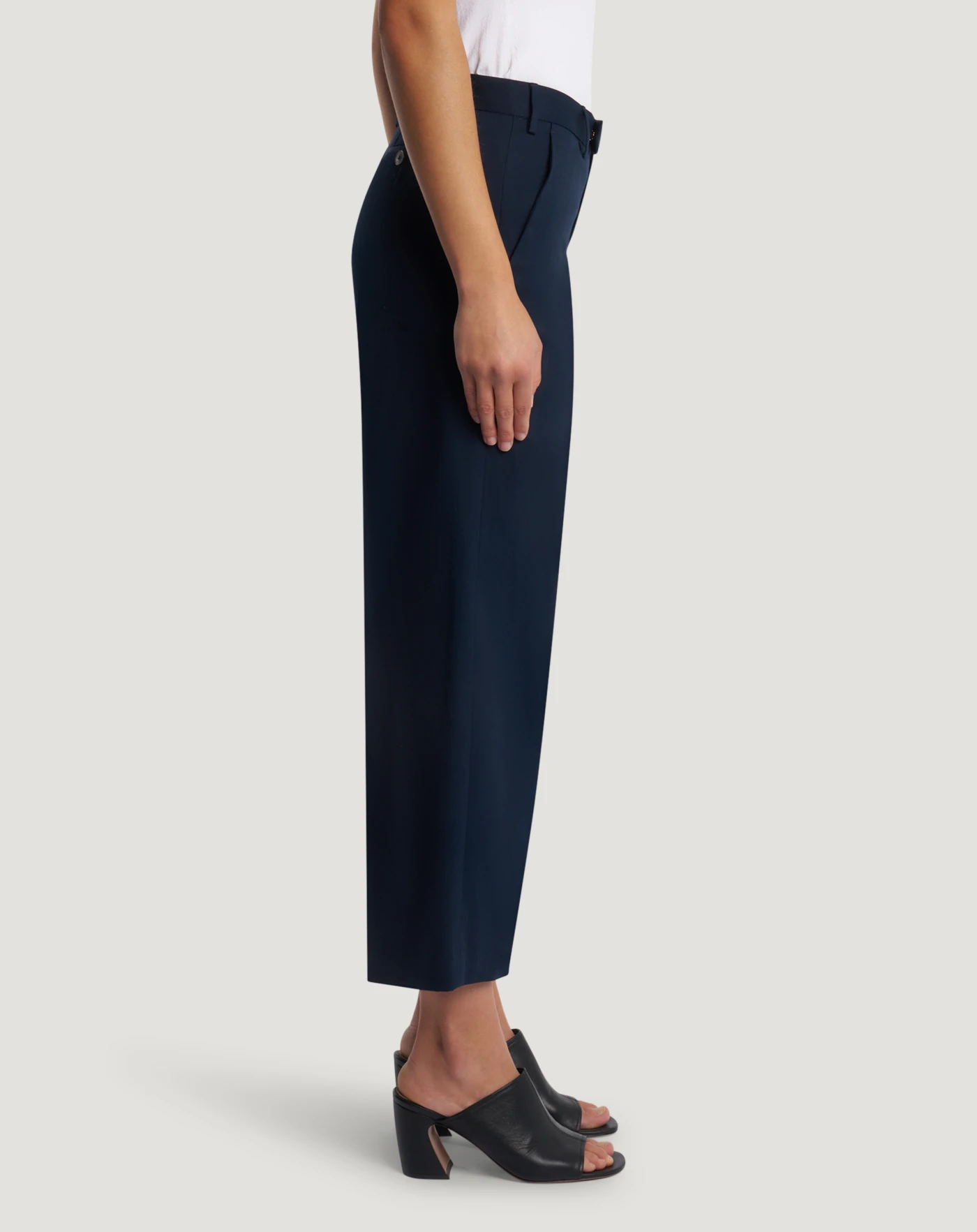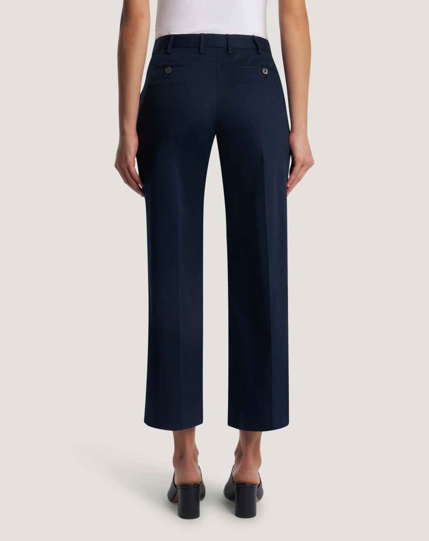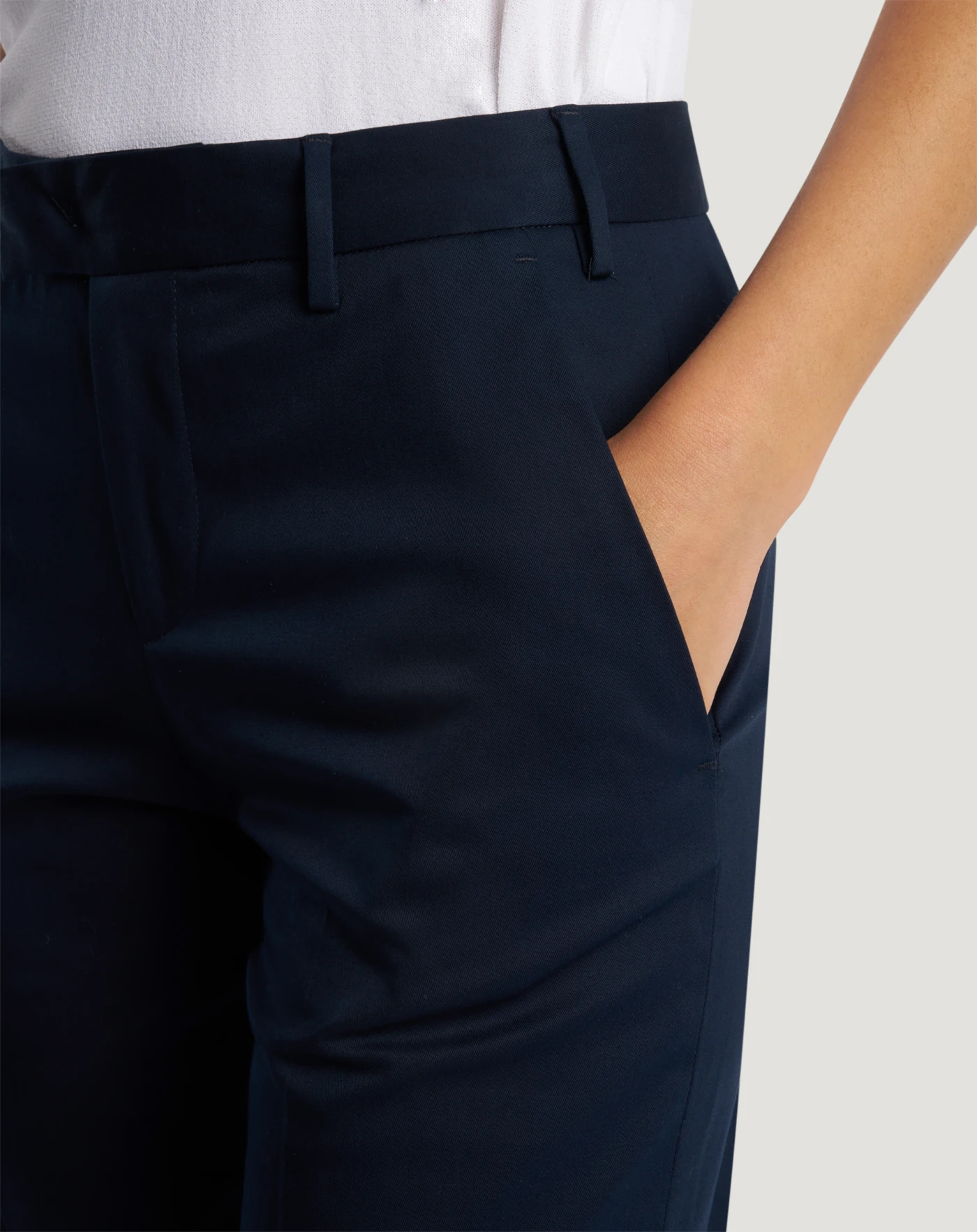 Pantaloni in gabardina di cotone stretch un tessuto perfetto per look versatili dall'aspetto pulito e contemporaneo. Con linea diritta e piega stirata hanno un fascino sartoriale che in blu navy completa con stile il tuo look.