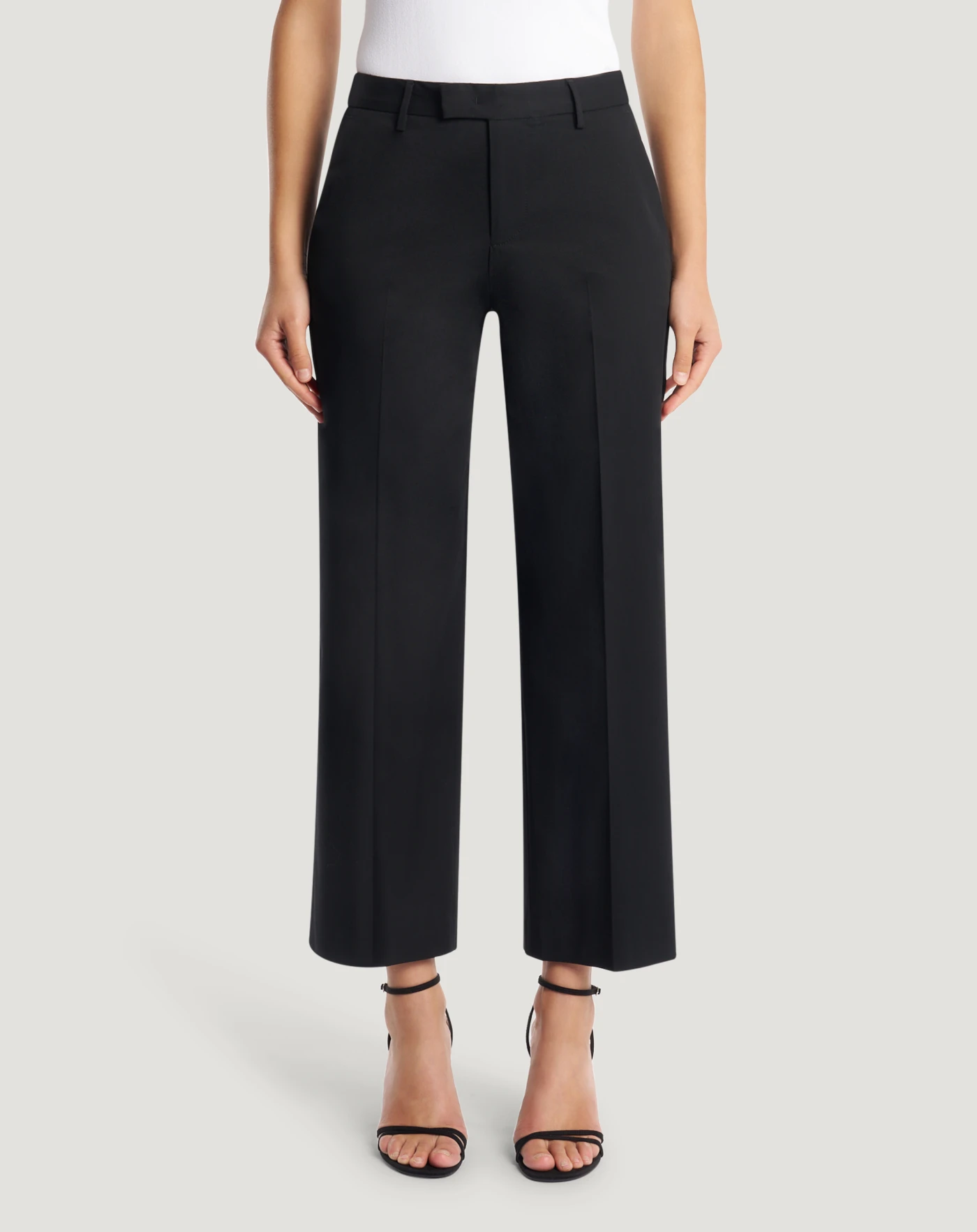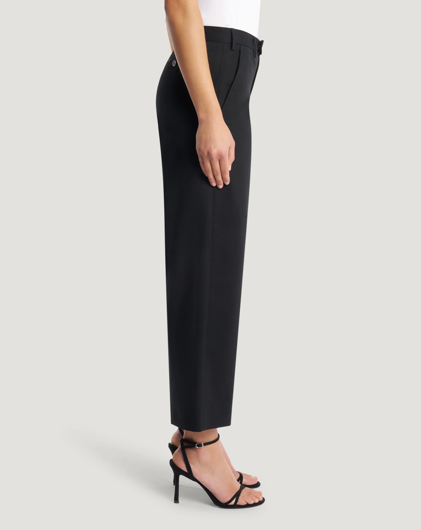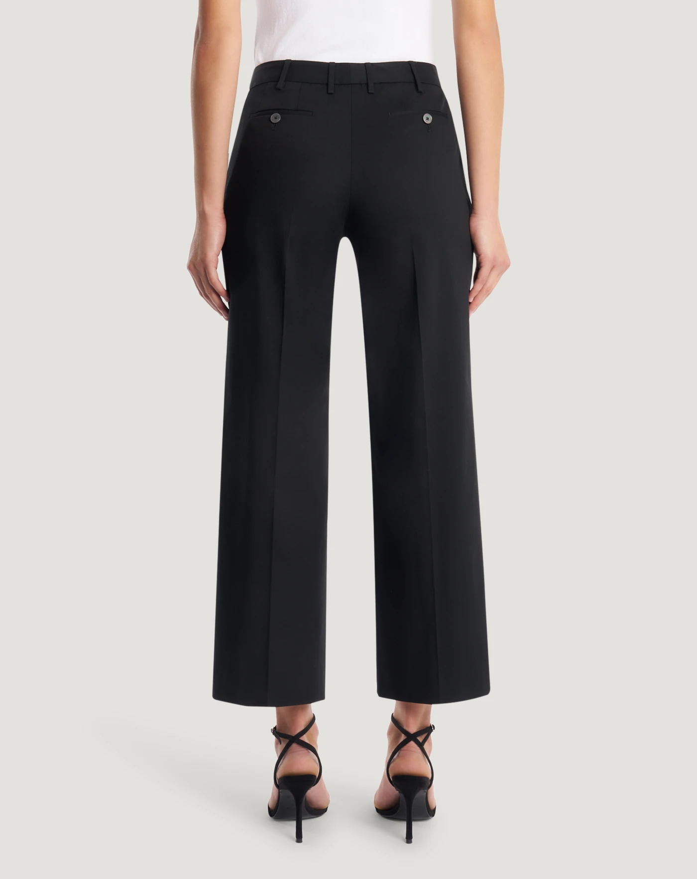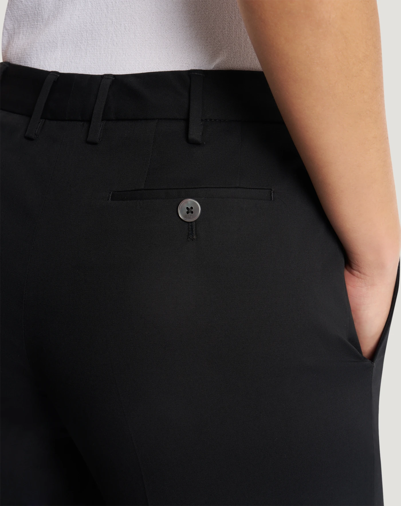 Pantaloni in gabardina di cotone stretch un tessuto elegante ma resistente, perfetto per look versatili dall'aspetto pulito e contemporaneo. Con linea regular e piega stirata hanno un fascino sartoriale che in nero aggiungono eleganza allo stile.