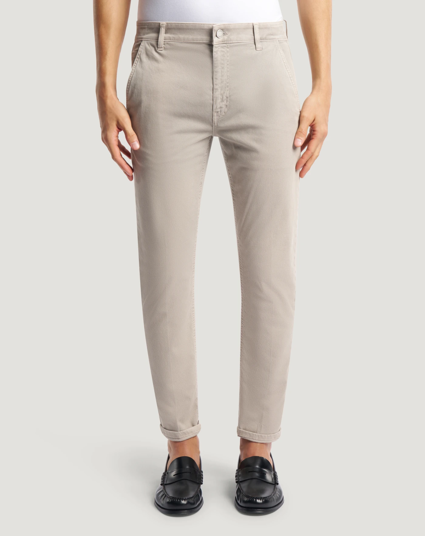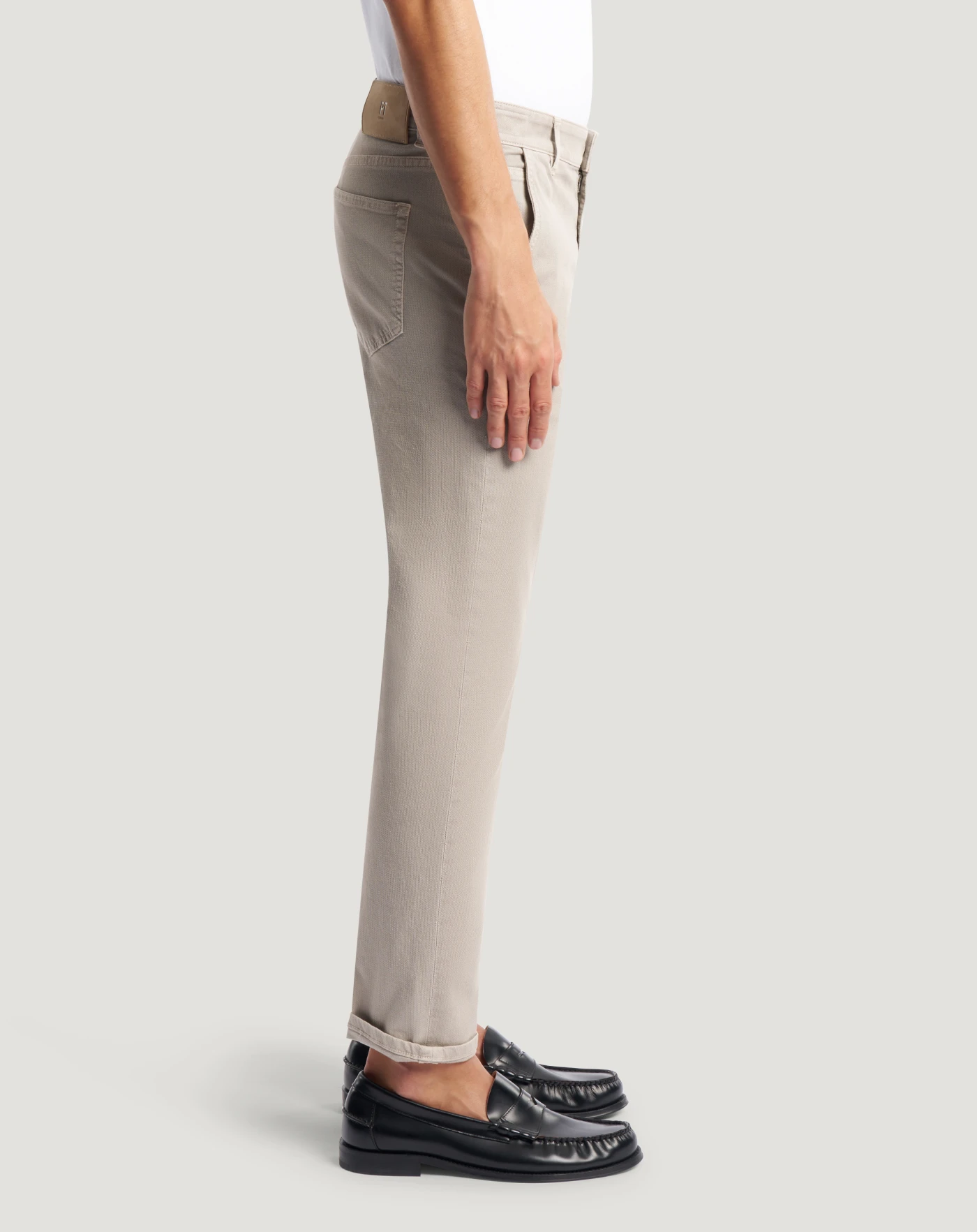 Pantaloni in herringbone di cotone stretch, un tessuto con armatura a spina di pesce, arricchito da una componente elastica che ne migliora comfort e vestibilità. Con linea tapered, vita regular e risvolto al fondo, in grigio hanno un aspetto ricercato ed elegante perfetto per elevare qualsiasi look.