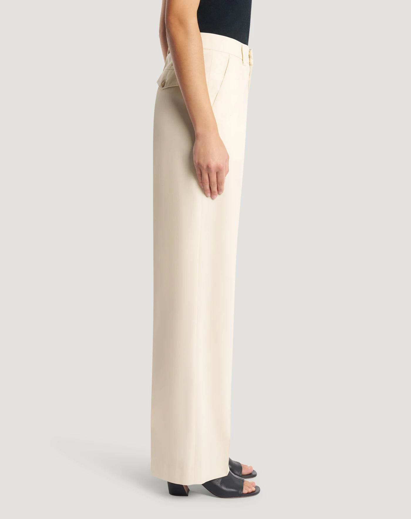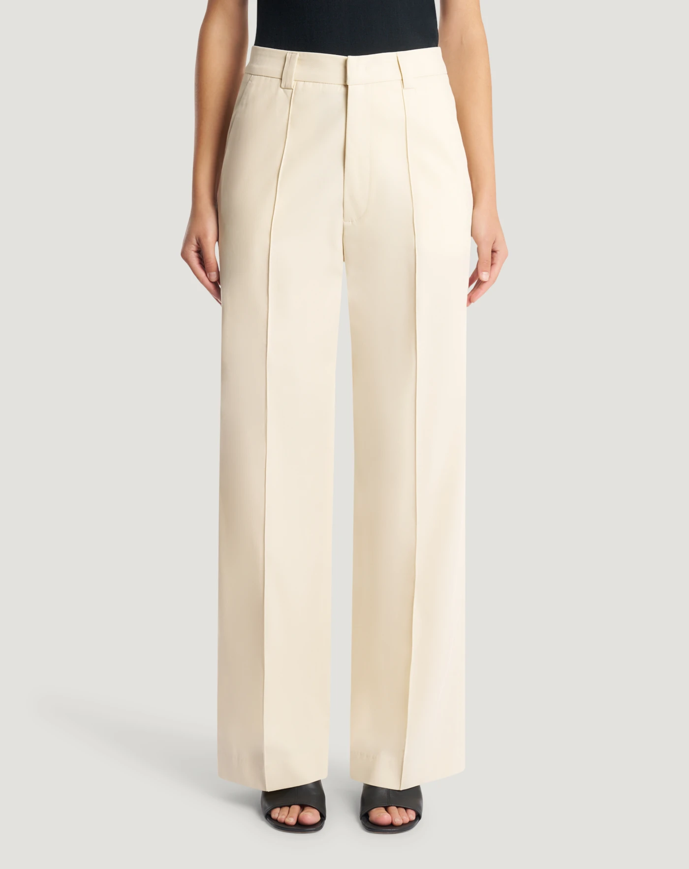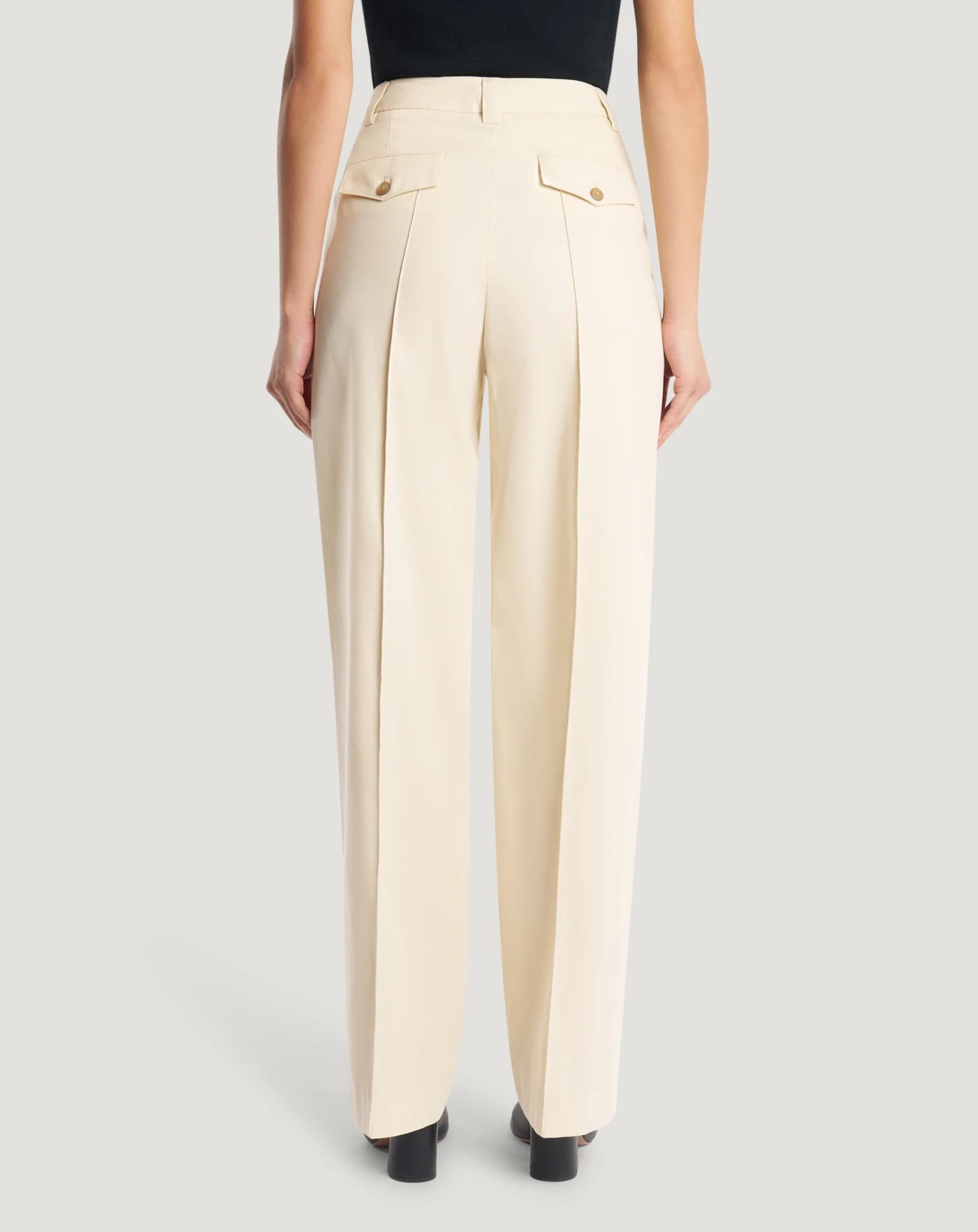Pantaloni in cotone formal deluxe un tessuto di qualità superiore, progettato per un’estetica formale e contemporanea, con una mano raffinata e una costruzione pulita. Con linea regular dritta e piega stirata, per un fascino sartoriale da indossare in bianco ghiaccio tono su tono.