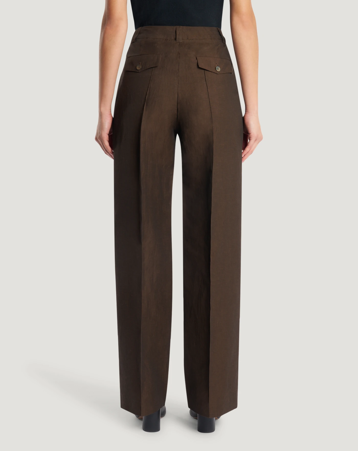 Pantaloni in lino e cotone cangiante un tessuto leggero e traspirante dalla superficie pulita, regolare e naturalmente elegante. Con linea regular dritta e piega stirata, sono un modello che donerà un aspetto contemporaneo allo stile.