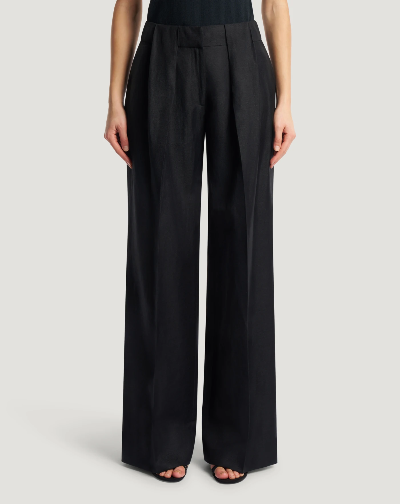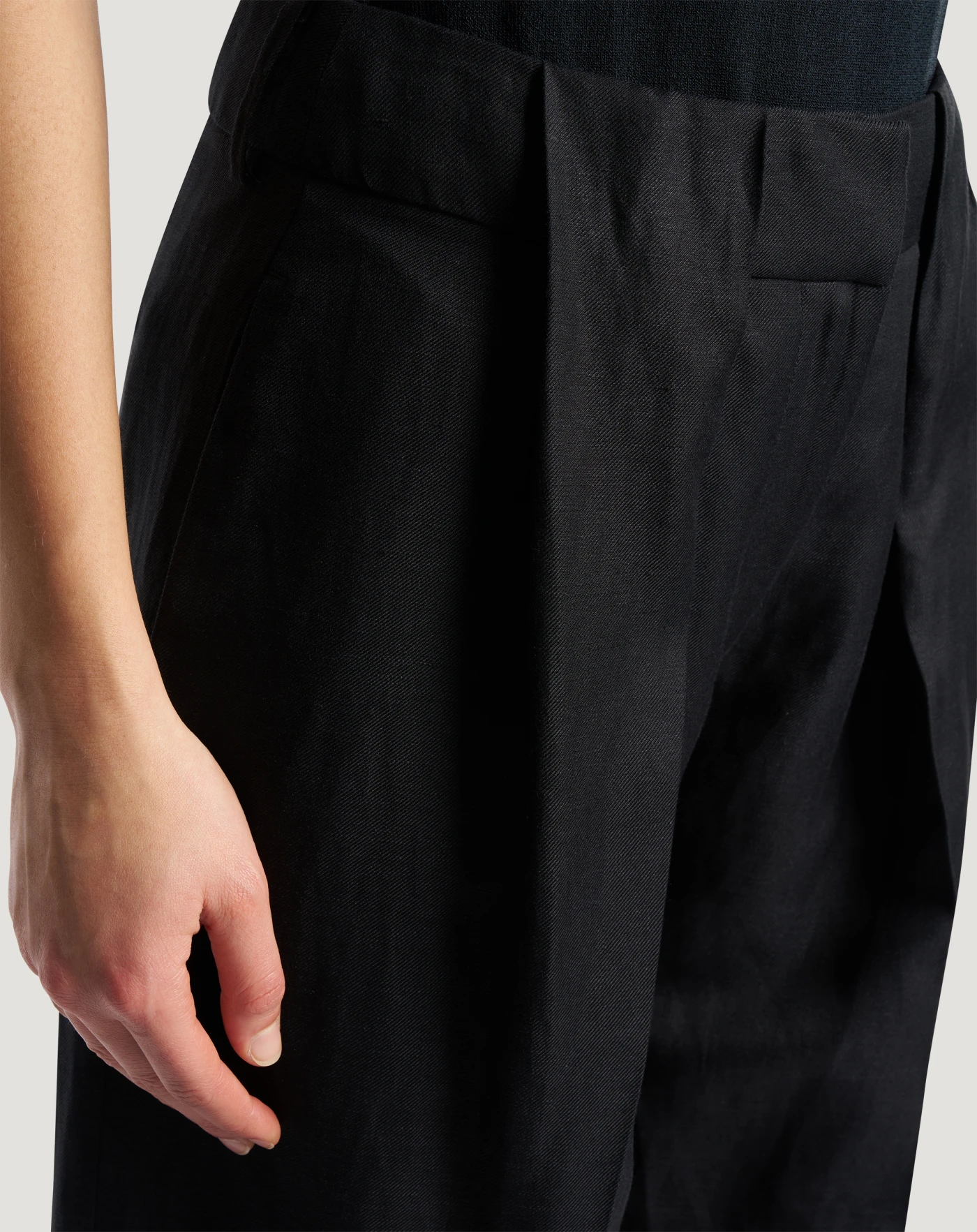 Pantaloni in twill di viscosa e lino, un tessuto ad armatura diagonale che combina la freschezza naturale del lino con l’eleganza e la morbidezza della lana. Con linea ampia e sartoriale, saranno la base ideale di una miriade di look on e off duty.