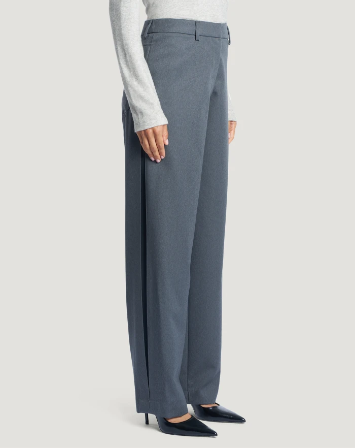 Pantaloni in drill di pura lana con filato doppio ritorto che rende il tessuto molto resistente a strappi e sfregamenti, con aspetto attuale e consistente. Dalla linea ampia e rilassata, sono costruiti con inserti ai fianchi per un design inedito. In grigio per l'ufficio e le occasioni formali.
