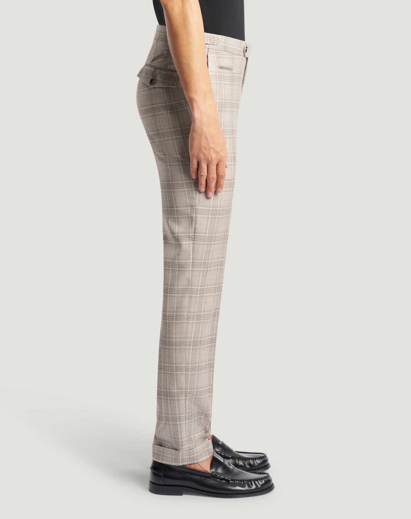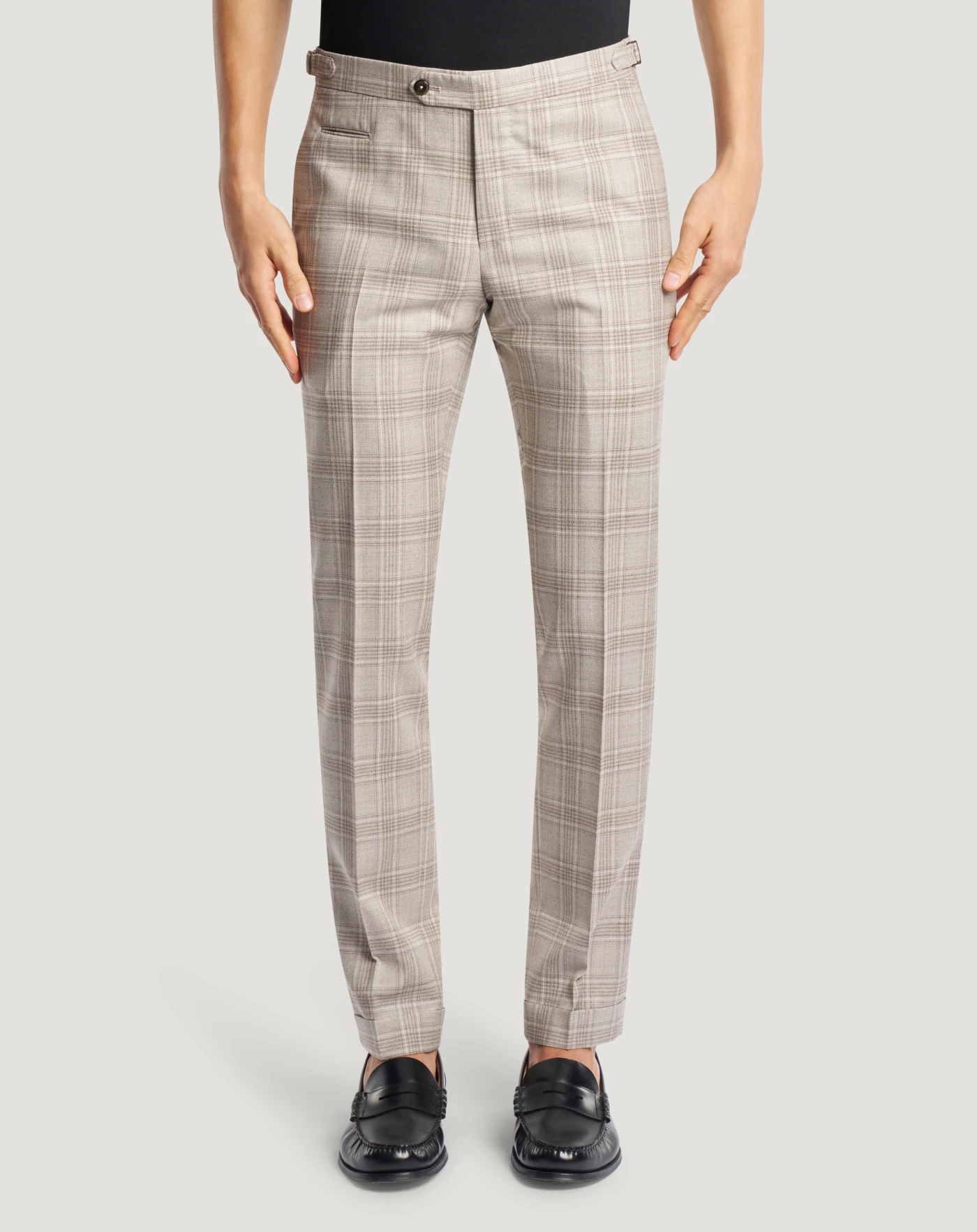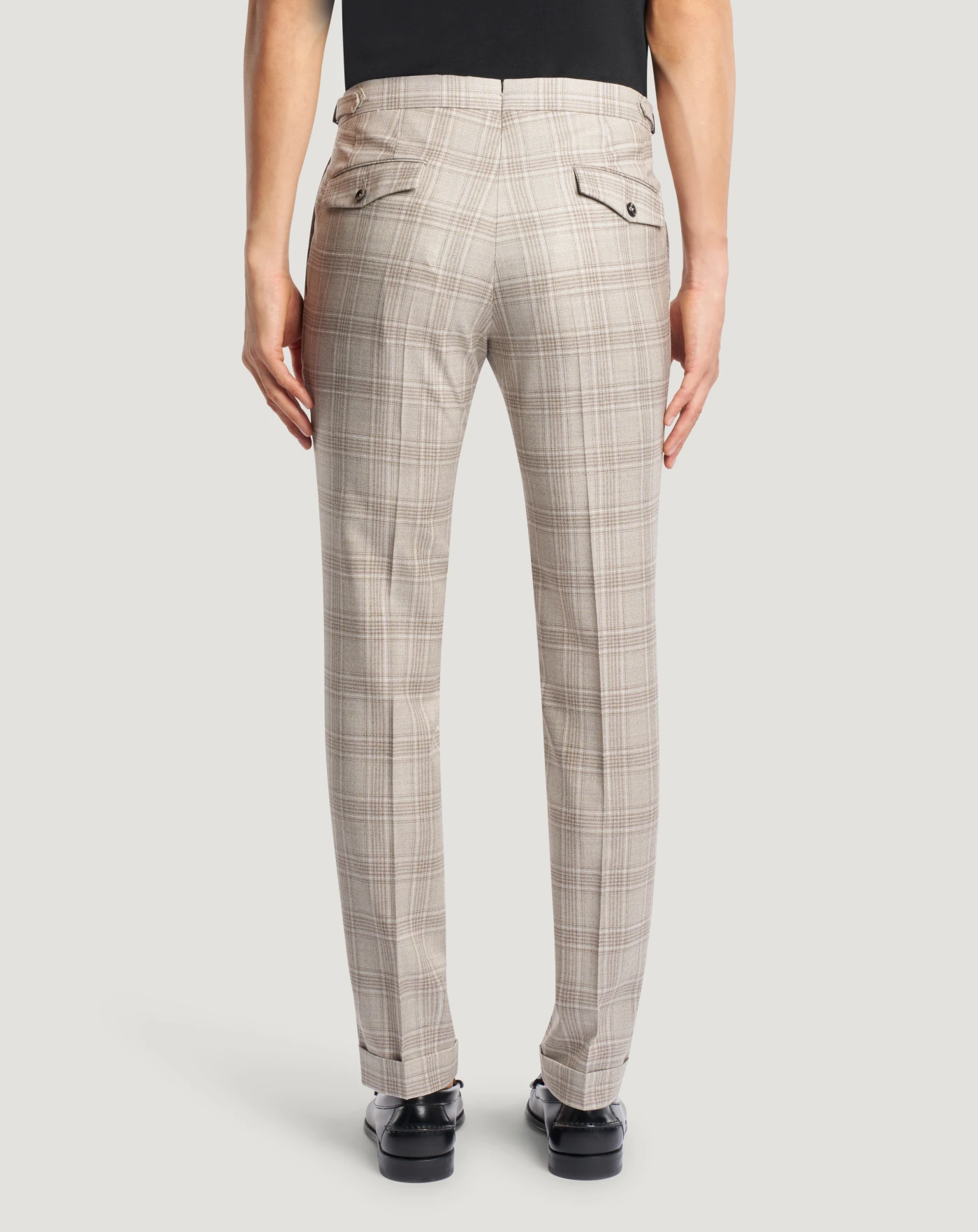 Pantaloni in lana di alta qualità realizzata con filati fini Super 100’s, caratterizzata da un aspetto elegante e da superficie disegnata. Il modello viene consegnato sfilato, da rifinire con un semplice intervento di sartoria su misura, per adattarlo alle tue esigenze di lunghezza e stile. Bacino pulito e tasche applicate sul retro per un modello versatile e raffinato.