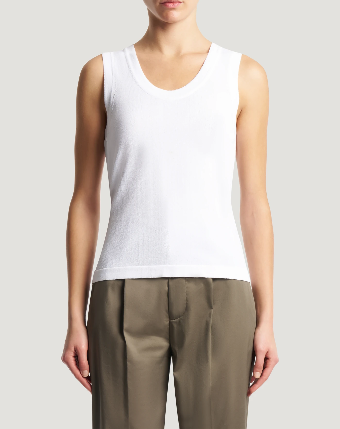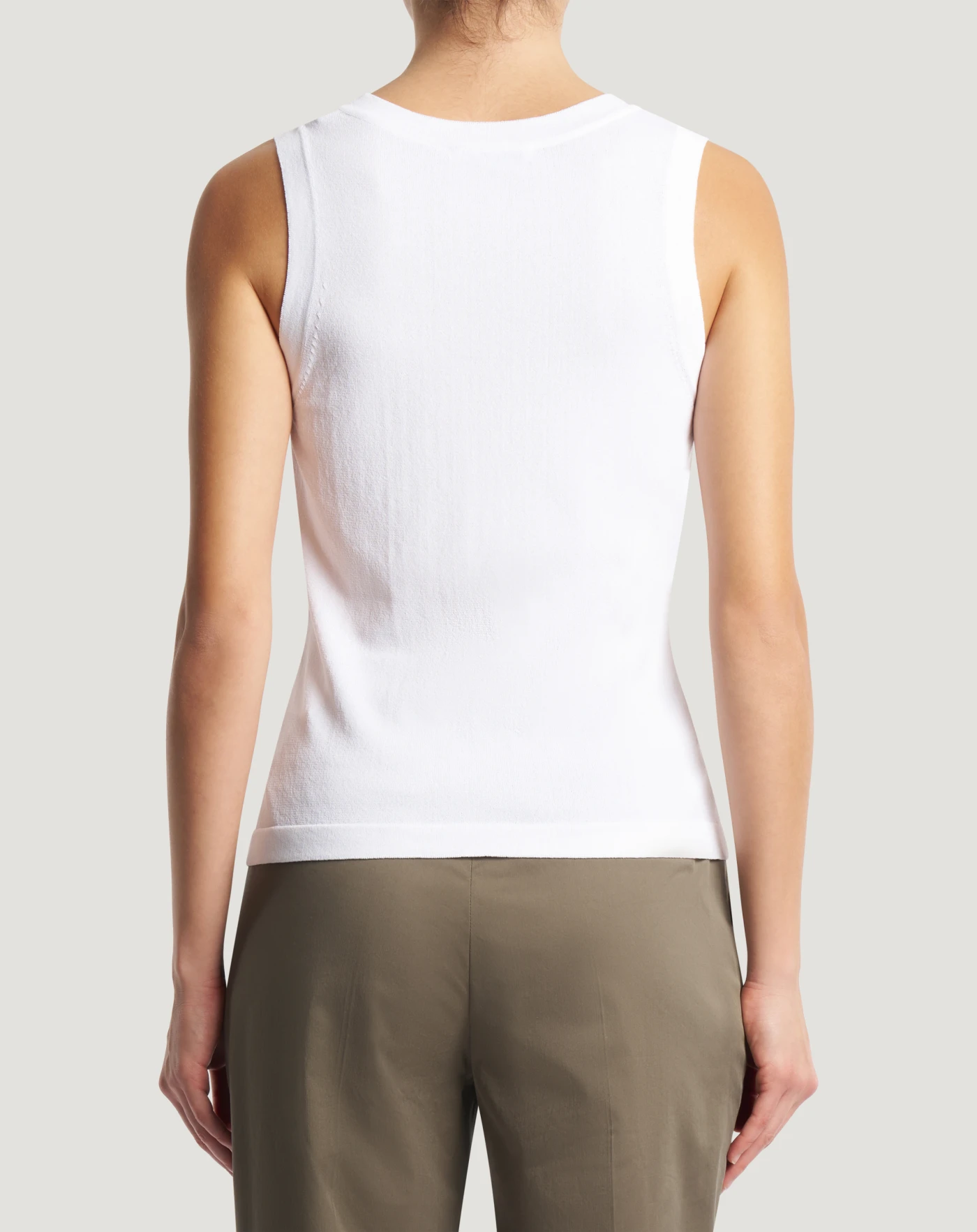 Top in filato di viscosa, caratterizzato da una mano particolarmente morbida e da un’elevata elasticità naturale. Da indossare in una miriade di look, da mattina a sera.