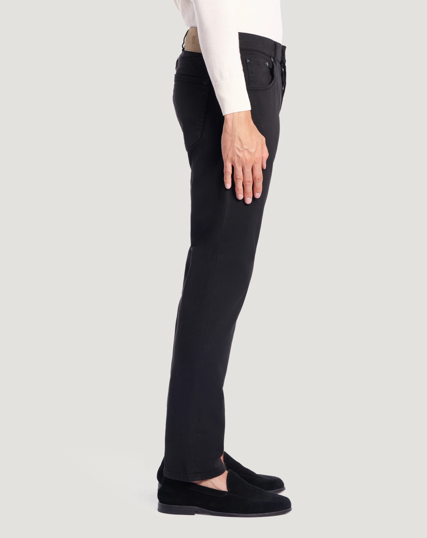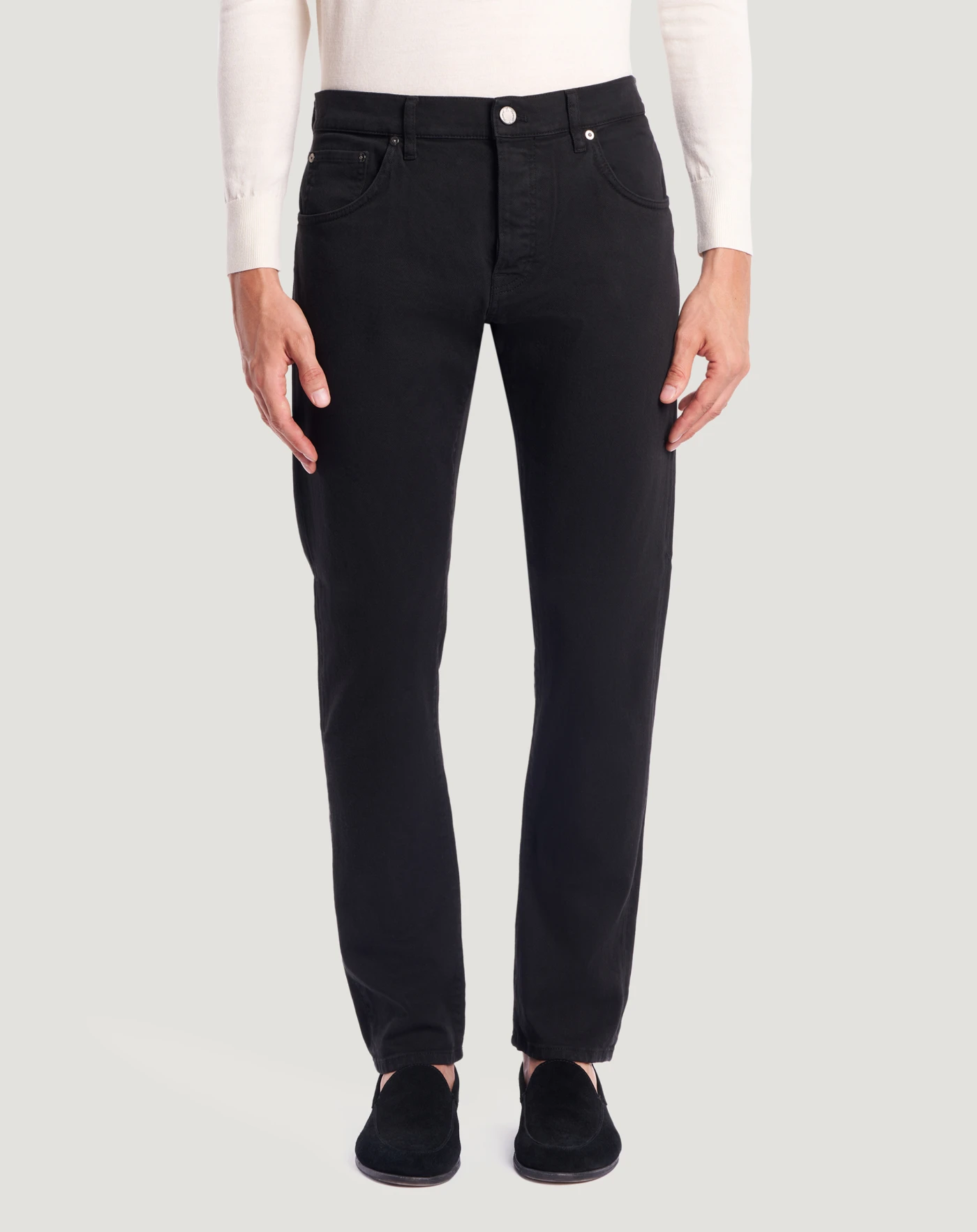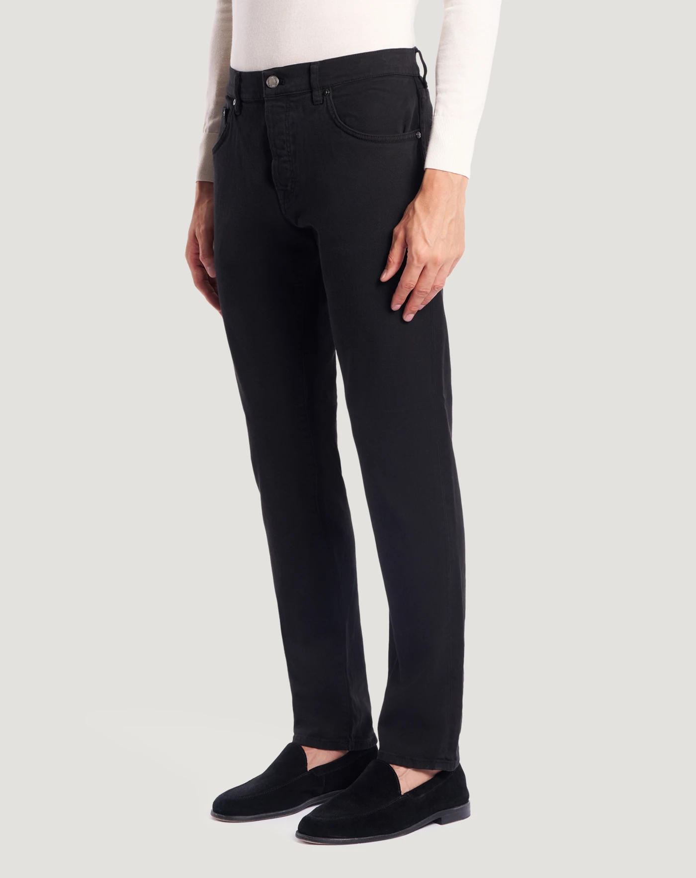 Jeans in superwhite stretch denim, a comfortable and durable fabric (12 oz ) with an even, elegant look.With five pockets and regular fit, they are a versatile base also for special occasions.
