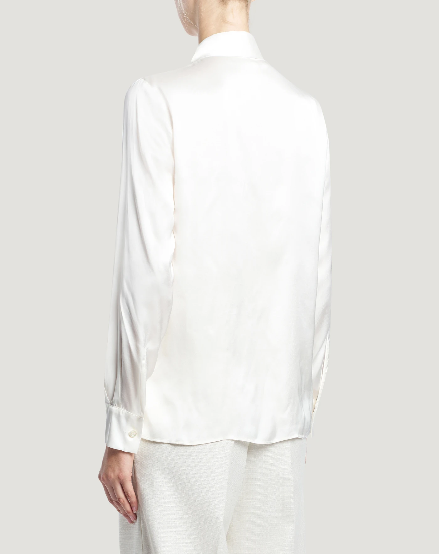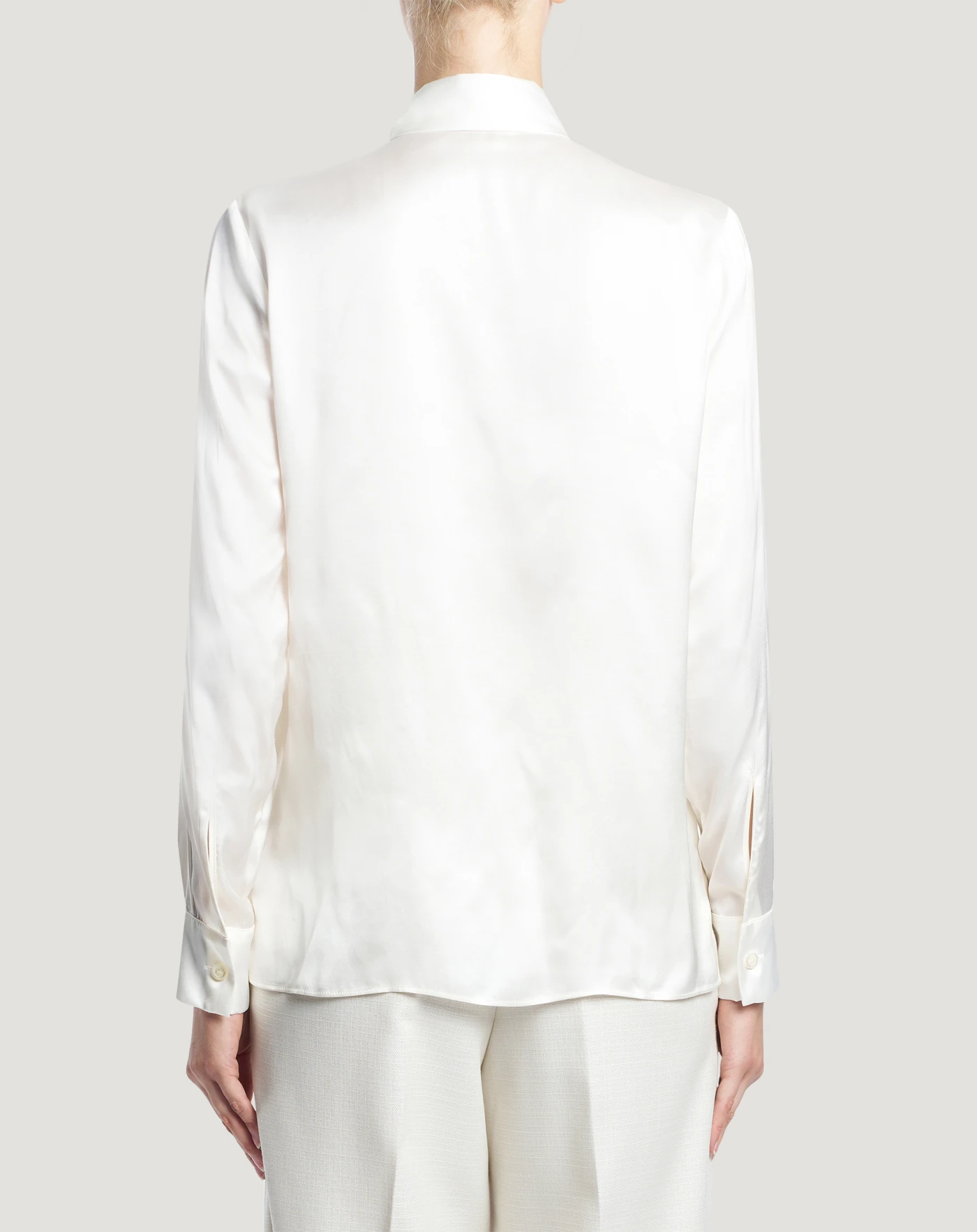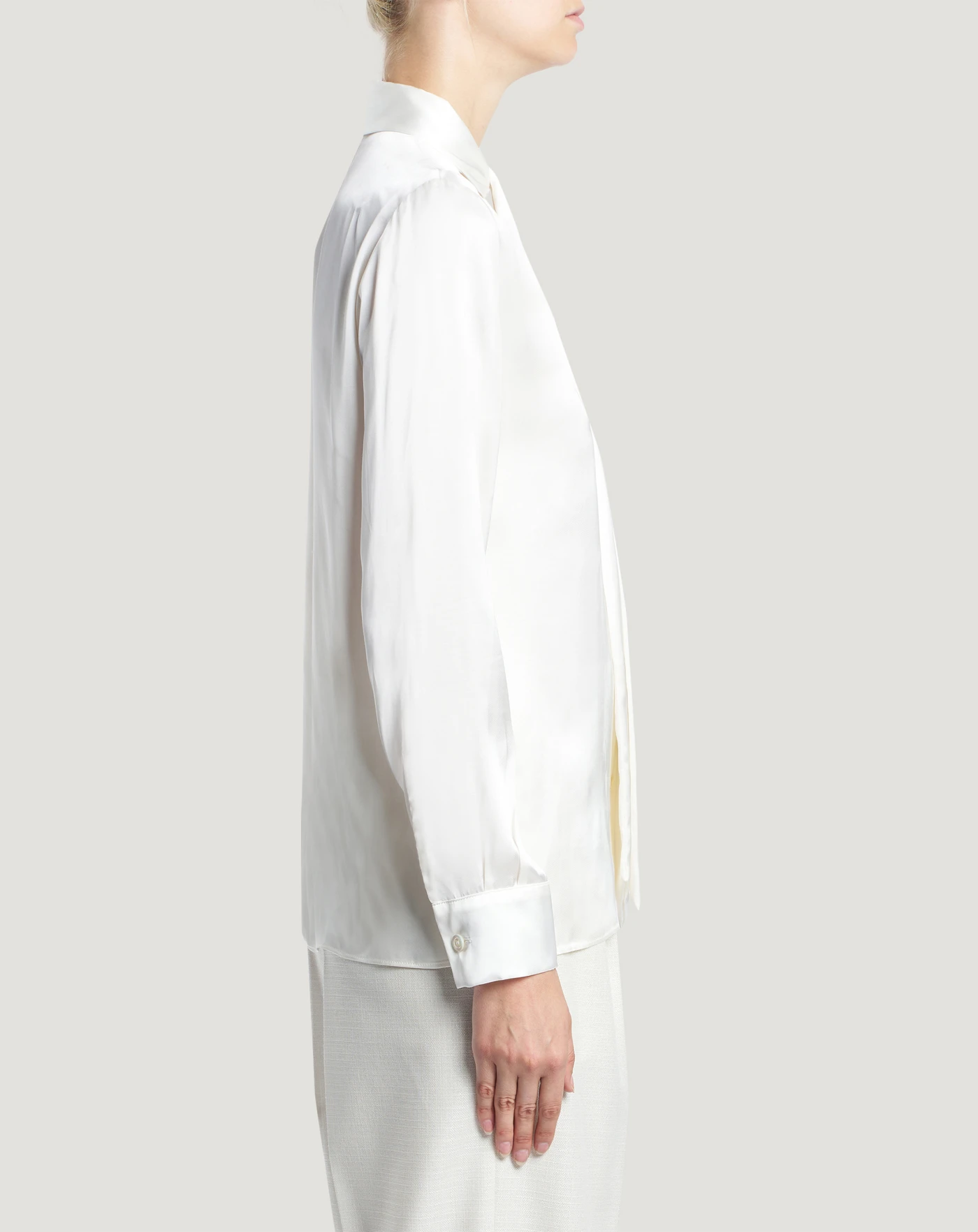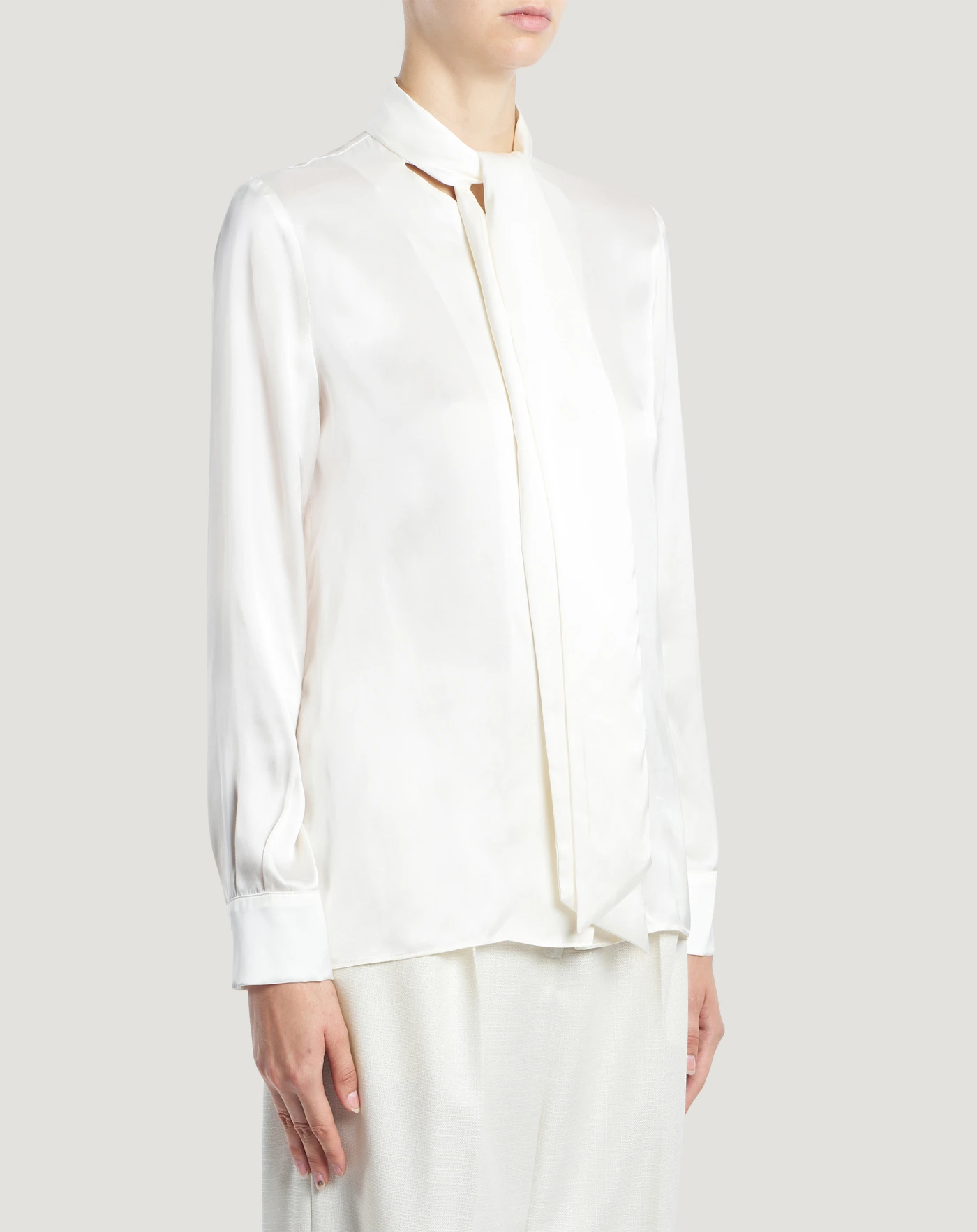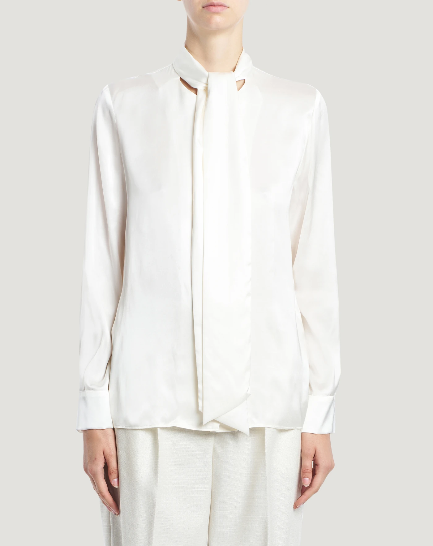 Blouse in super-light viscose satin, a bright and refined fabric that is comfortable to wear.With a straight fit, front opening and sash, in creamy white it adds a touch of light to every look.