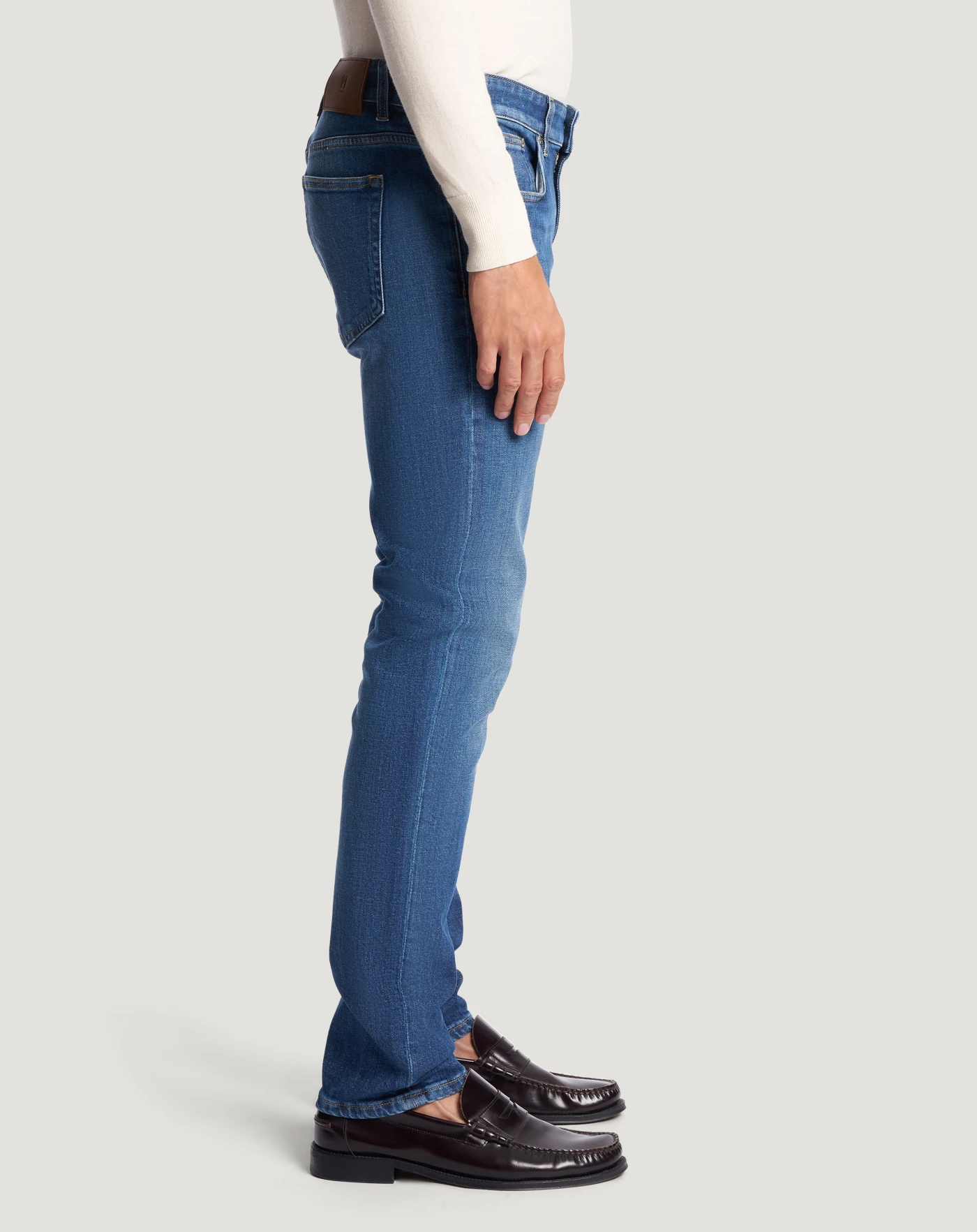 Jeans in sustainable stretch organic cotton denim, a soft, lightweight fabric (10.5 oz) that is pleasant to wear; the light wash features whiskering and localised fading.With five pockets, a low waist and slim fit, they have a versatile, everyday look.