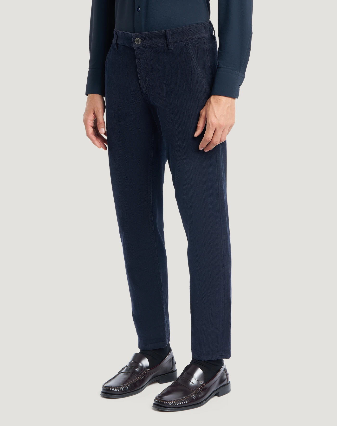 Trousers in stretch cotton needlecord that is comfortable, warm and perfect for the season. With a tapered fit and regular waist, choose the navy variant as a versatile base in your wardrobe.