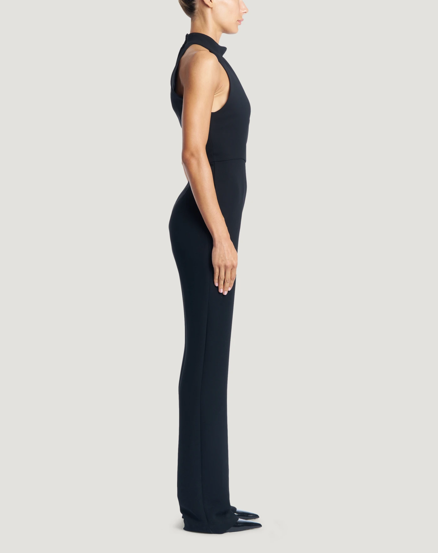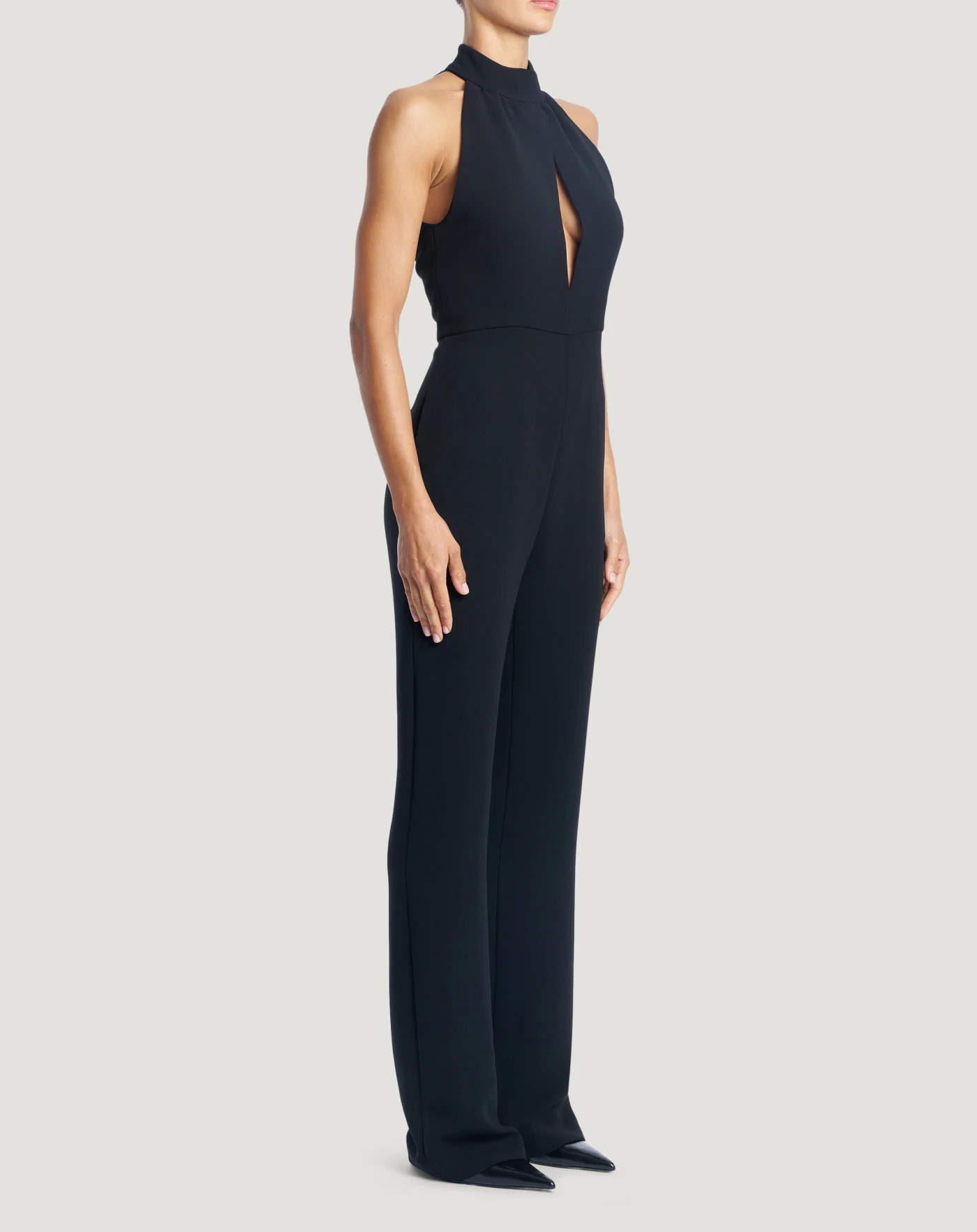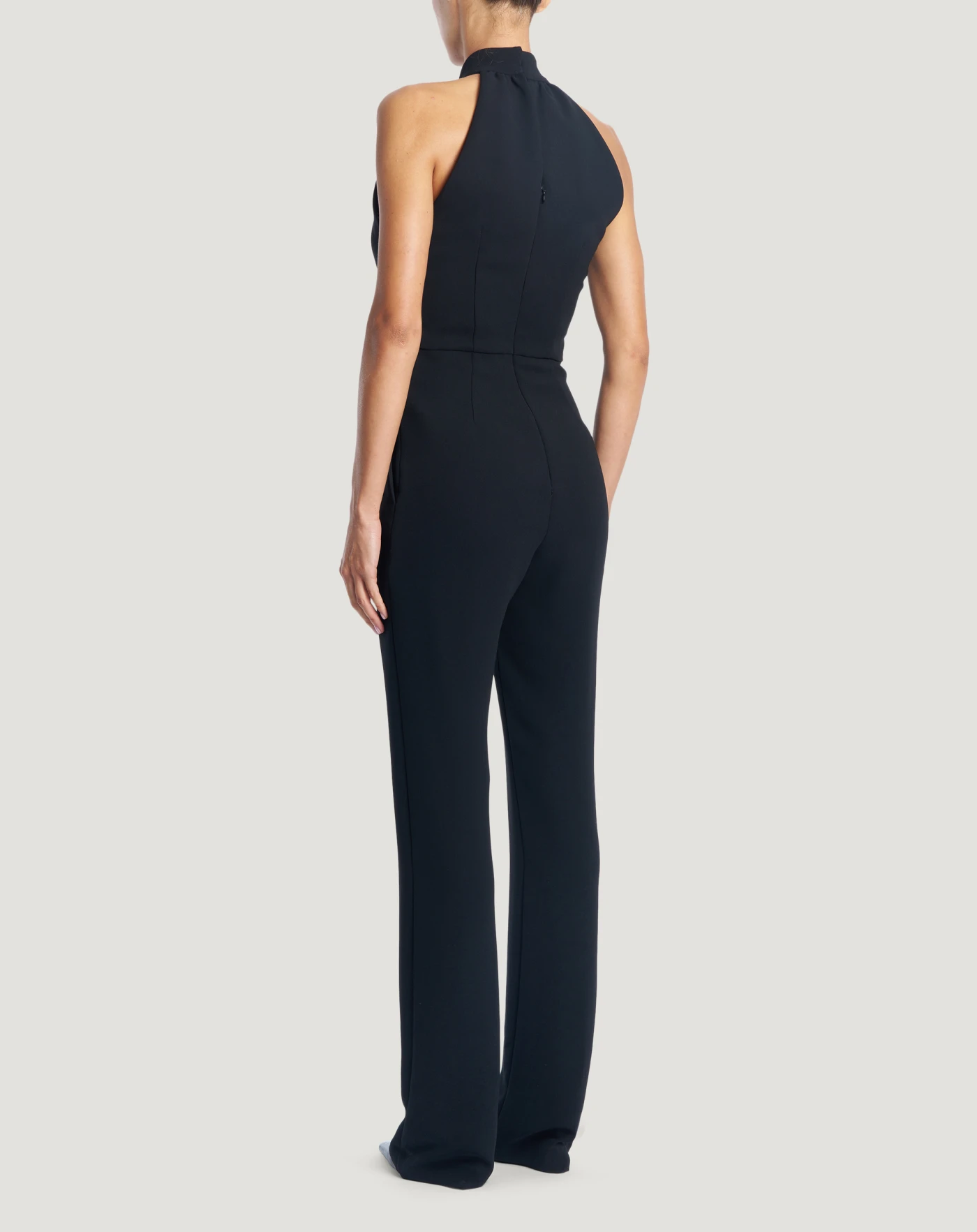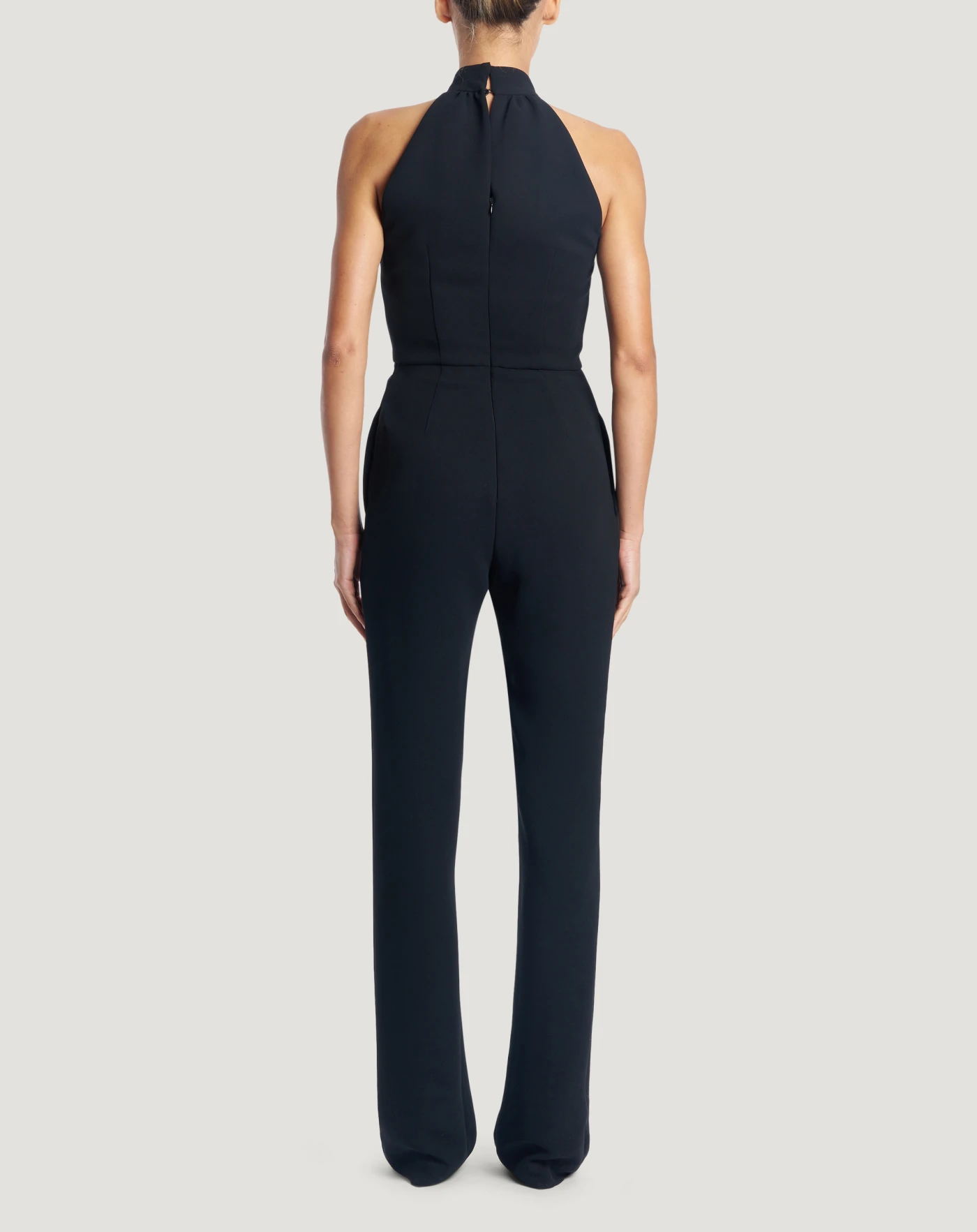 Jumpsuit in Japanese cady, a fabric with a soft, textured hand and a matt look, with excellent fit.With a halter neckline and straight-leg trousers, it will be a great alternative to an evening dress.