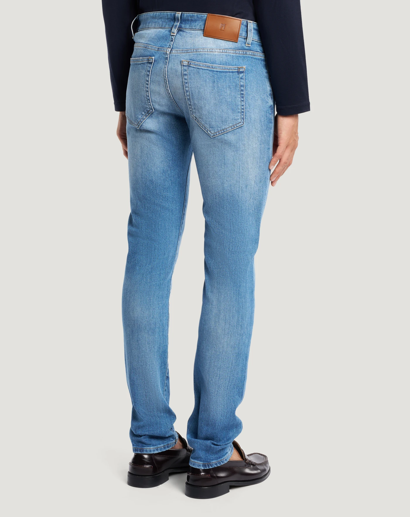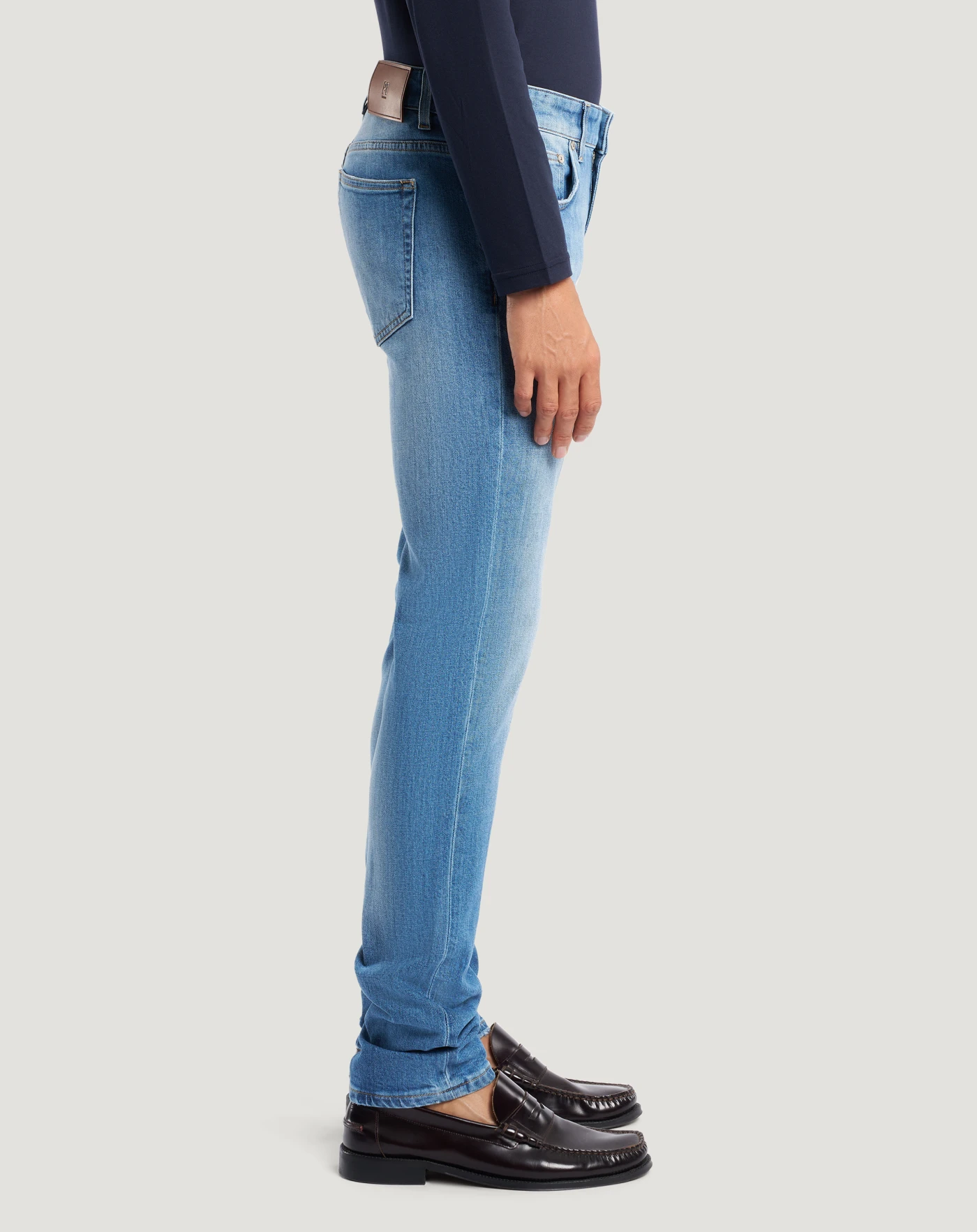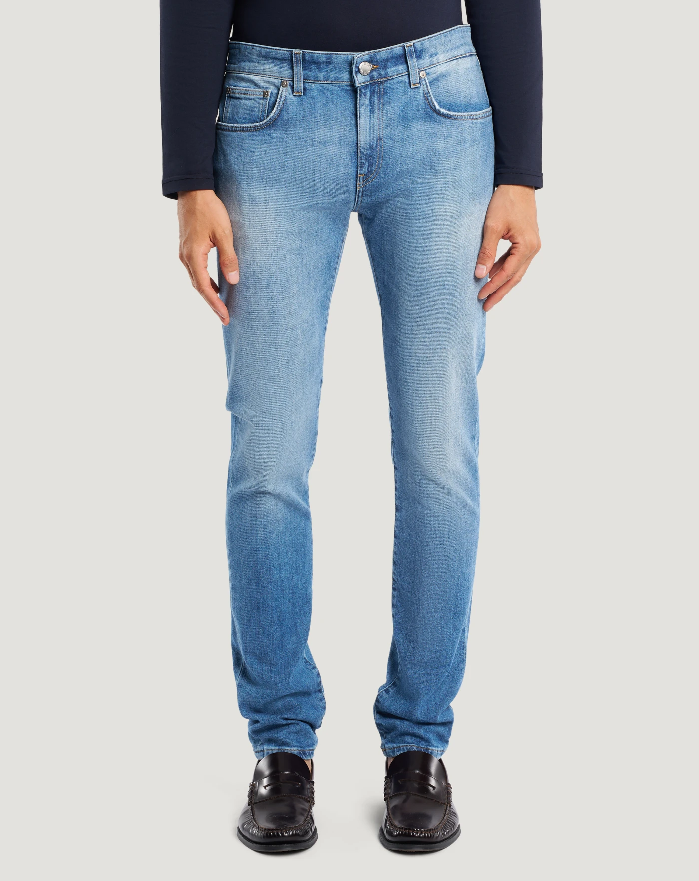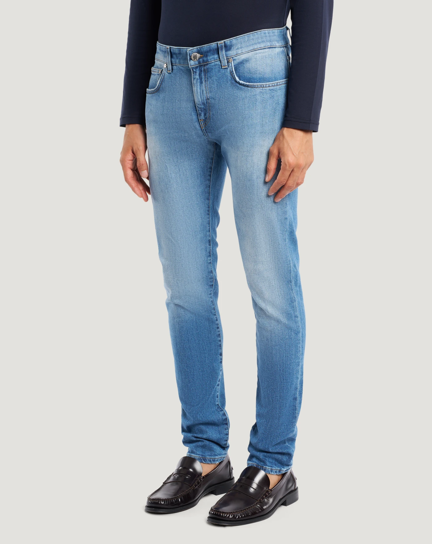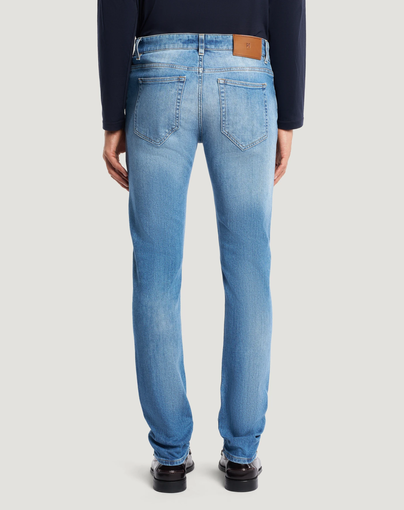 Jeans in sustainable stretch cotton denim, a soft, lightweight fabric (10.5 oz) that is pleasant to wear; the light wash features localised fading.With five pockets, low waist and slim fit, they are perfect for adding personality to your leisurewear looks.
