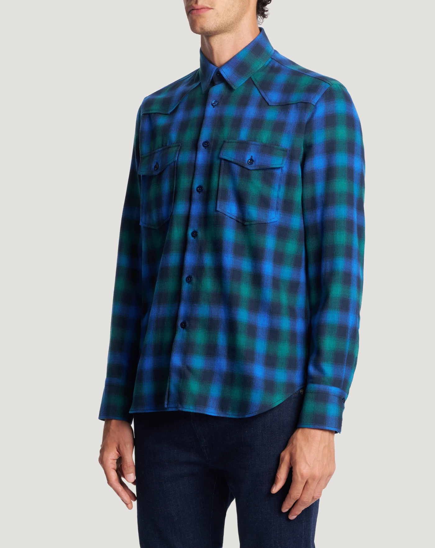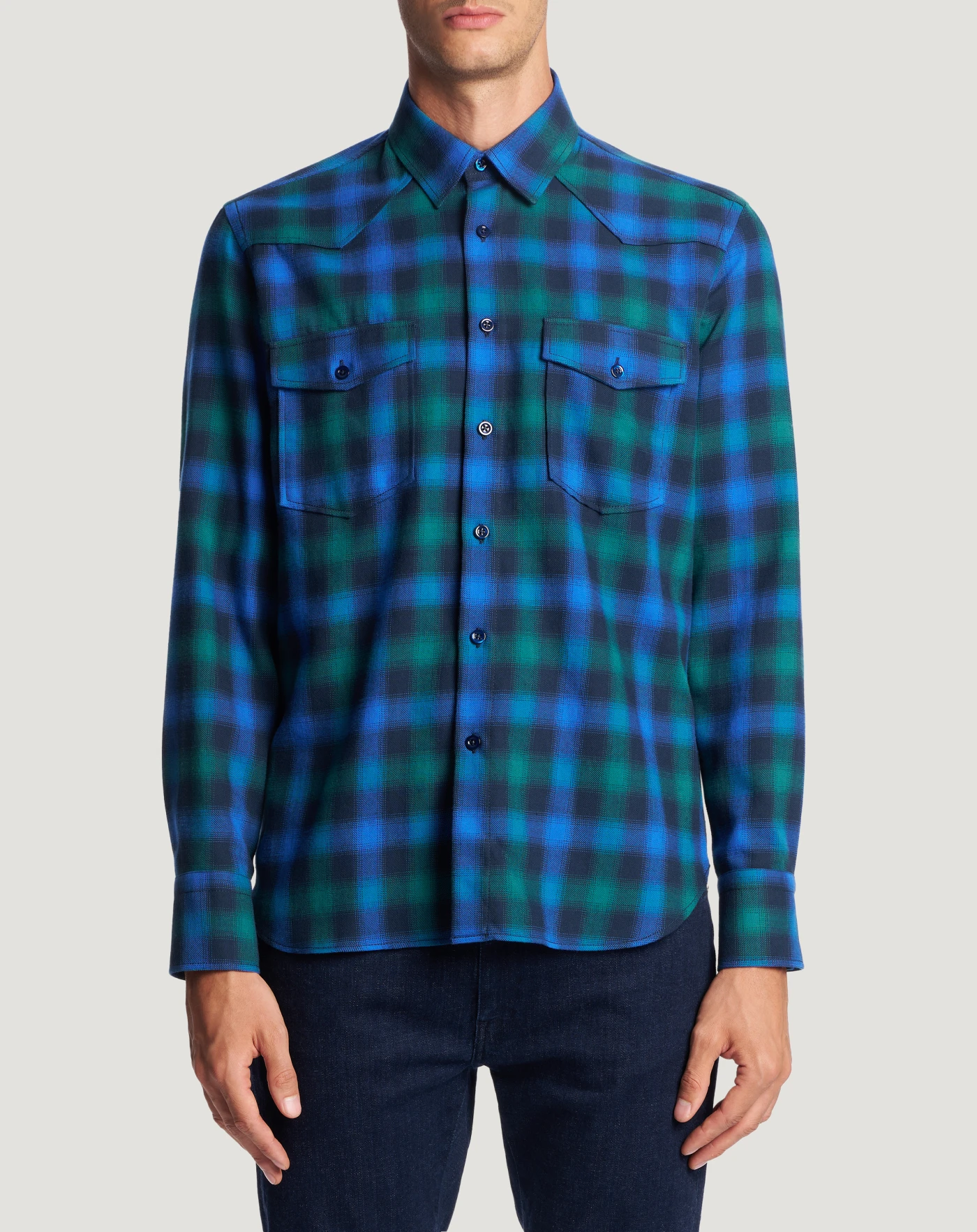Shirt in pure Madras cotton, a lightweight fabric featuring irregularly woven coloured yarn to create the typical checked patterns with handcrafted effect.Western design and regular fit that instantly adds character to your style.