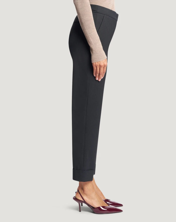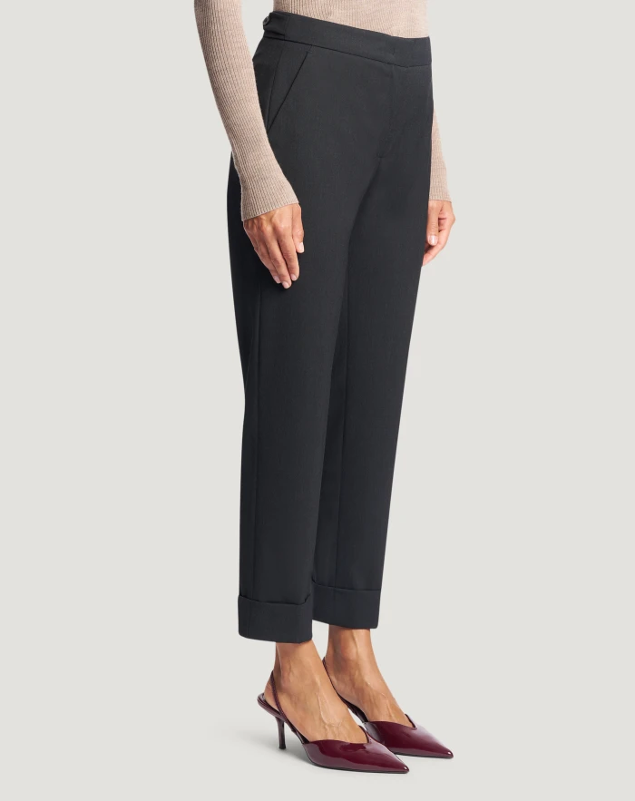Trousers in washable bi-stretch techno wool, a warm, durable and easy-care fabric.Featuring a tailored line with a flat front, slim fit, low waist and turned-up cuff. Choose the lead grey variant to complete formal and office looks.