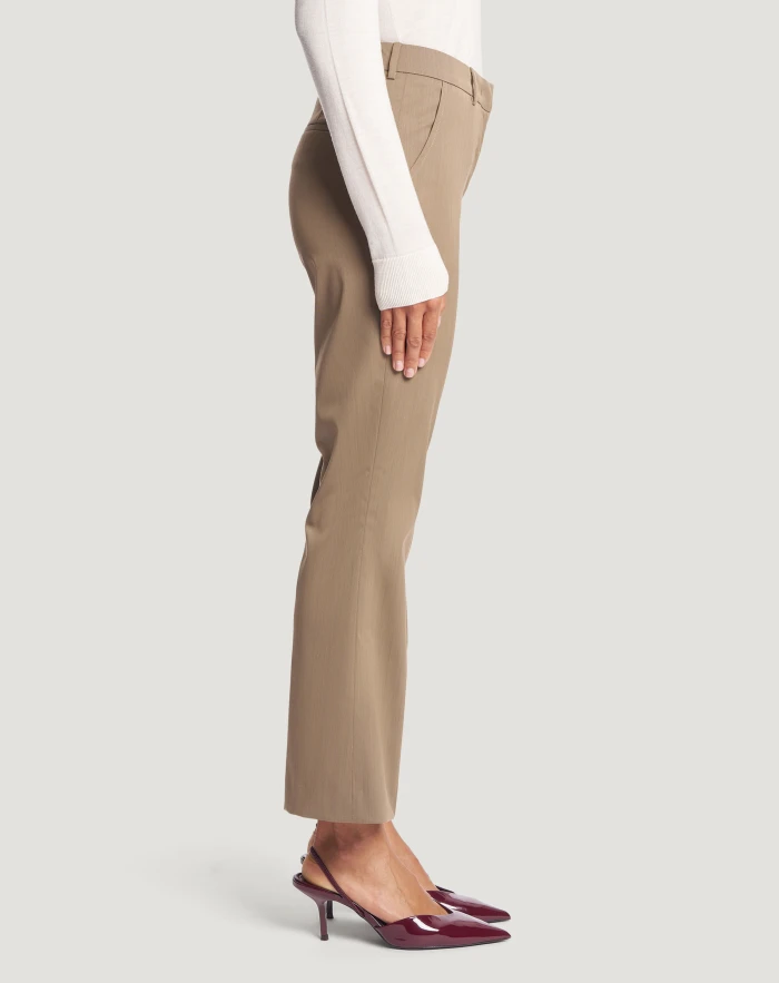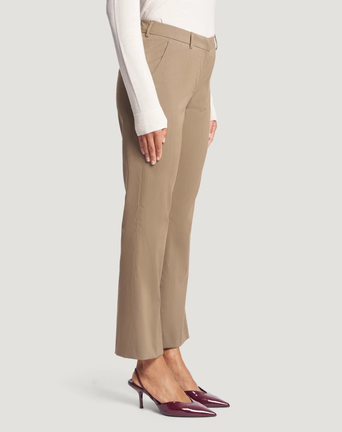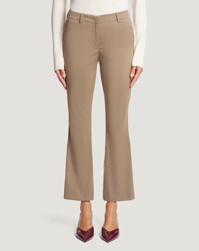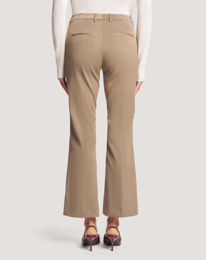 Trousers in super-light active wool twill, a fabric with a technical, refined look that is perfect for everyday wear.With a flared fit and ankle length, choose the camel brown variant for unique formal looks.