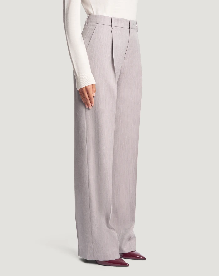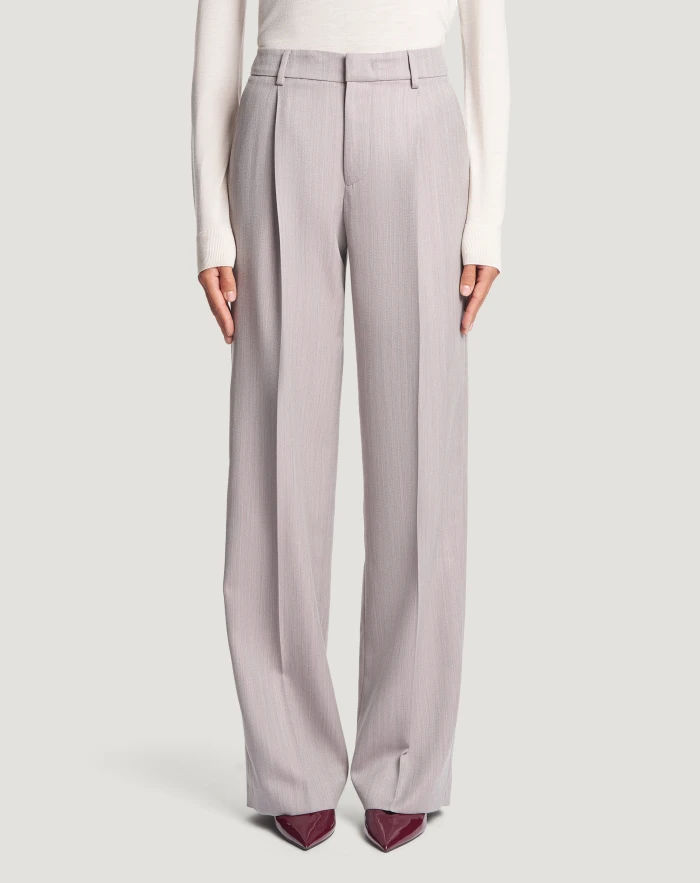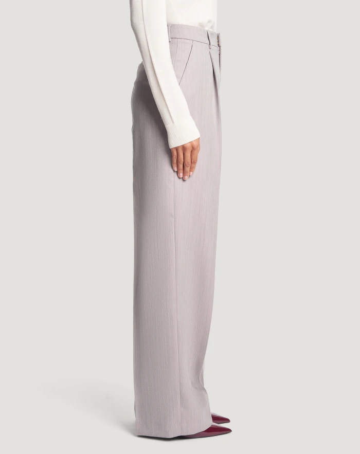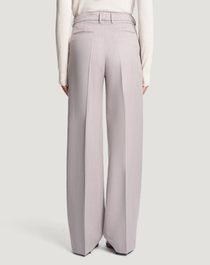 Trousers in pure wool with a malfilé effect, a soft comfortable fabric with a knit finish.With a regular fit, wide cut and front pleat, they are perfect for a special occasion, also paired with the matching jacket.