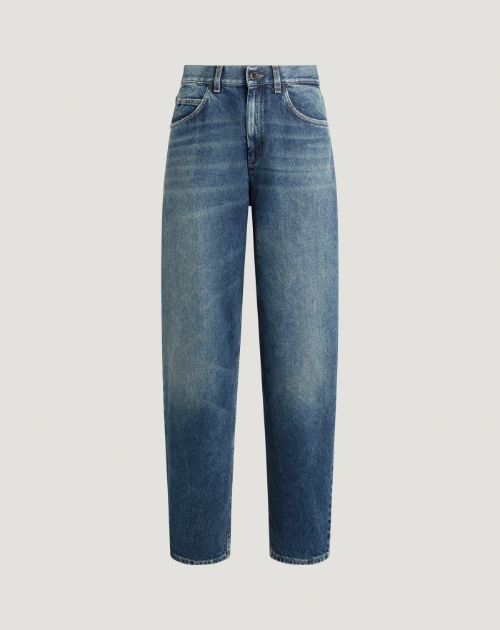 Jeans in cotton denim, a firm fabric featuring a wash with localised whiskering and fading.With a high waist and carrot fit, they will instantly add character to all your city outfits.