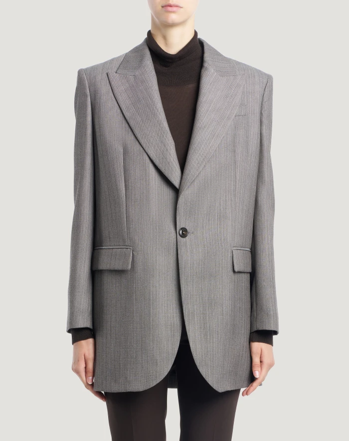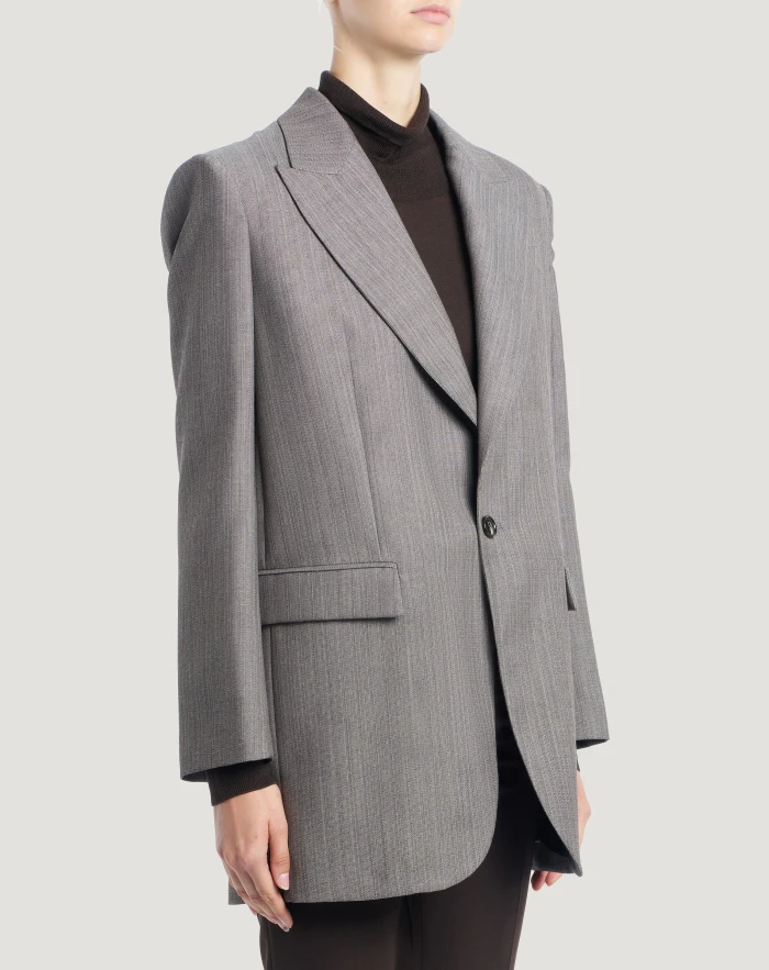 Blazer in pure wool fabric with panama weave for a uniform look.Featuring an oversized fit and single-breasted closure for a design that instantly updates your style. Pair it with the matching trousers.