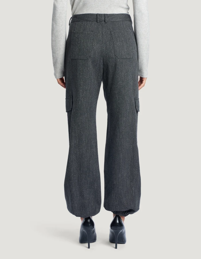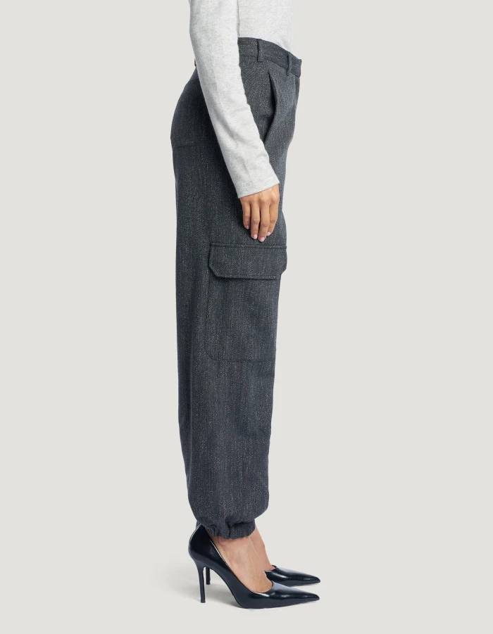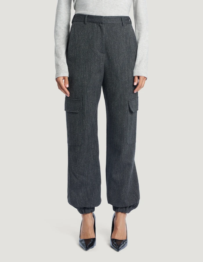 Trousers in herringbone wool and viscose, for an elegant, tailored look.Featuring a cargo design, regular fit, side pockets and elasticated hem. A trendy model reinterpreted in sartorial key.