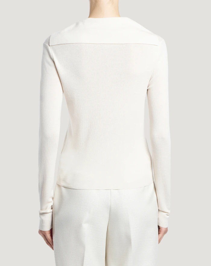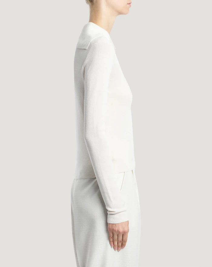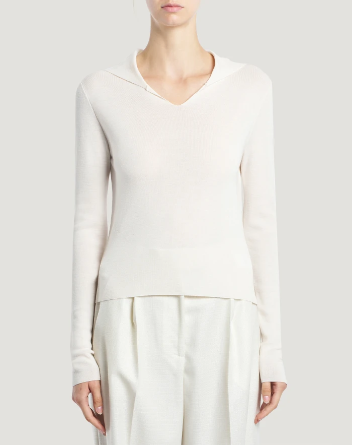 Jumper in pure extra-fine wool with stocking-stitch finish and fineness 18, which makes the garment lightweight and very comfortable.With a regular fit and polo neck, its trendy design makes it perfect to wear with classic or five-pocket trousers.