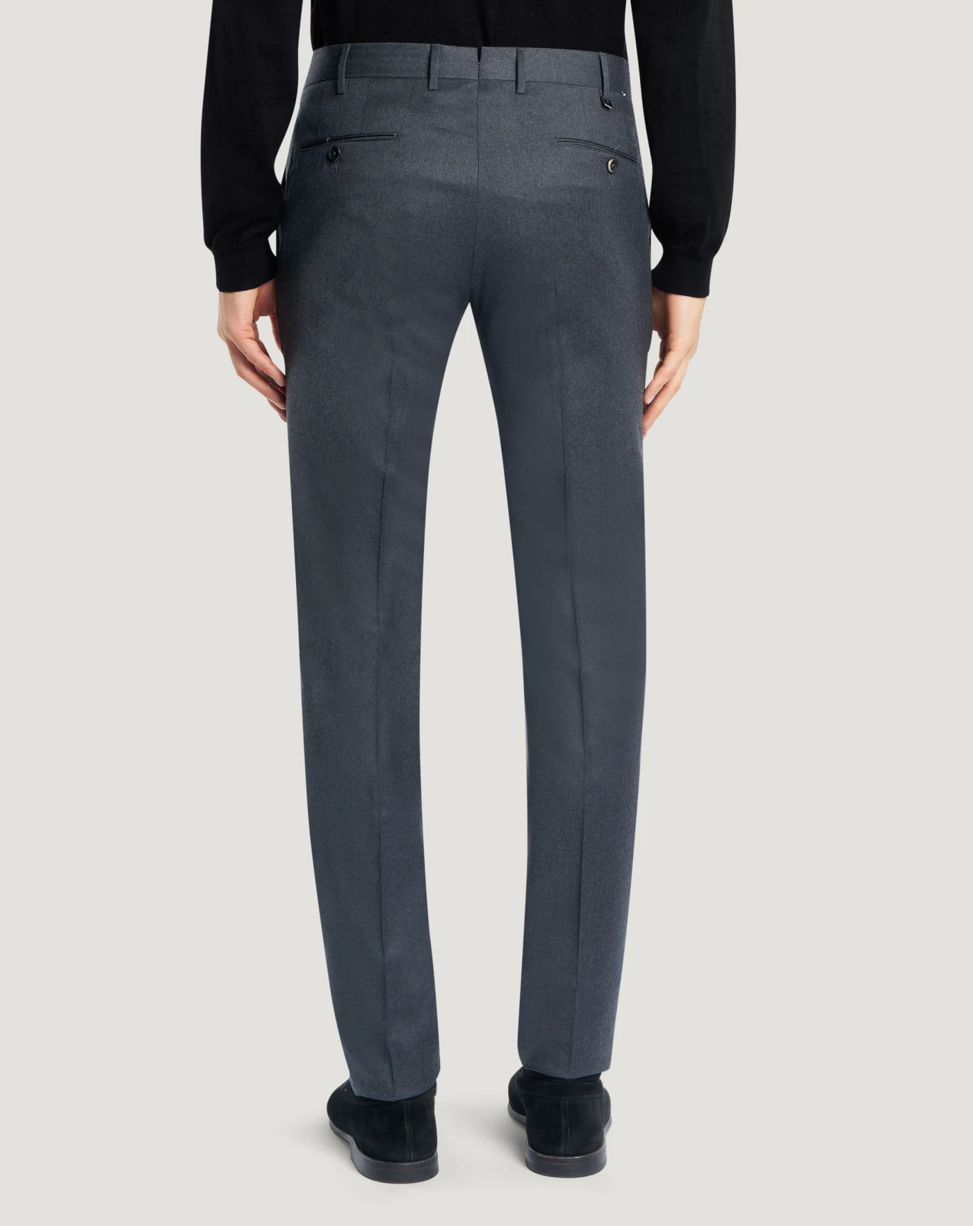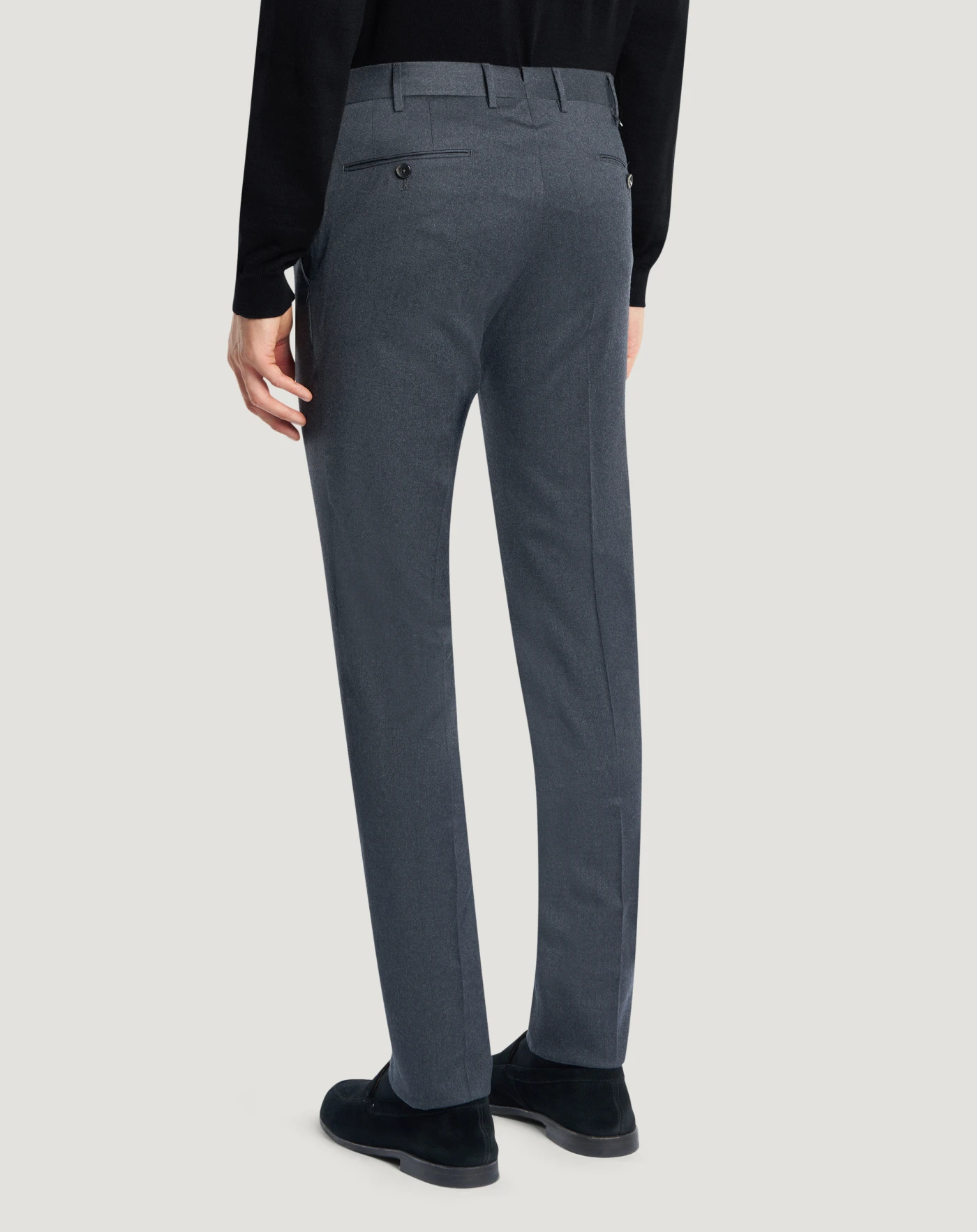 Flannel trousers in lightweight, Super 110 wool with a soft and refined hand. Added stretchiness makes it comfortable and flexible, perfect for tailored garments with a formal yet contemporary style.The garment is delivered unstitched, so that it can be finished to suit your length and style through simple tailoring.Choose the grey variant for refined elegance.