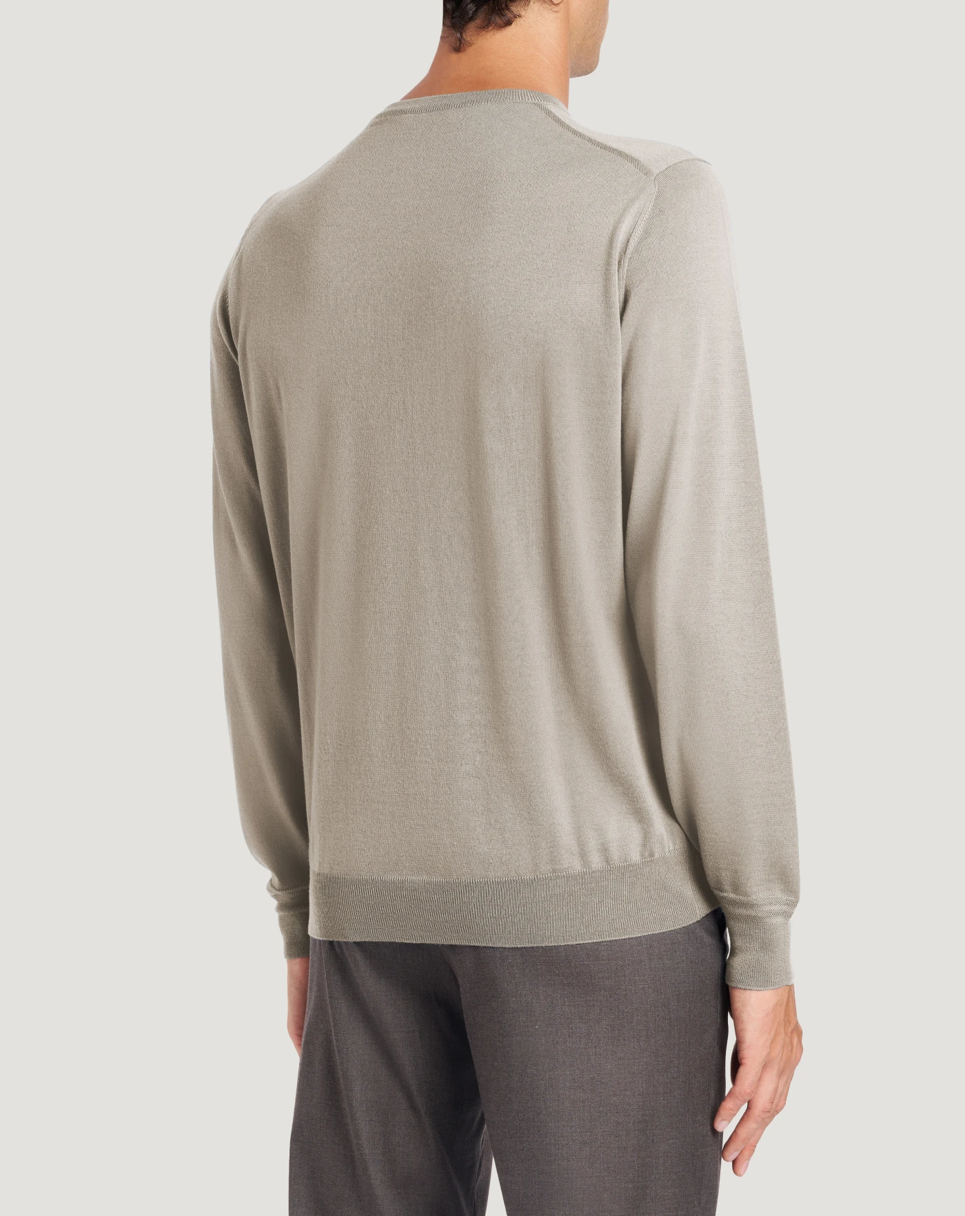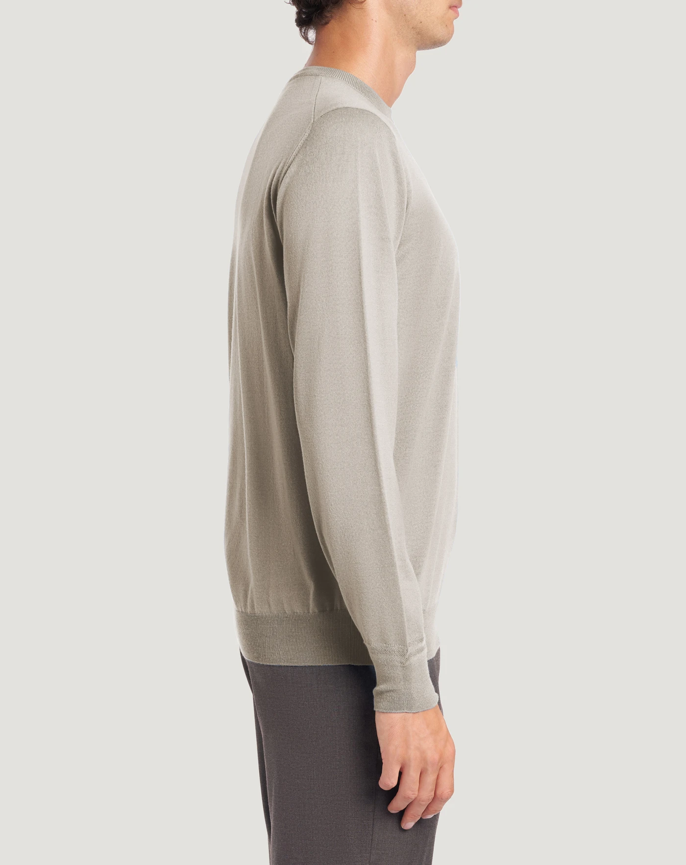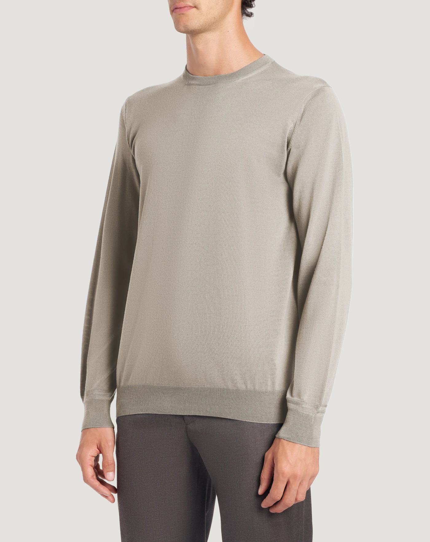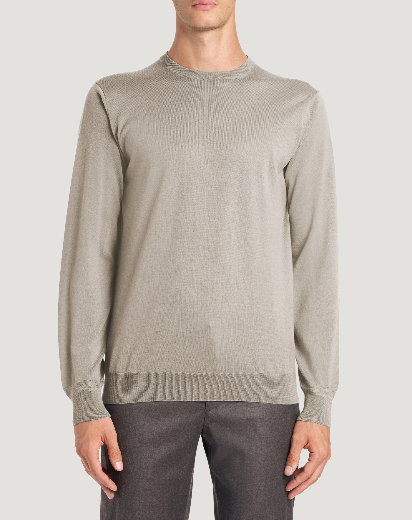 Stocking-stitch jumper in pure cotton fineness 16, which makes the garment lightweight and very comfortable.With a crew neck and slim fit, it features a versatile design that can be worn to complete formal and casual looks or under a jacket. Choose the cream variant for timeless elegance.