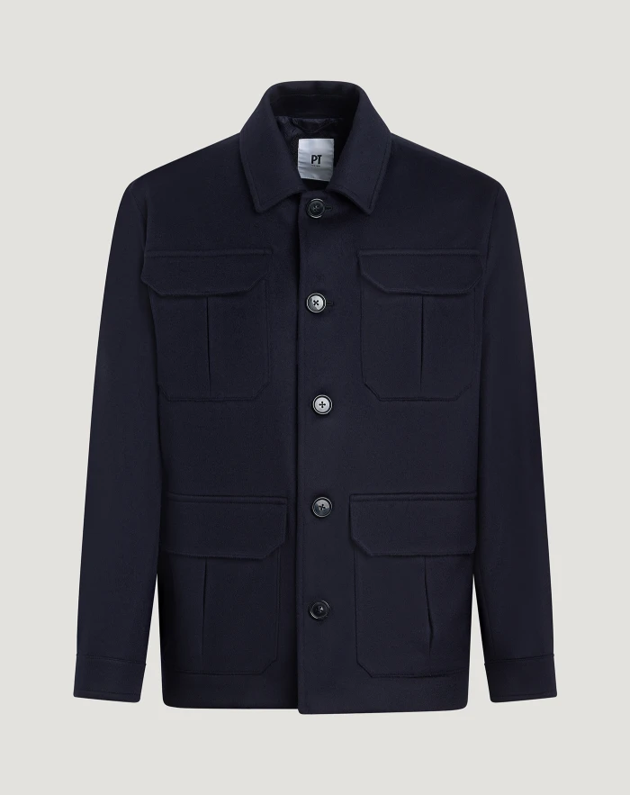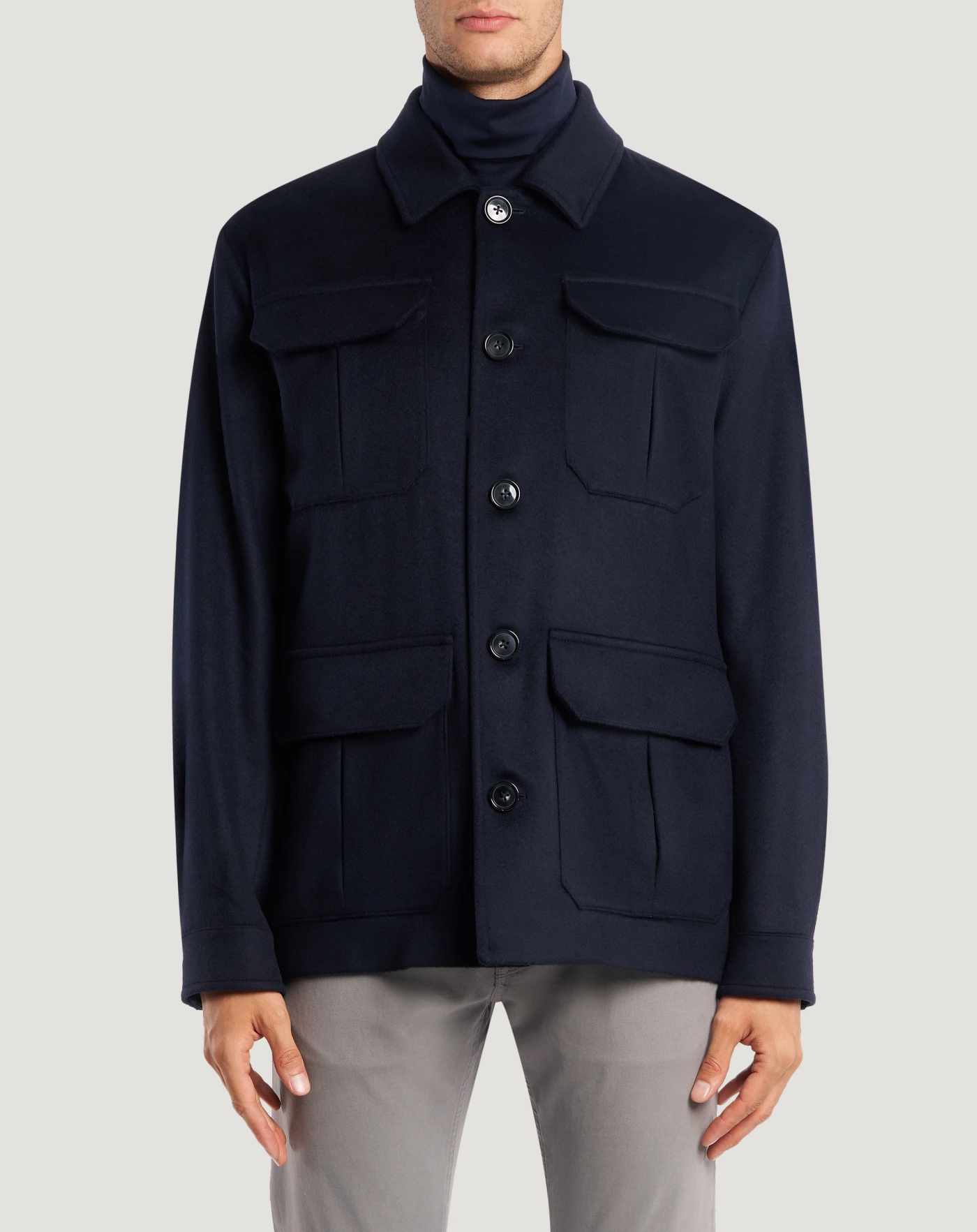 Explorer jacket in wool and cashmere drap, a fine, warm and comfortable fabric.The design features a comfortable fit and maxi pockets – choose the navy blue variant to add an elegant yet sporty touch to your style.