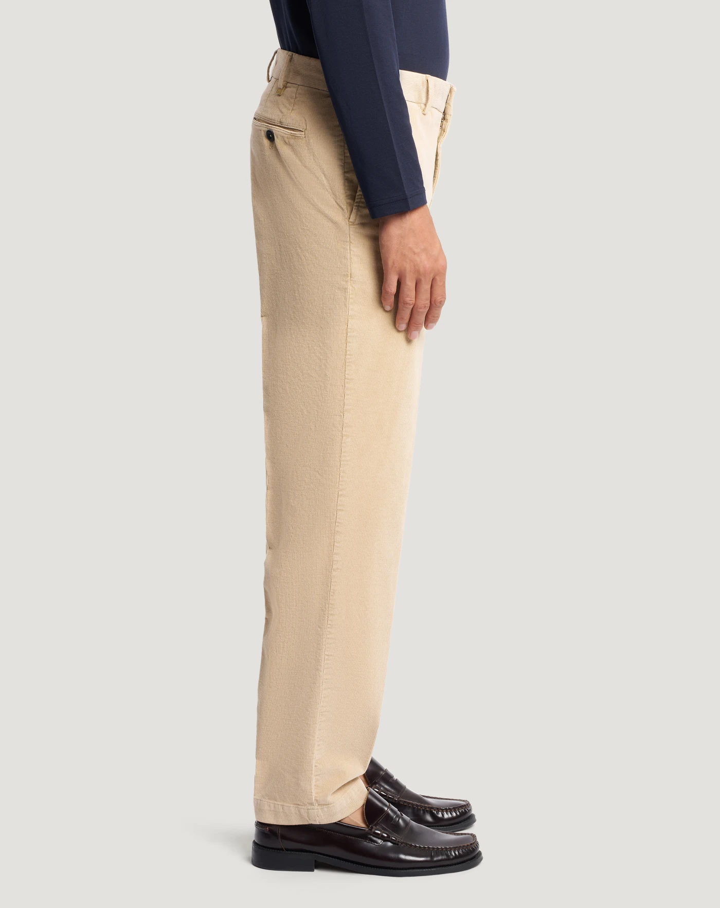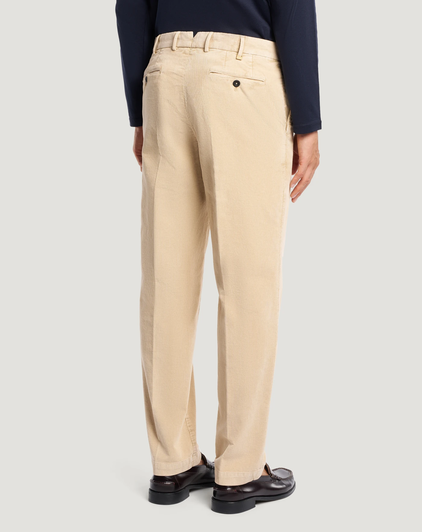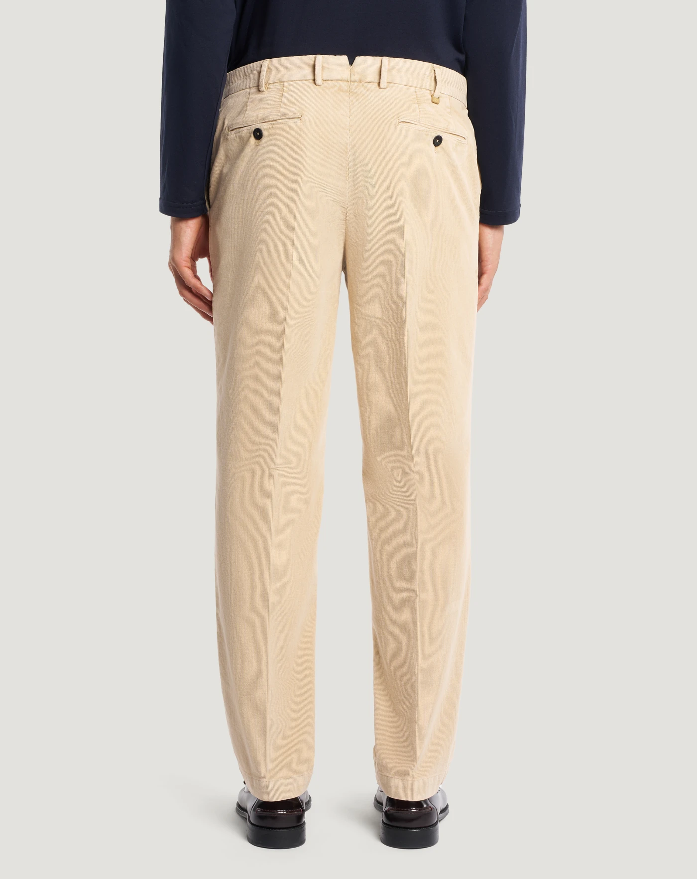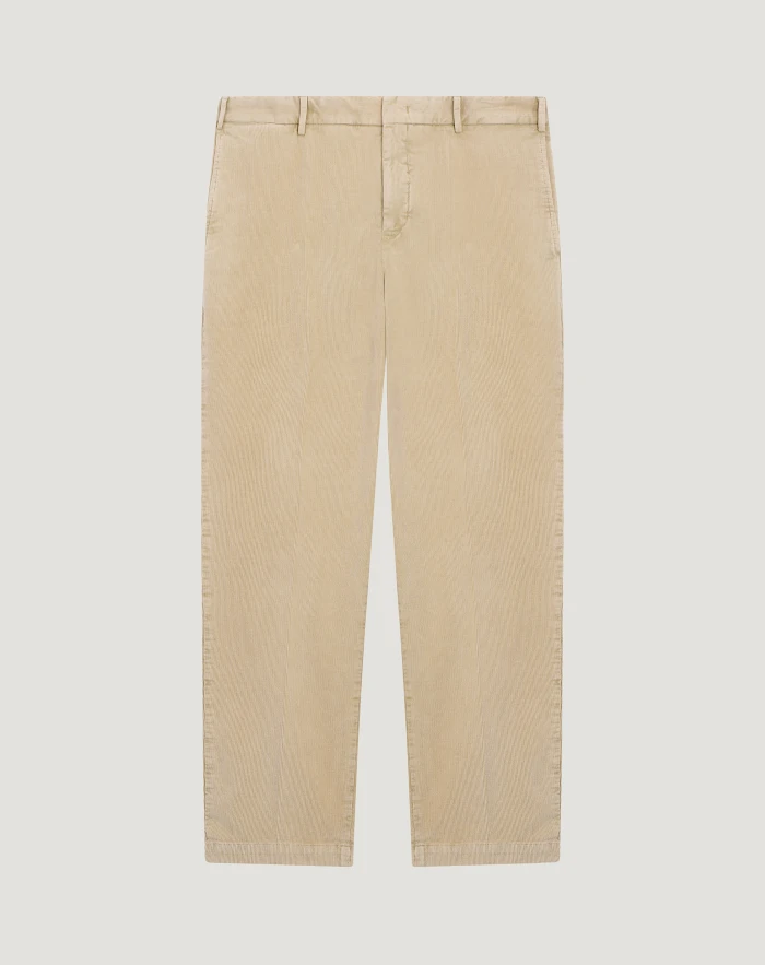Trousers in needlecord with a stretch component for a comfortable, fluid fit. With a carrot fit and pressed crease, they have a sophisticated, contemporary and urban look.