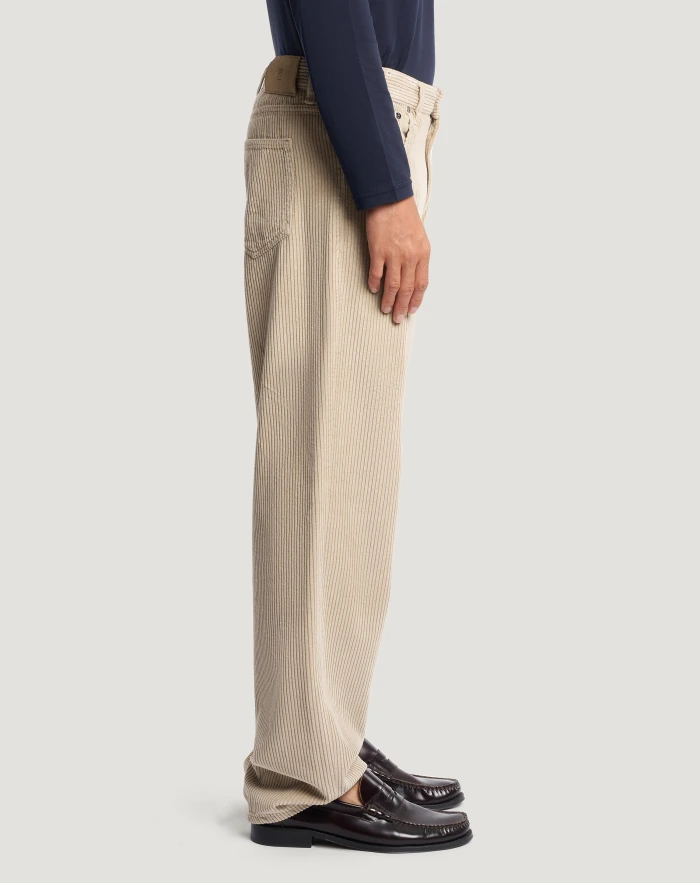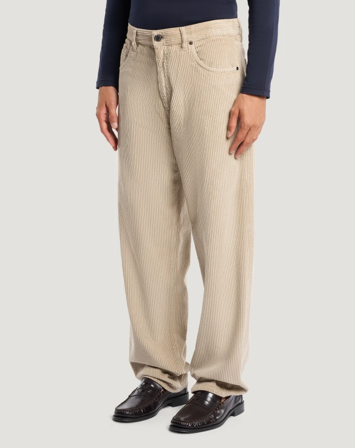Trousers in cotton velvet and modal, a soft fabric with a contemporary look.With a loose fit and five pockets, their contemporary appeal will enhance everyday looks. In the medium grey variant to complete your style with relaxed elegance.
