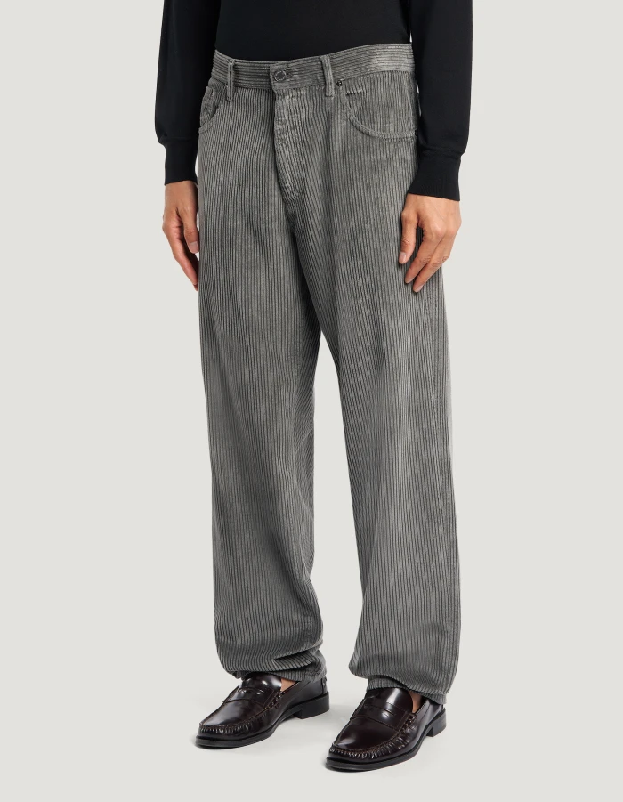 Trousers in cotton velvet and modal, a soft fabric with a contemporary look.With a loose fit and five pockets, their contemporary appeal will enhance everyday looks. In dark grey to give your outfits an edgy vibe.