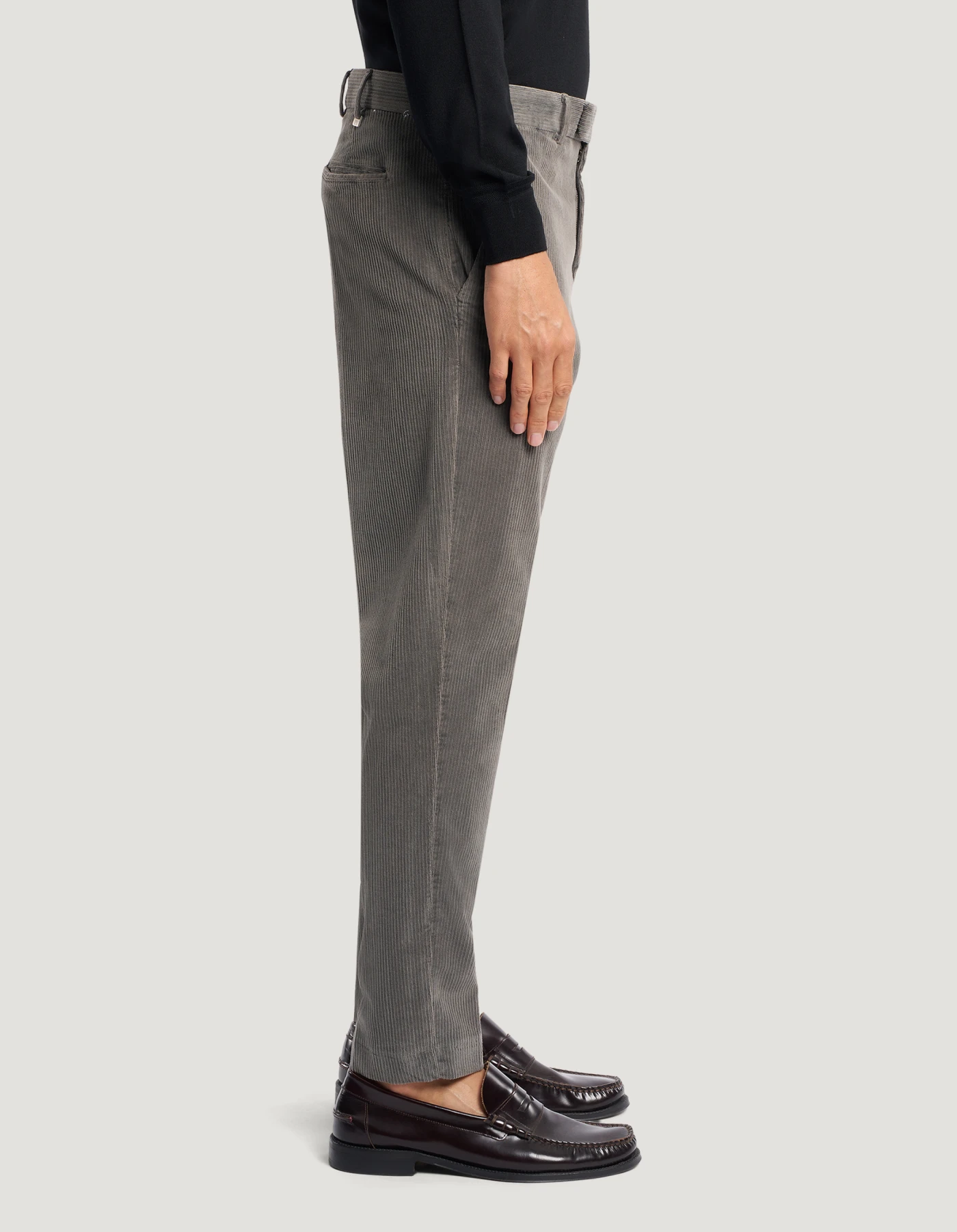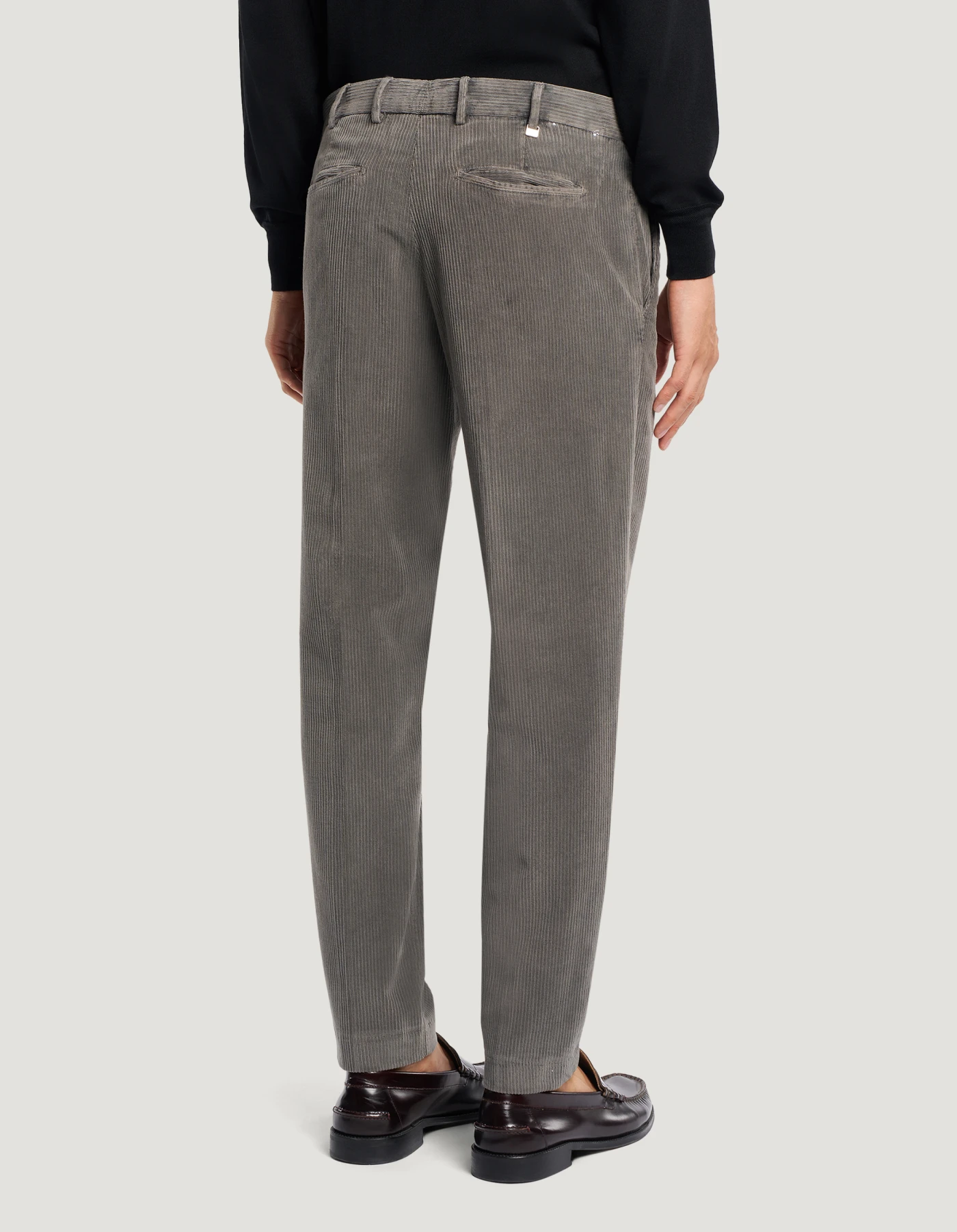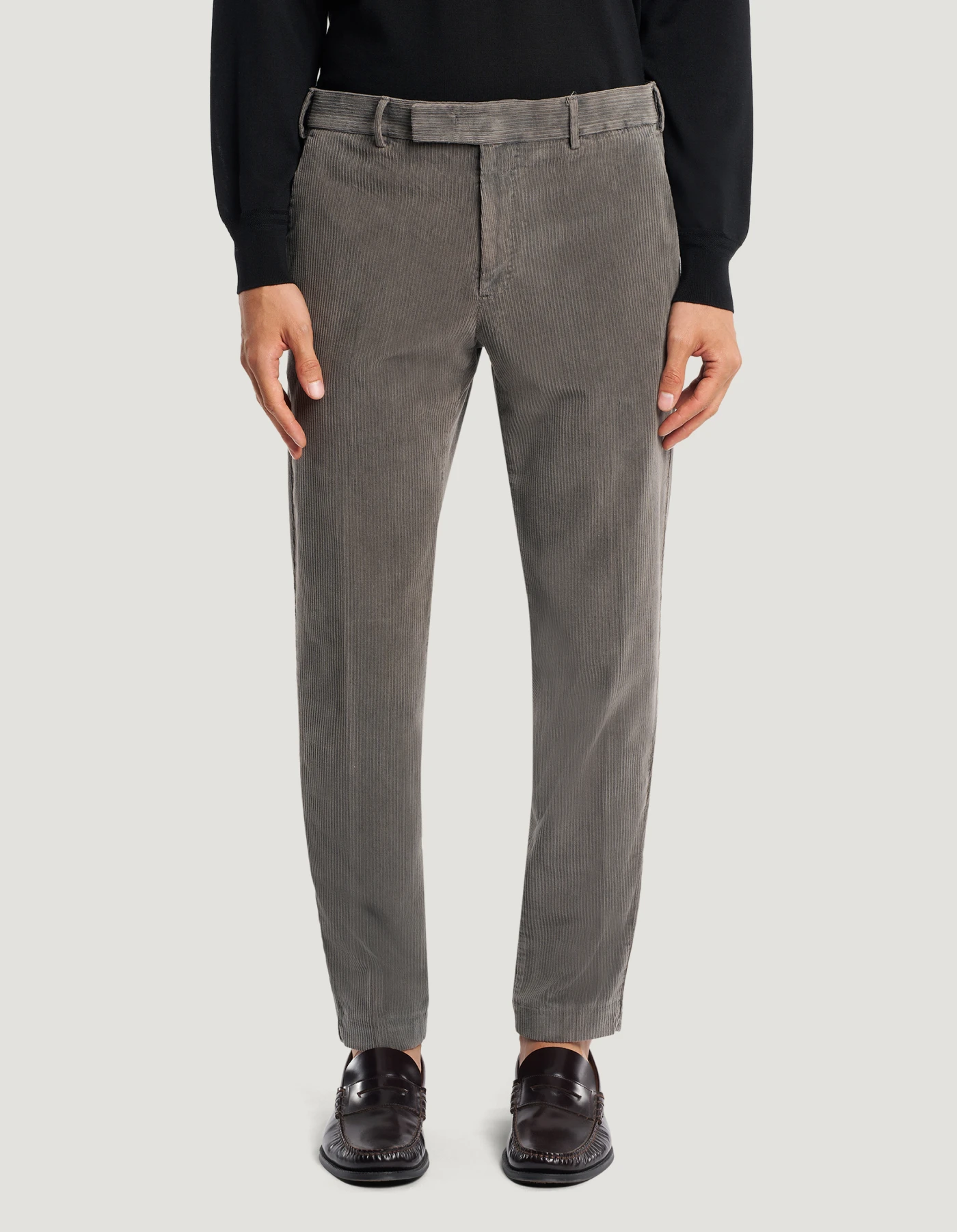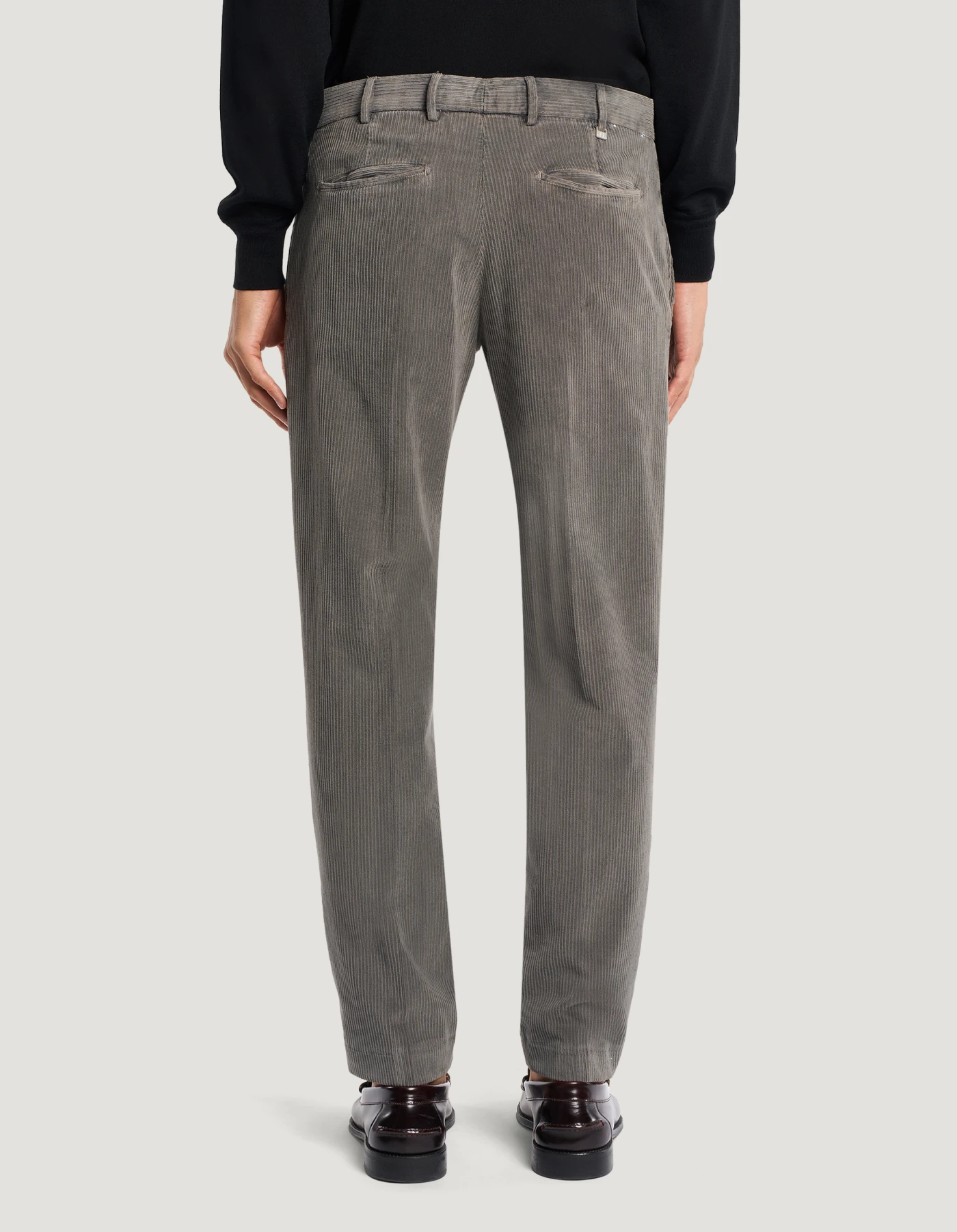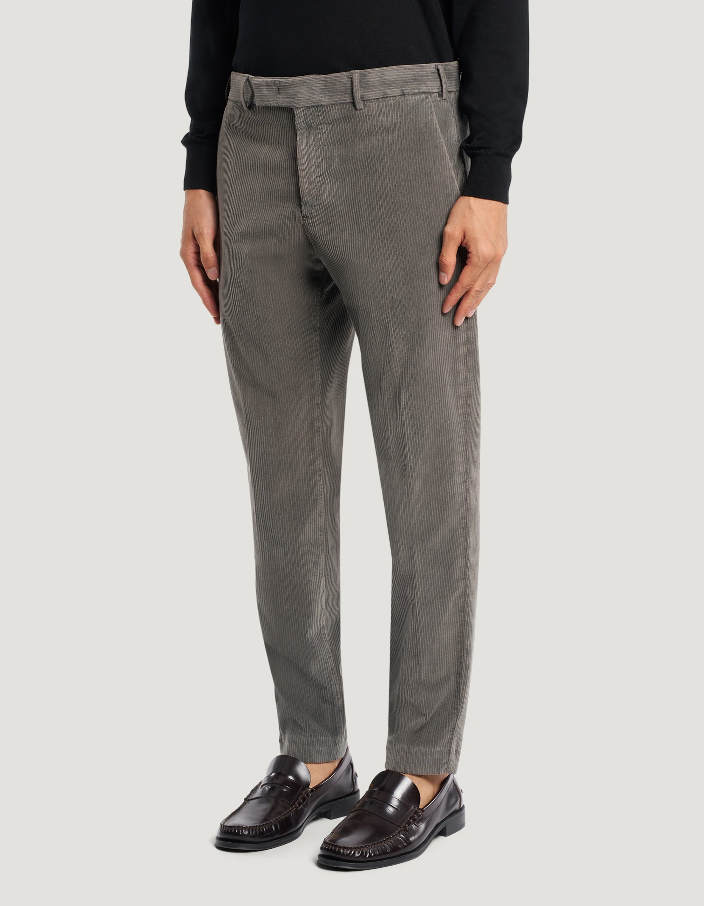 Trousers in délavé stretch cotton-blend velvet, a soft fabric with a contemporary look.With a smooth front and pressed crease, they feature a versatile tailored design that makes them perfect for work or to complete your everyday style. In the dark grey variant for formal and informal occasions.