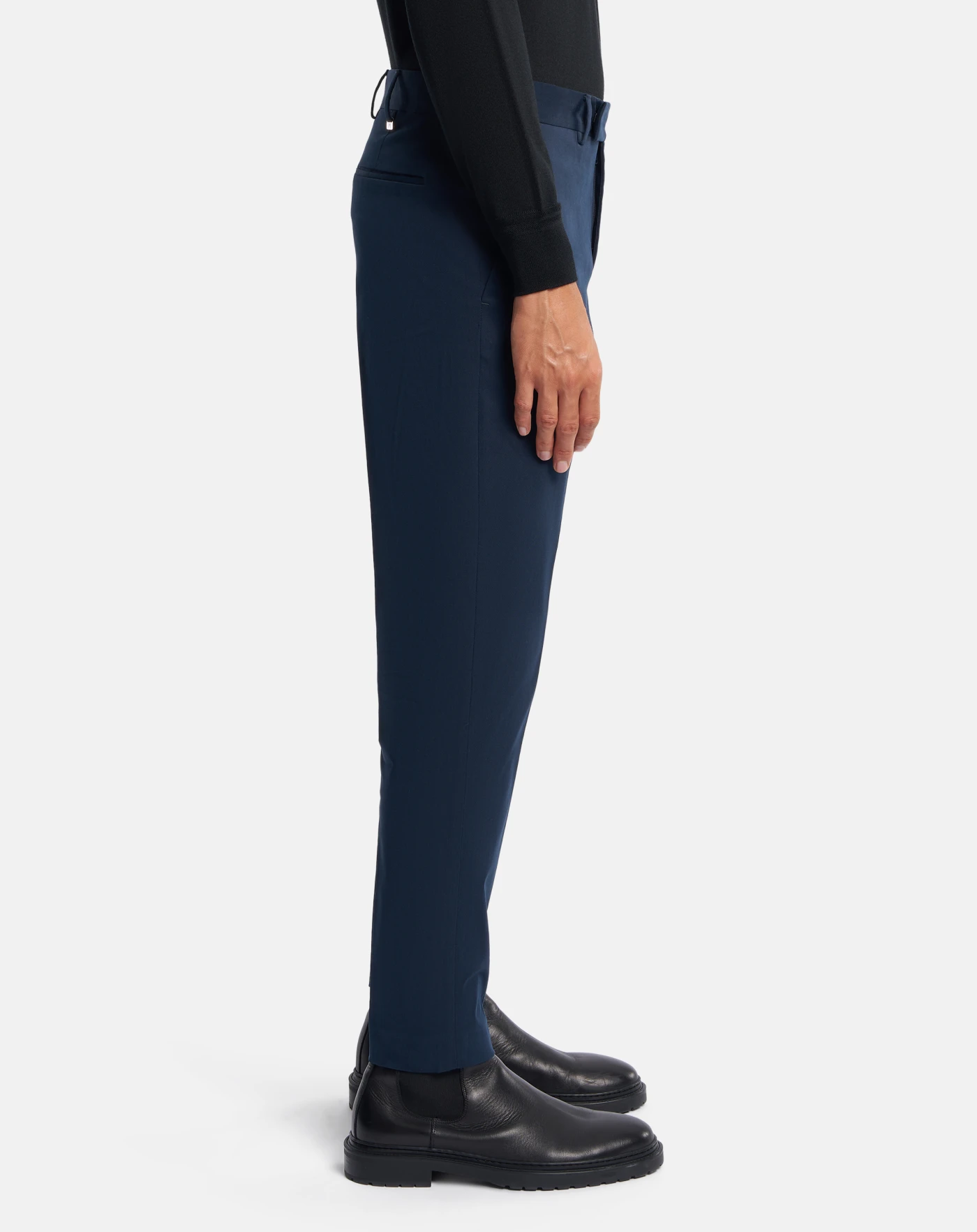 Trousers in stretch gabardine with a clean, minimal look featuring a tight diagonal weave. The elasticated component ensures comfort and freedom of movement, while the smooth, even surface adds a sophisticated and contemporary look.Featuring a relaxed tailored design, these ankle-length trousers with a smooth front are perfect to add a casual touch to your looks.