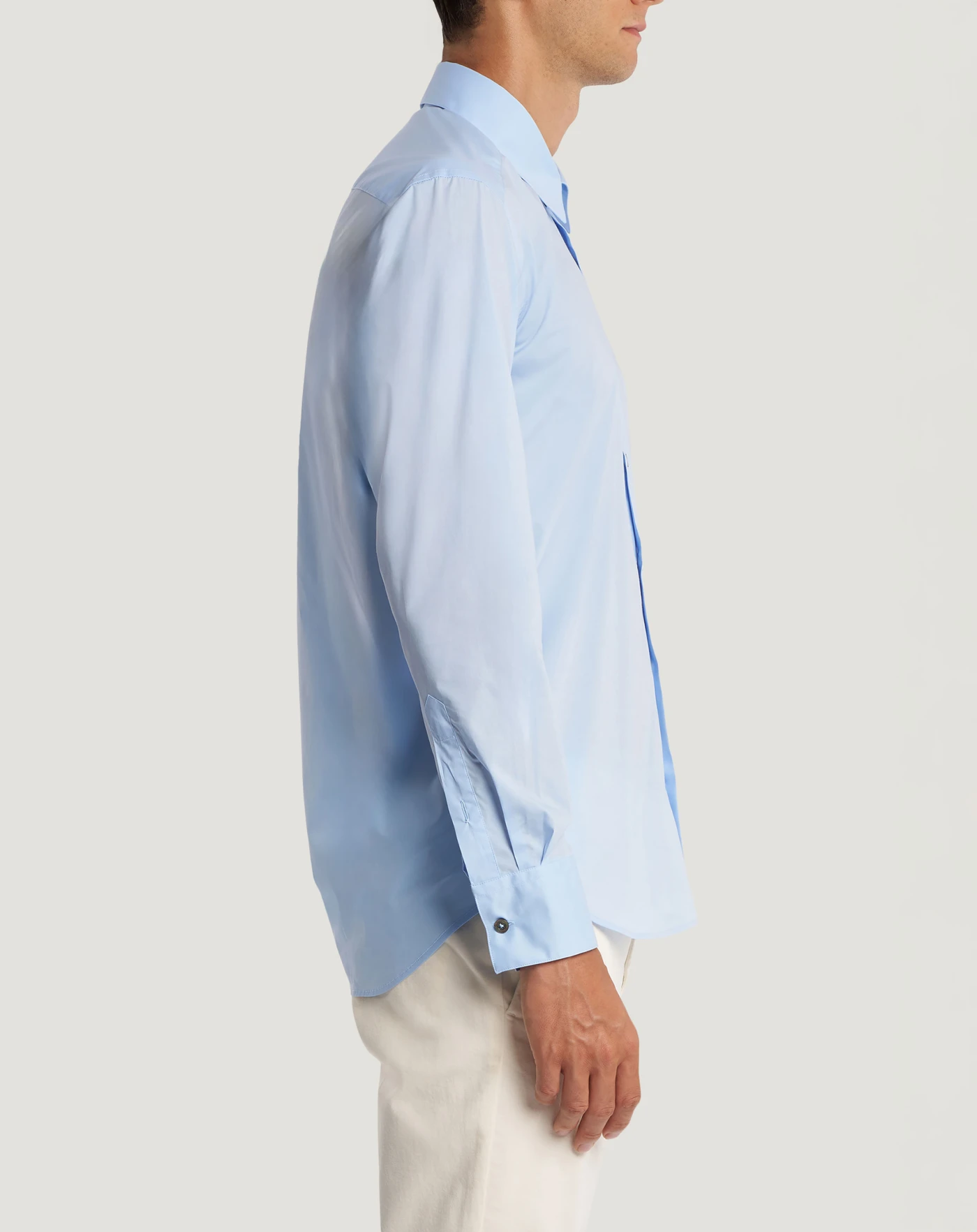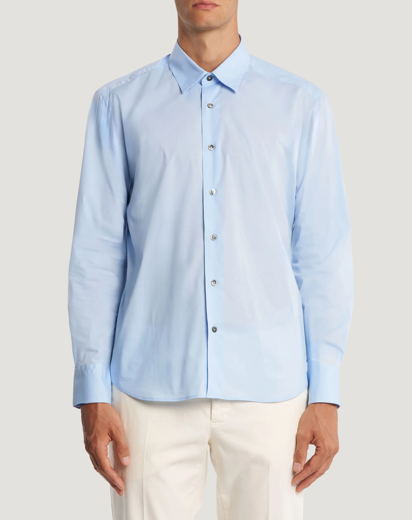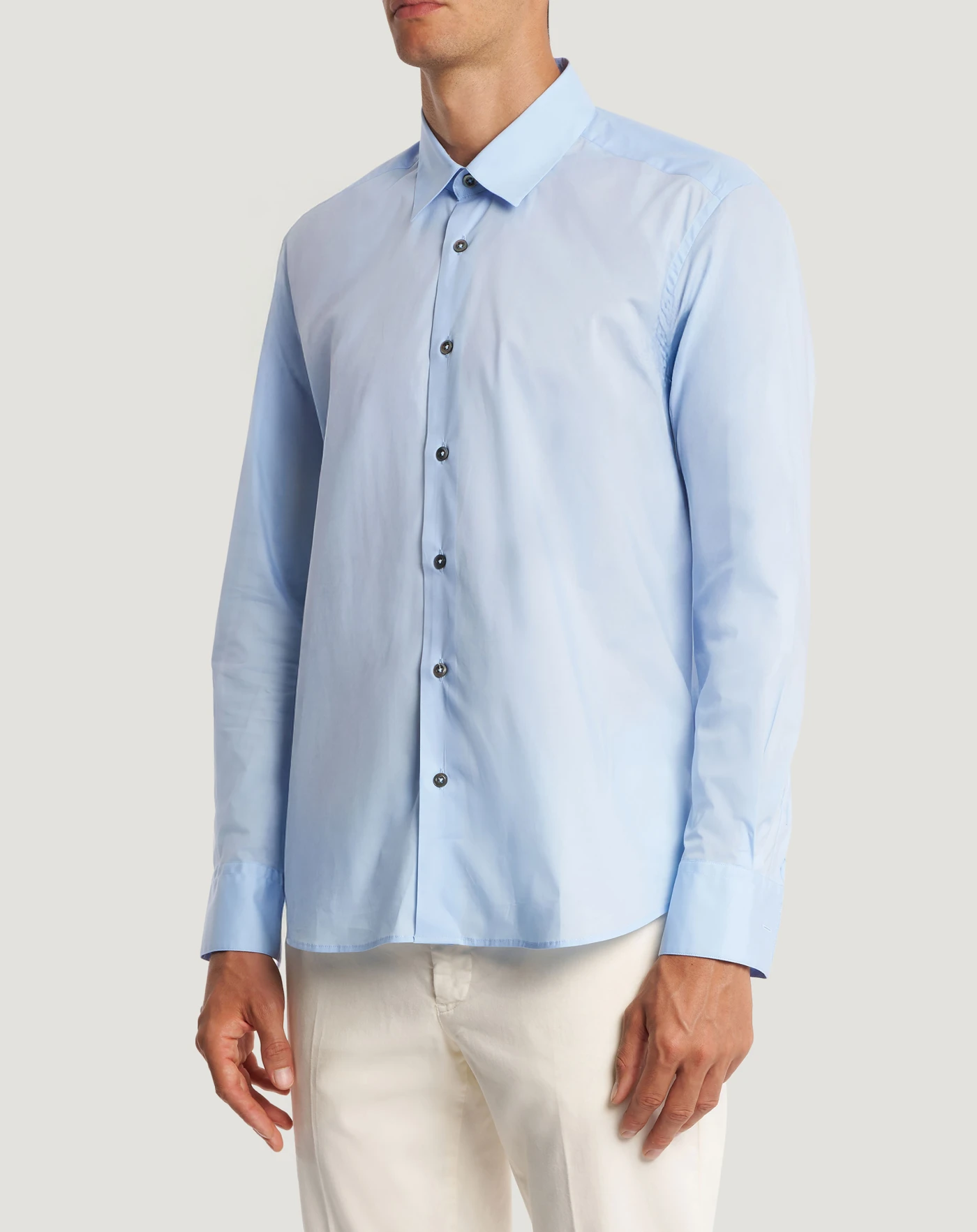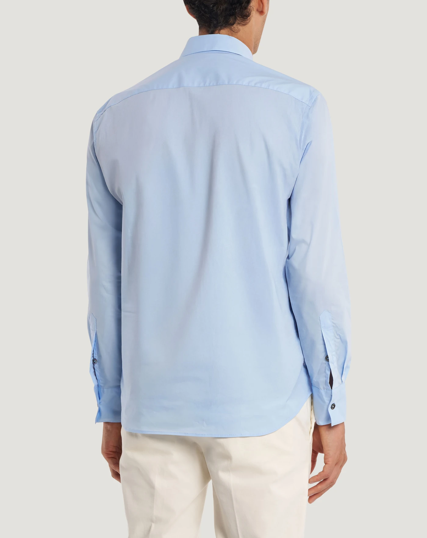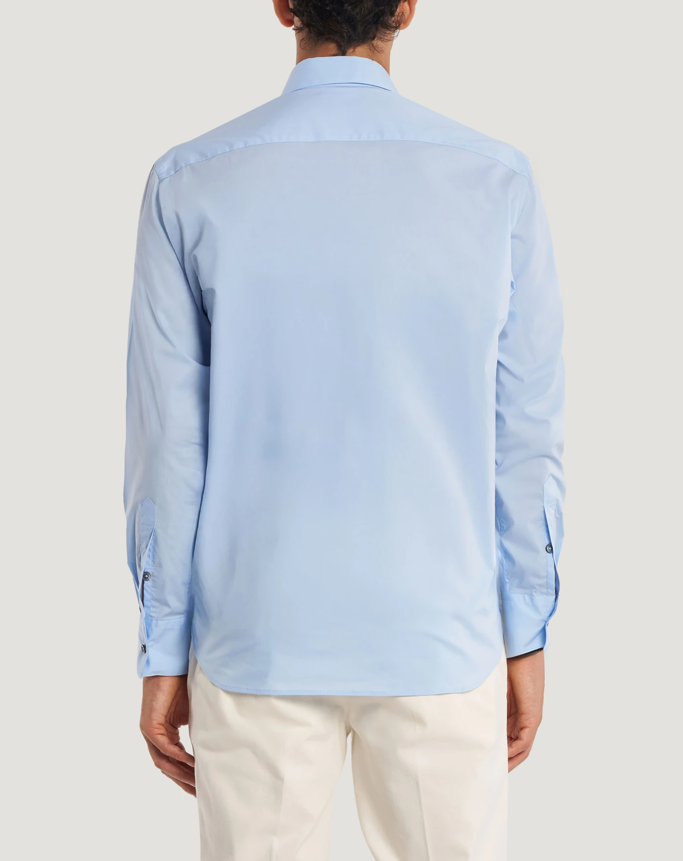 Four-season stretch cotton poplin shirt, a tightly woven, compact yet lightweight fabric, perfect for year-round wear in mild climates and layering.Regular fit, to be reinterpreted in on-and off-duty looks.