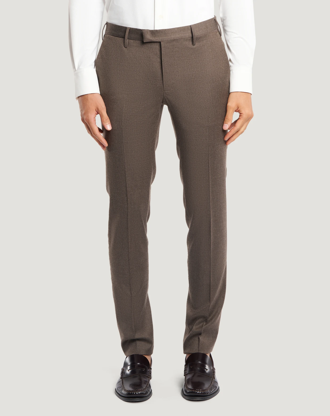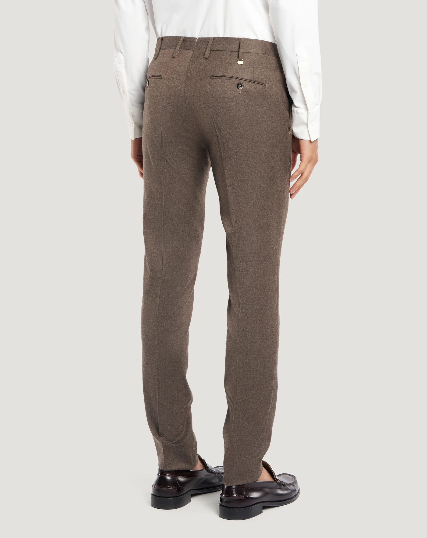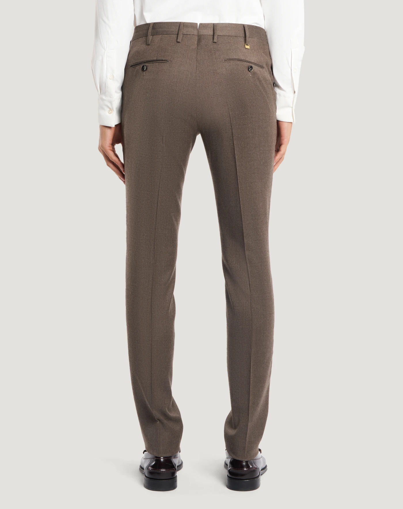 Flannel trousers in lightweight, Super 110 wool with a soft and refined hand. Added stretchiness makes it comfortable and flexible, perfect for tailored garments with a formal yet contemporary style.The garment is delivered unstitched, so that it can be finished to suit your length and style through simple tailoring.With a skinny fit and smooth front they feature a contemporary design which, in dove grey, completes your look with a refined touch.